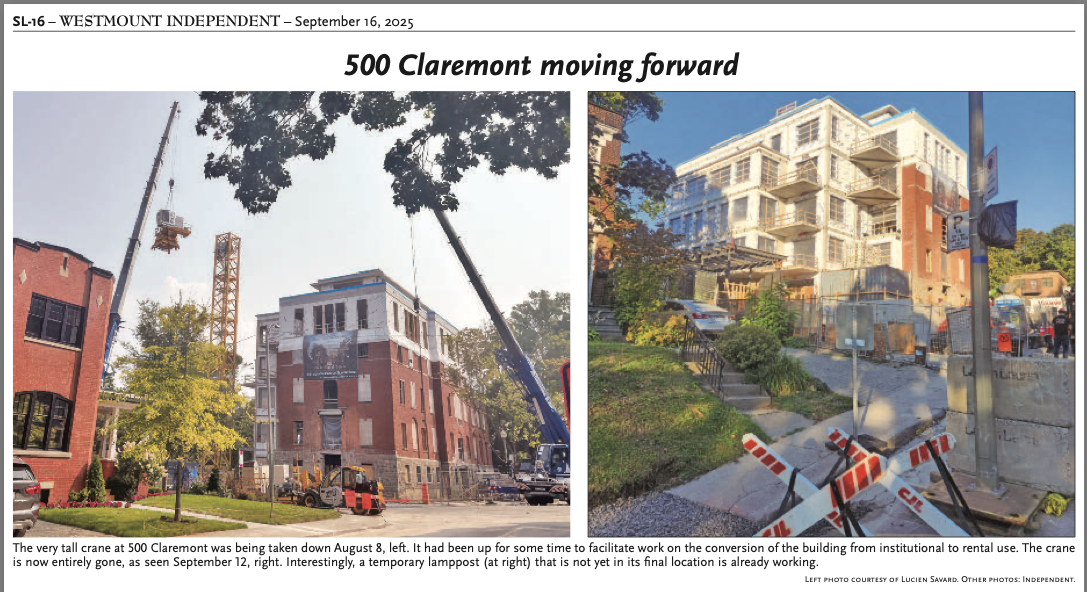 Représentations dans le but d’obtenir un allègement ou un congé de taxes municipales d’un montant inconnu en lien avec le redéveloppement de l’immeuble sis au 500, avenue Claremont, Westmount, Québec, servant à compenser pour une partie des coûts des exigences de construction de la Ville de Westmount.