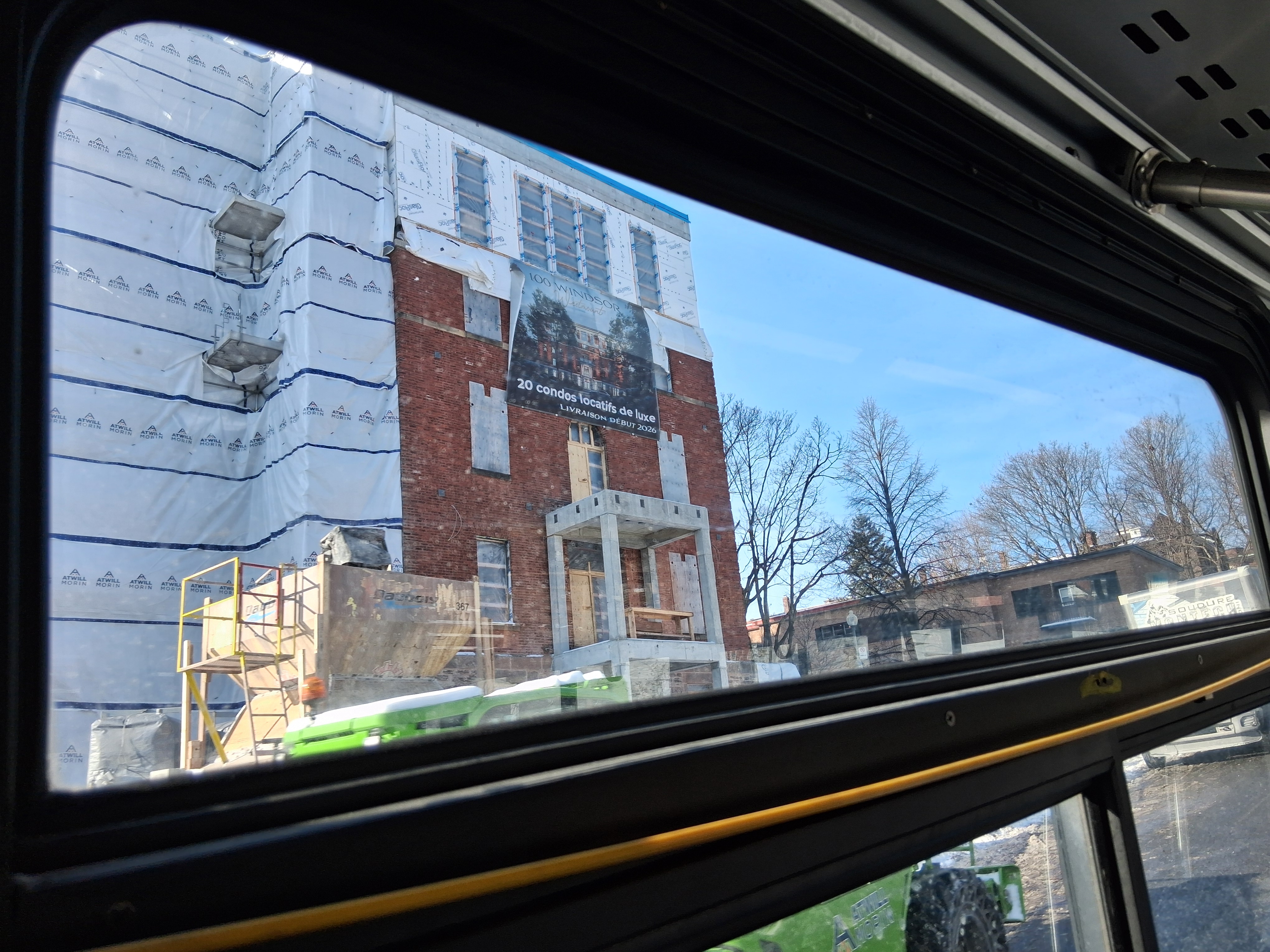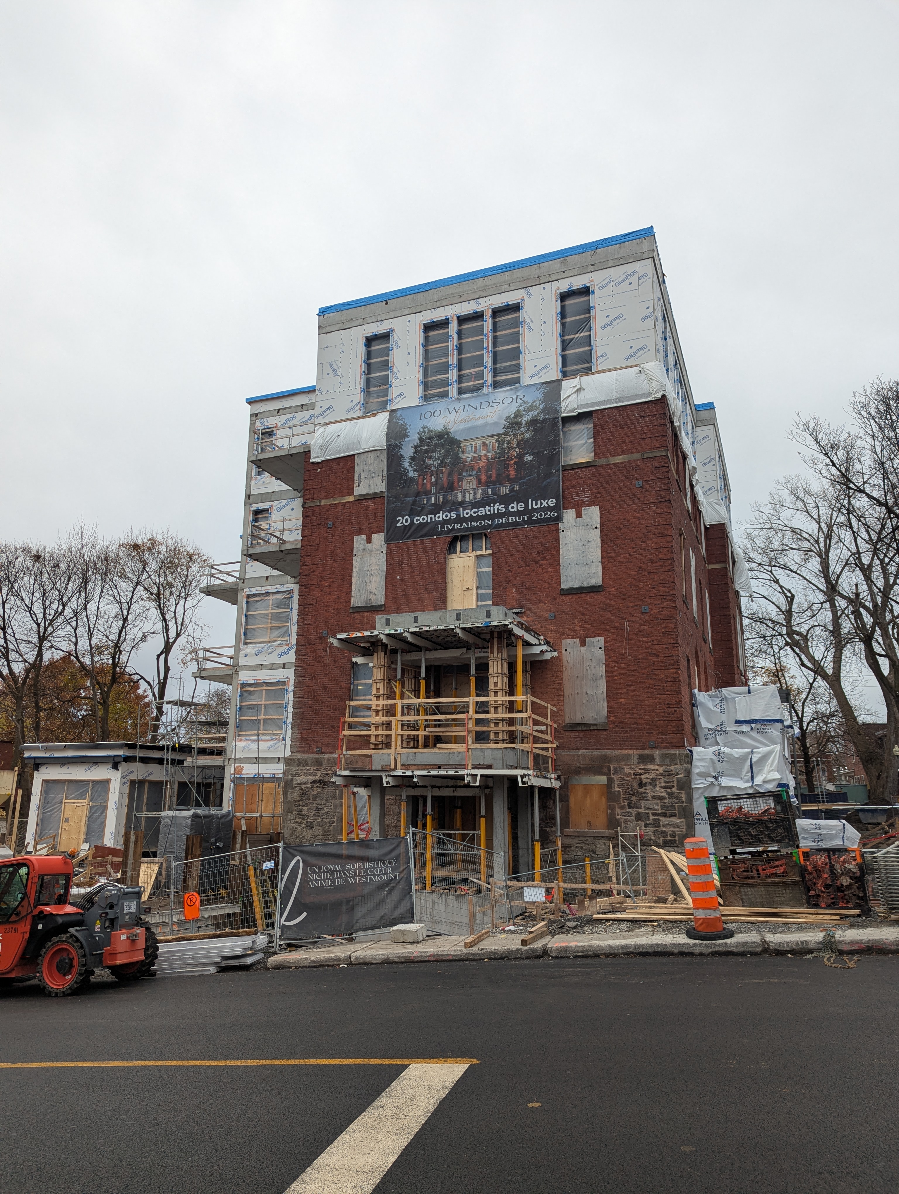 Le terrain autour de l’édifice est clôturé, les fenêtres sont placardés et de la machinerie est présente sur le site. Le Groupe Forum est impliqué dans le projet, qui comprendra 19 condos de luxe.