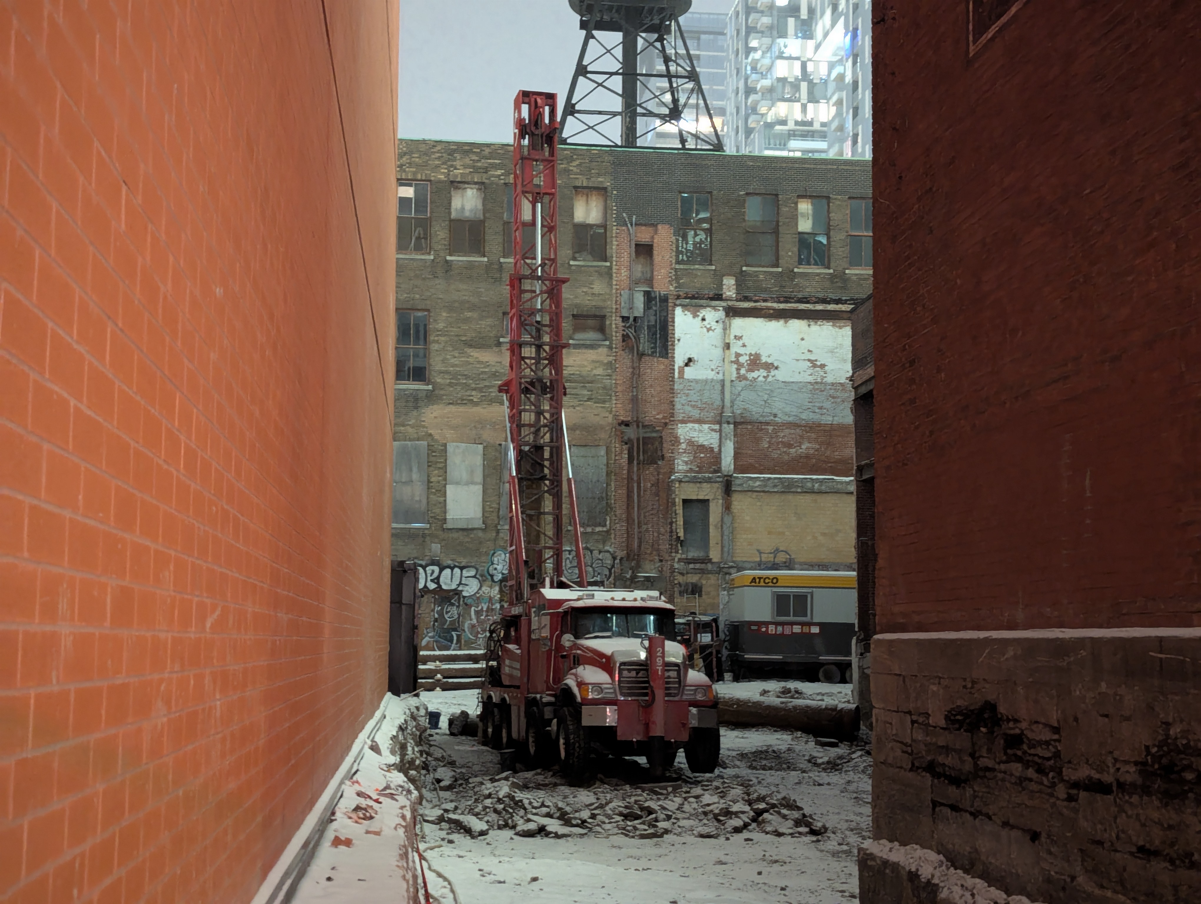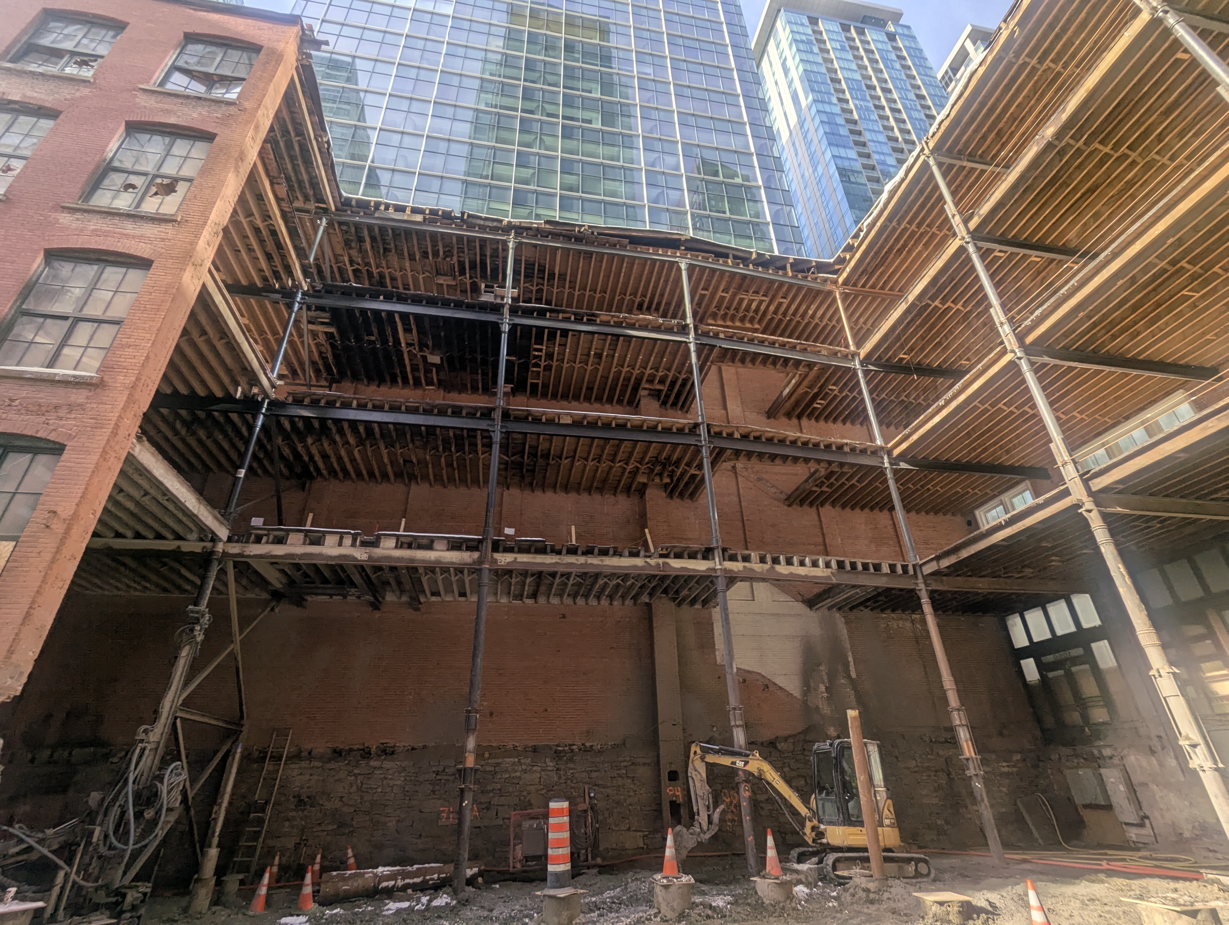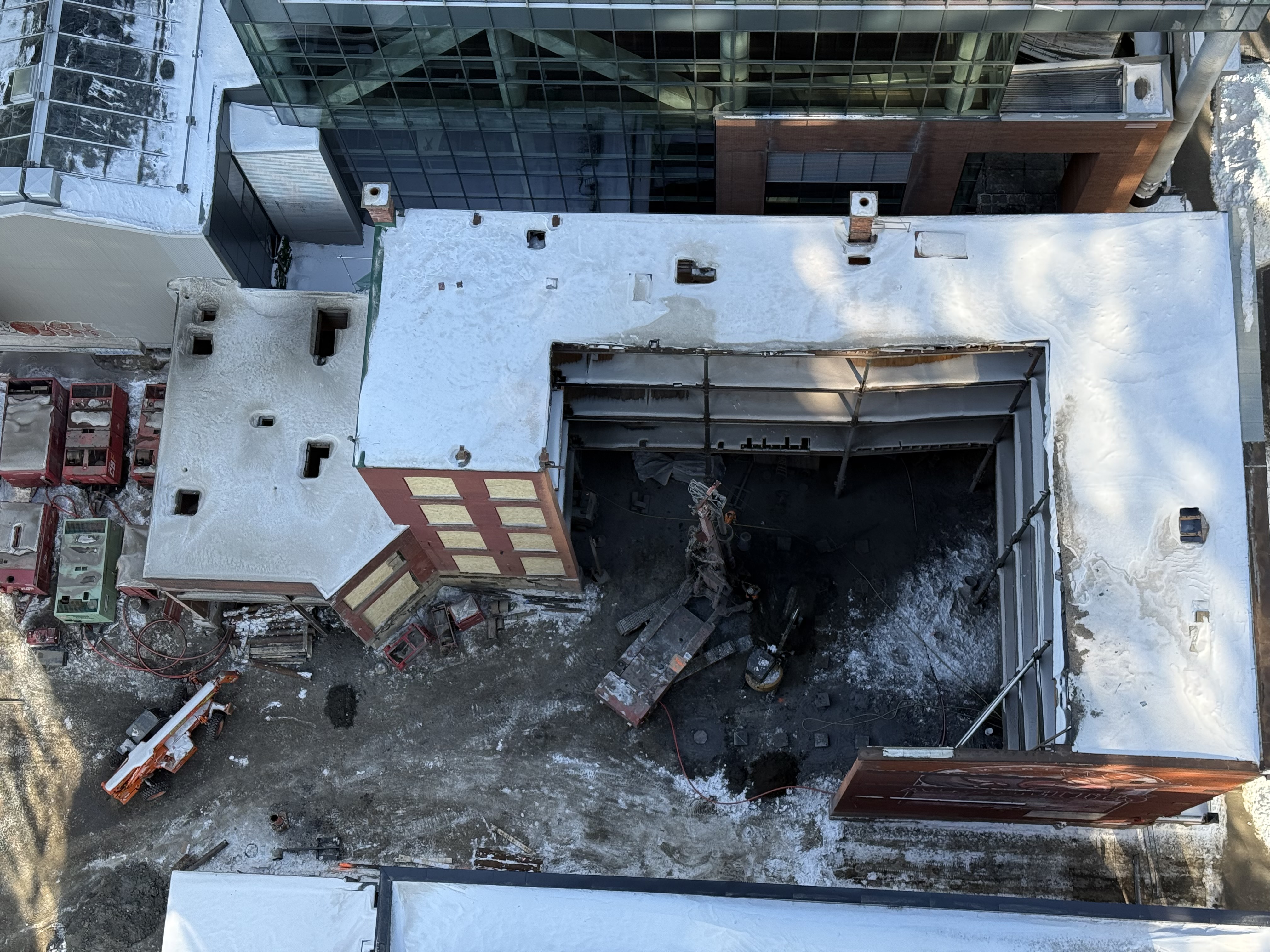 Il faut un ancrage solide pour une tour de cette importance, il y aura aussi certainement excavation et fondations selon le code du bâtiment. Même si l’entête n’en parle pas je serais très surpris qu’on n’accorde pas un certains nombres de cases de stationnement pour les résidents dans un quartier aussi dense.