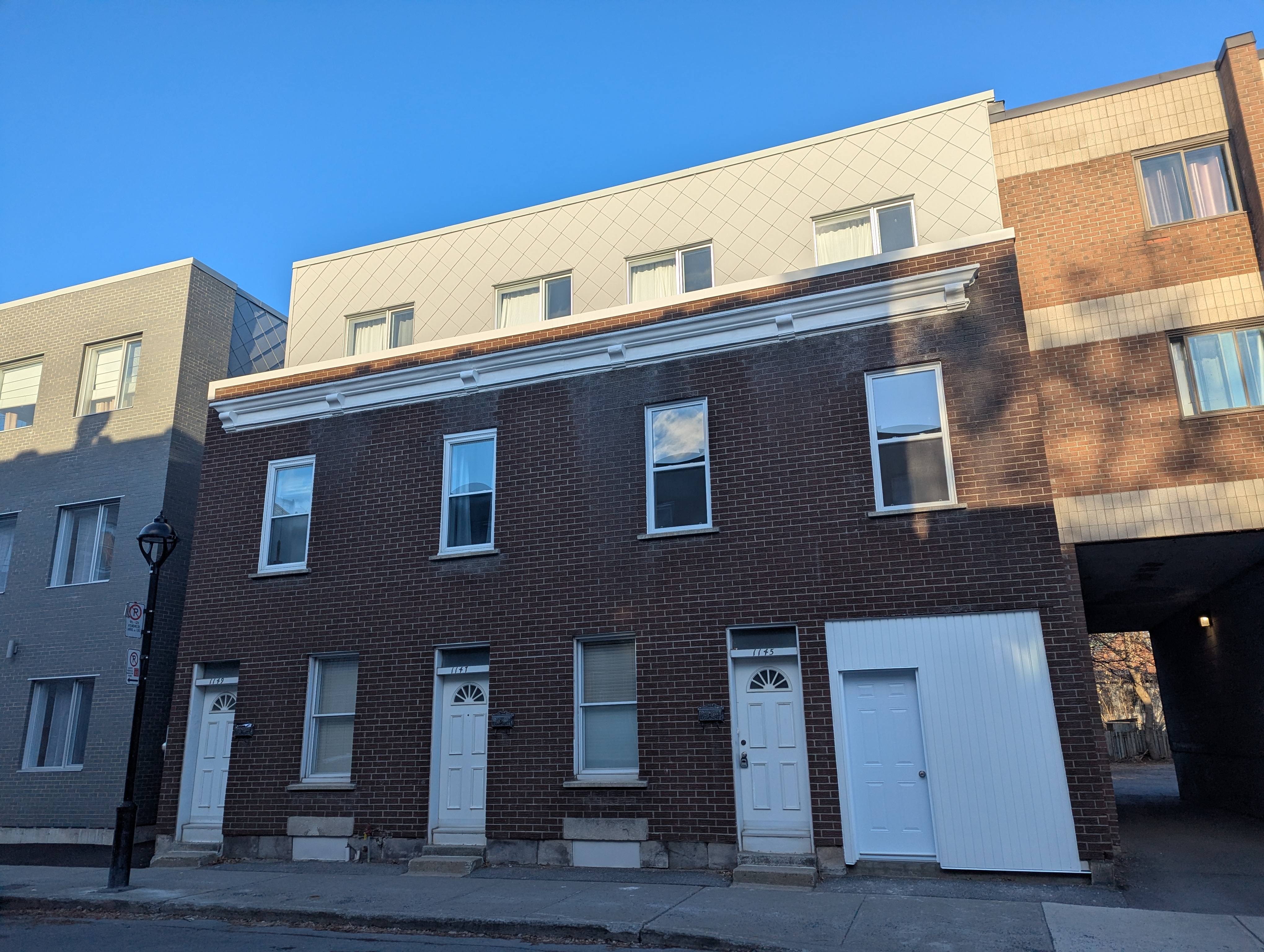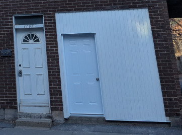 La porte est bien installée! Par contre, ils ont enlevé la brique autour de l’entrée du 1149, Rue Jardin. Peut-être que la rénovation du bâtiment d’origine est à suivre?