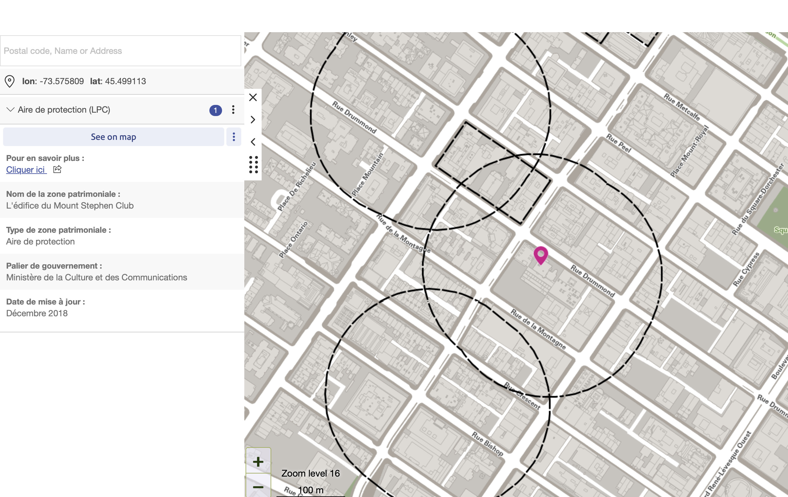 Pouvez-vous nous indiquer qu’est-ce qu’il y a de patrimonial dans le coin? Tout les immeubles sont relativement nouveau et si on fait exception de la devanture du Mount Stephen sur Drummond, je peine à voir si qu’il y d’exceptionnel directement autour de ce site?