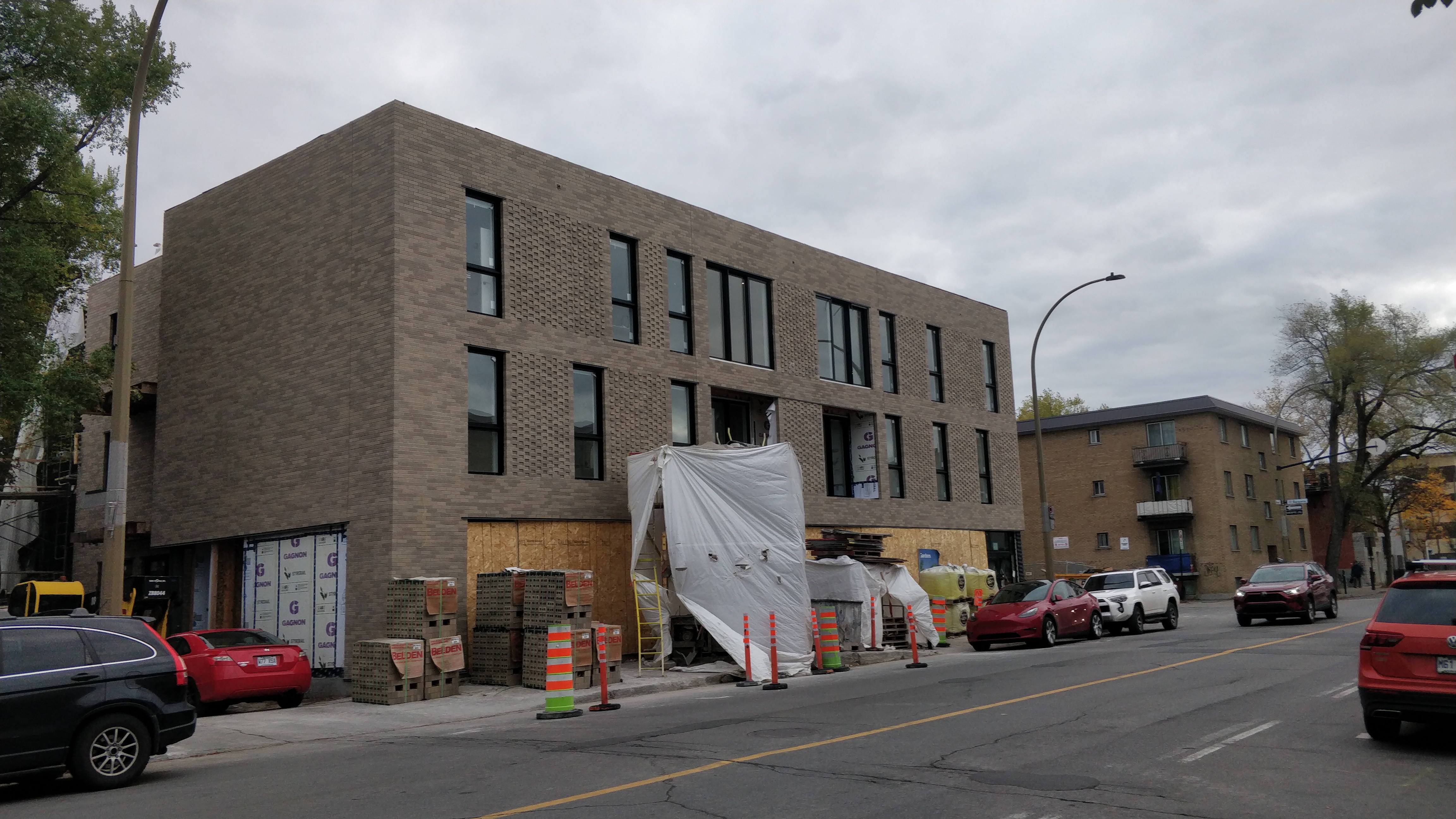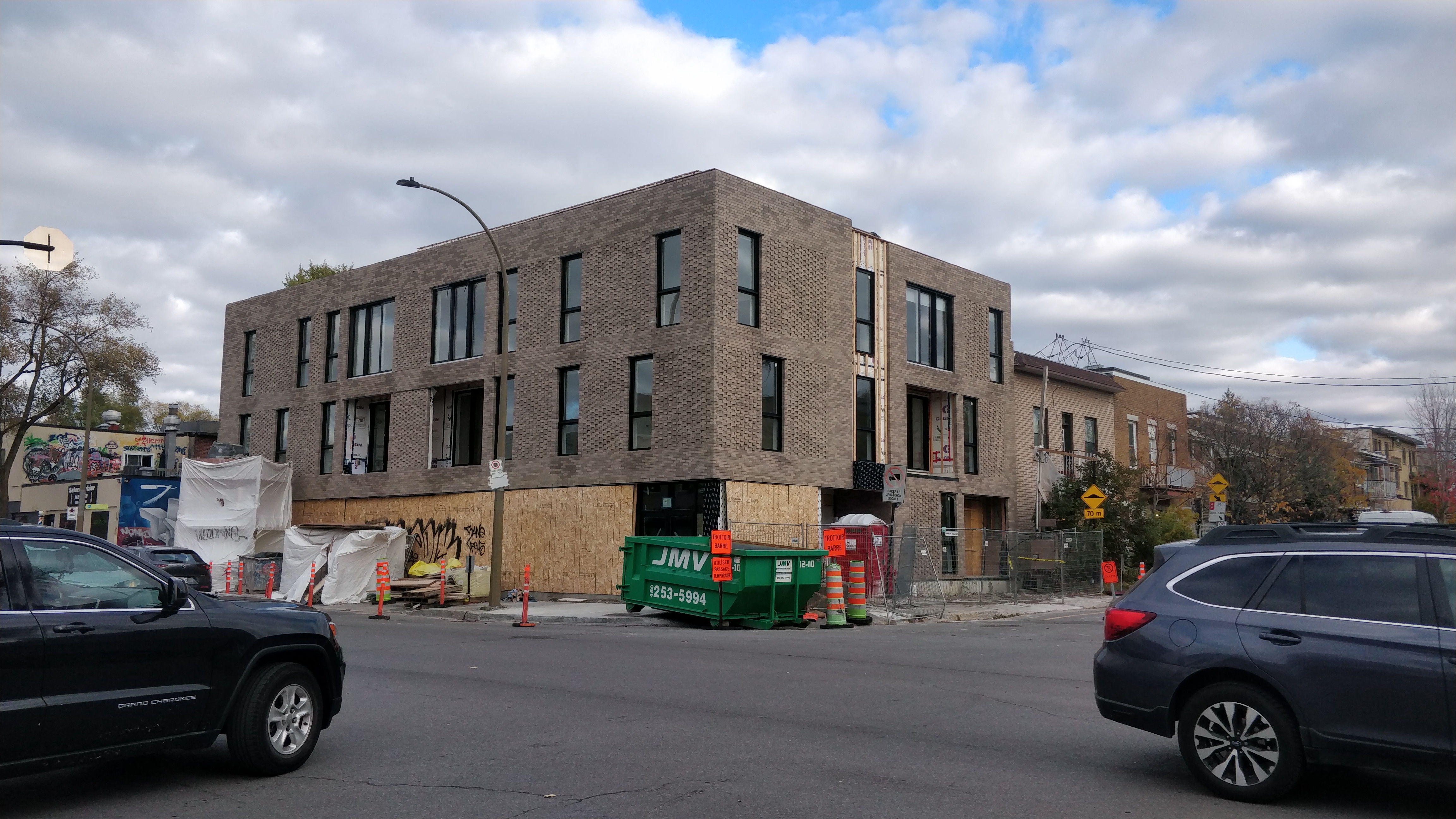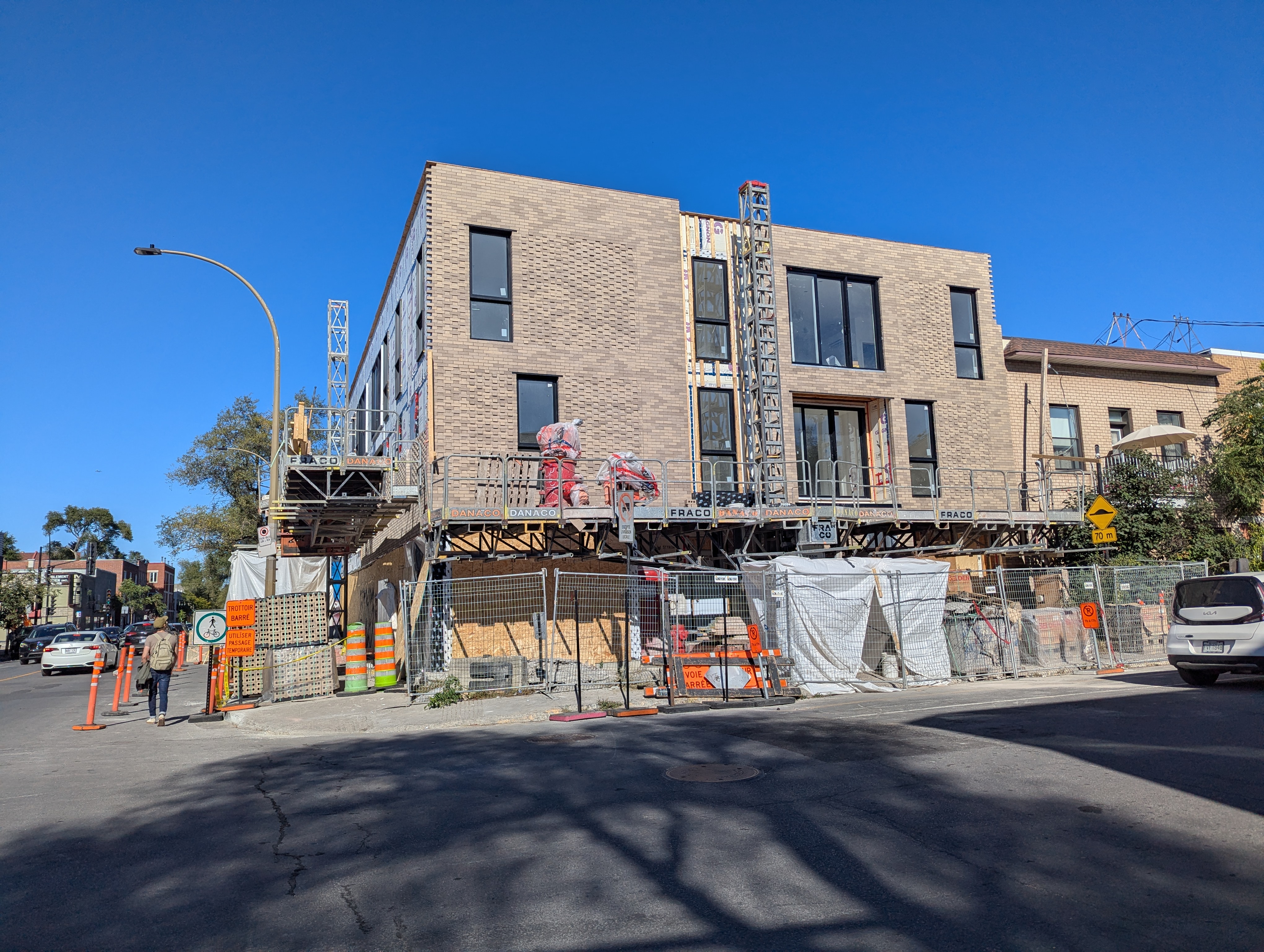 Un grand balcon est apparu au deuxième. Espace commun? Ça peut difficilement être juste pour deux logements vu le nombre d’unités dans le bâtiment