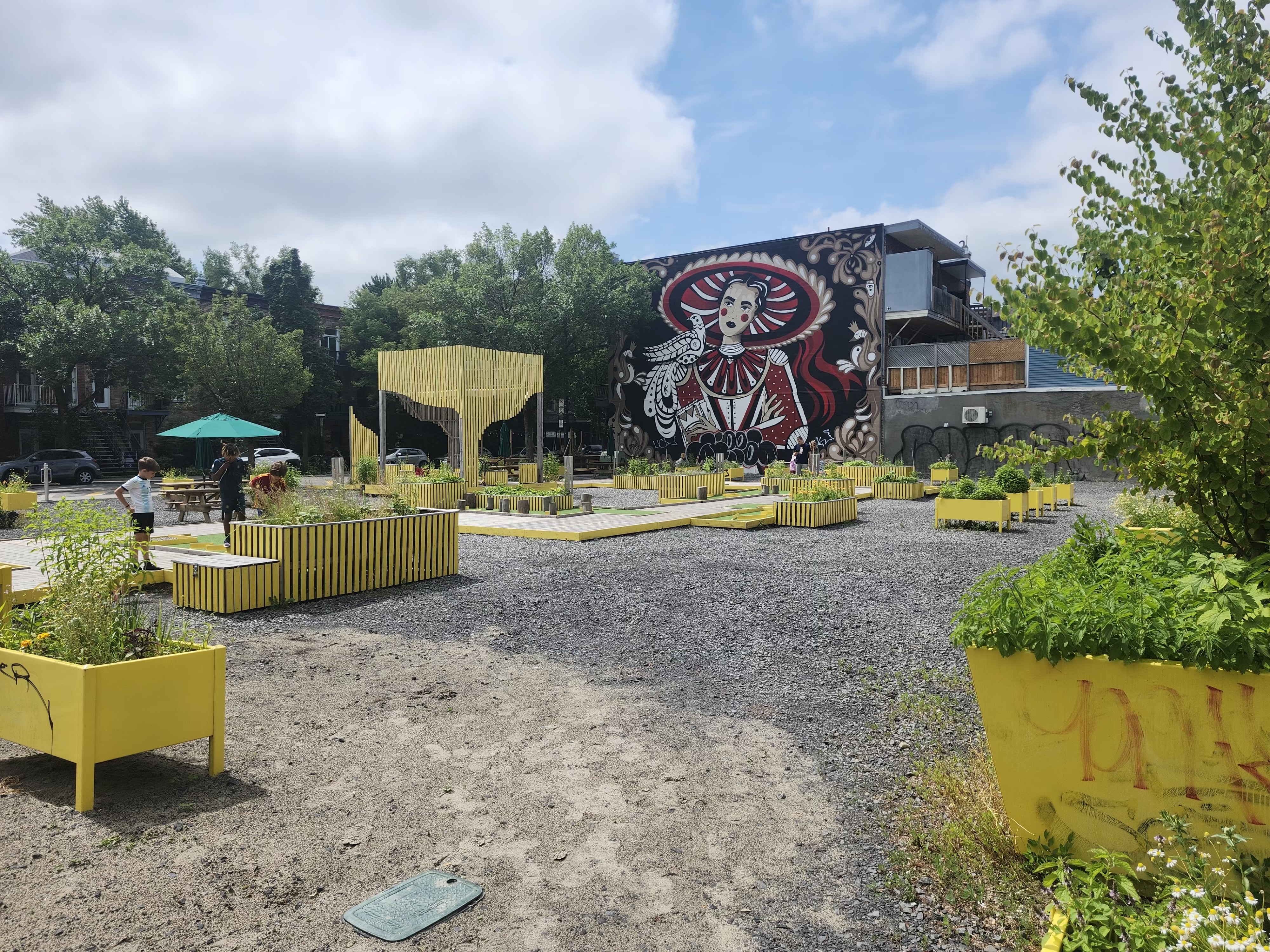 L’aménagement transitoire est en construction en ce moment. Ça ressemble pas mal aux rendus.