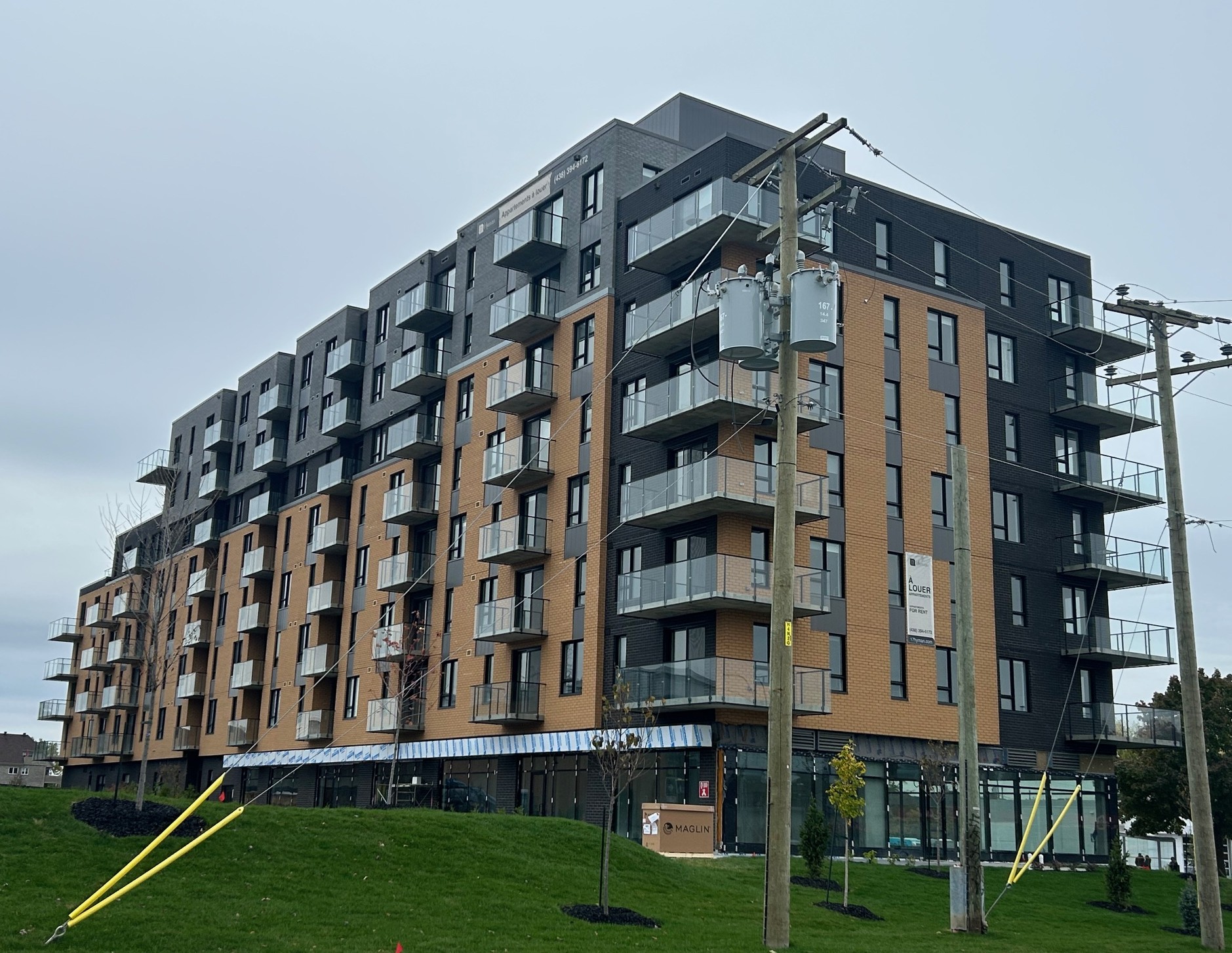 Les marges sont sans doute imposées par le municipal alors je ne blâme pas Mach, mais ça reste une occasion manquée. Ça me fait penser au Équinoxe Saint-Elzéar, où les commerces de rez-de-chaussée se sont surtout remplis avec des trucs qui ne nécessitent pas de visibilité commerciale (salon de yoga, galeries d’art, bureau de location pour les appartements (!)) plutôt qu’avec des commerces de proximité qui seraient bien les bienvenus pour le secteur.