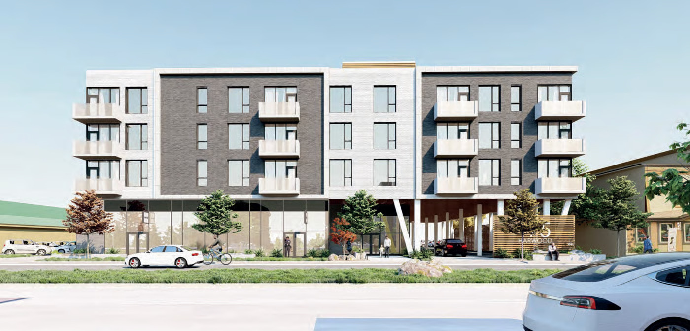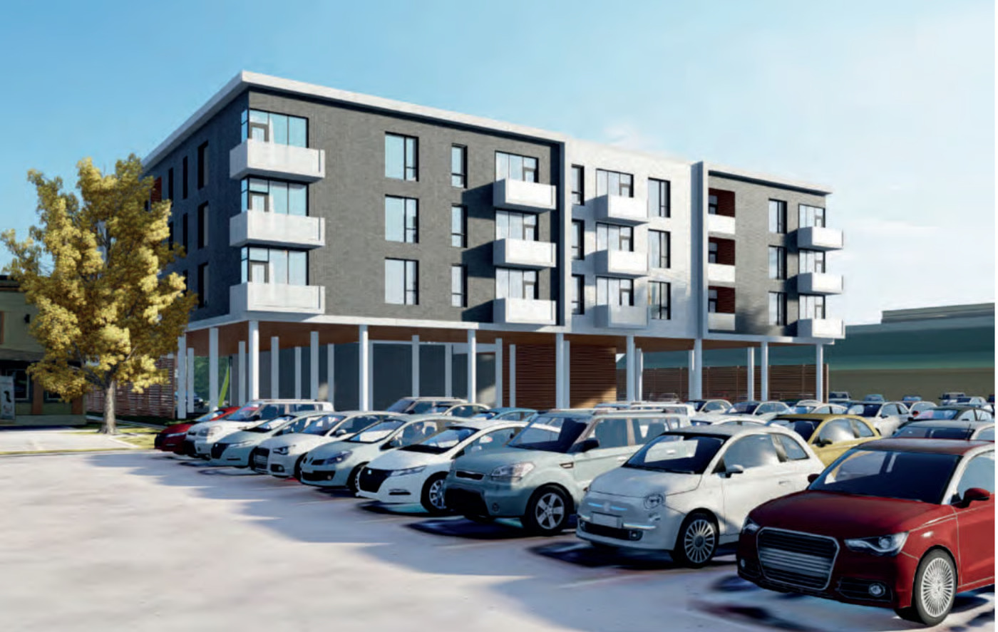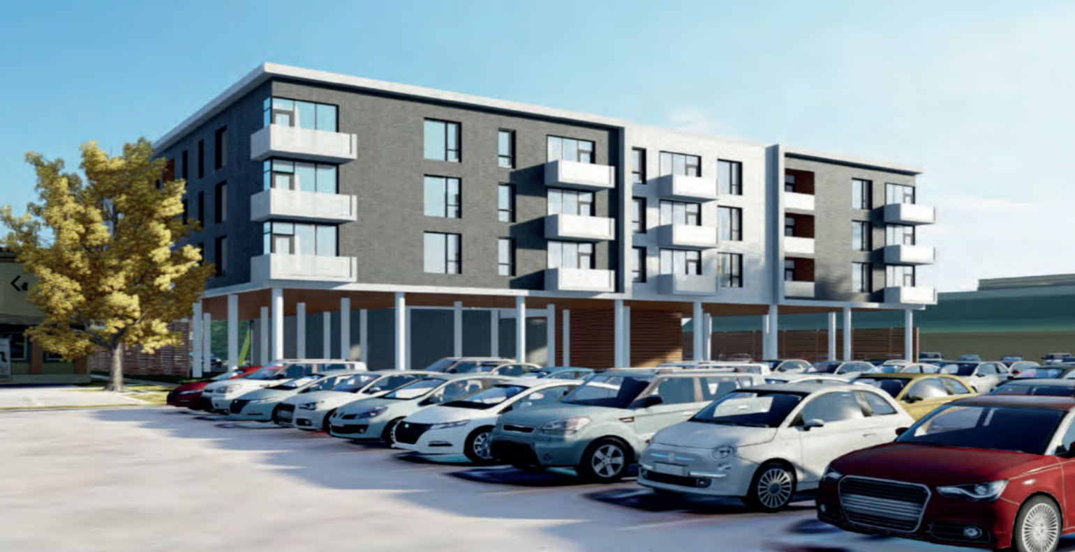 Projet à vendre situé dans le secteur Harwood – de Lotbinière et comprenant une portion commerciale au rez-de-chaussée et 55 unités d’habitation aux étages.