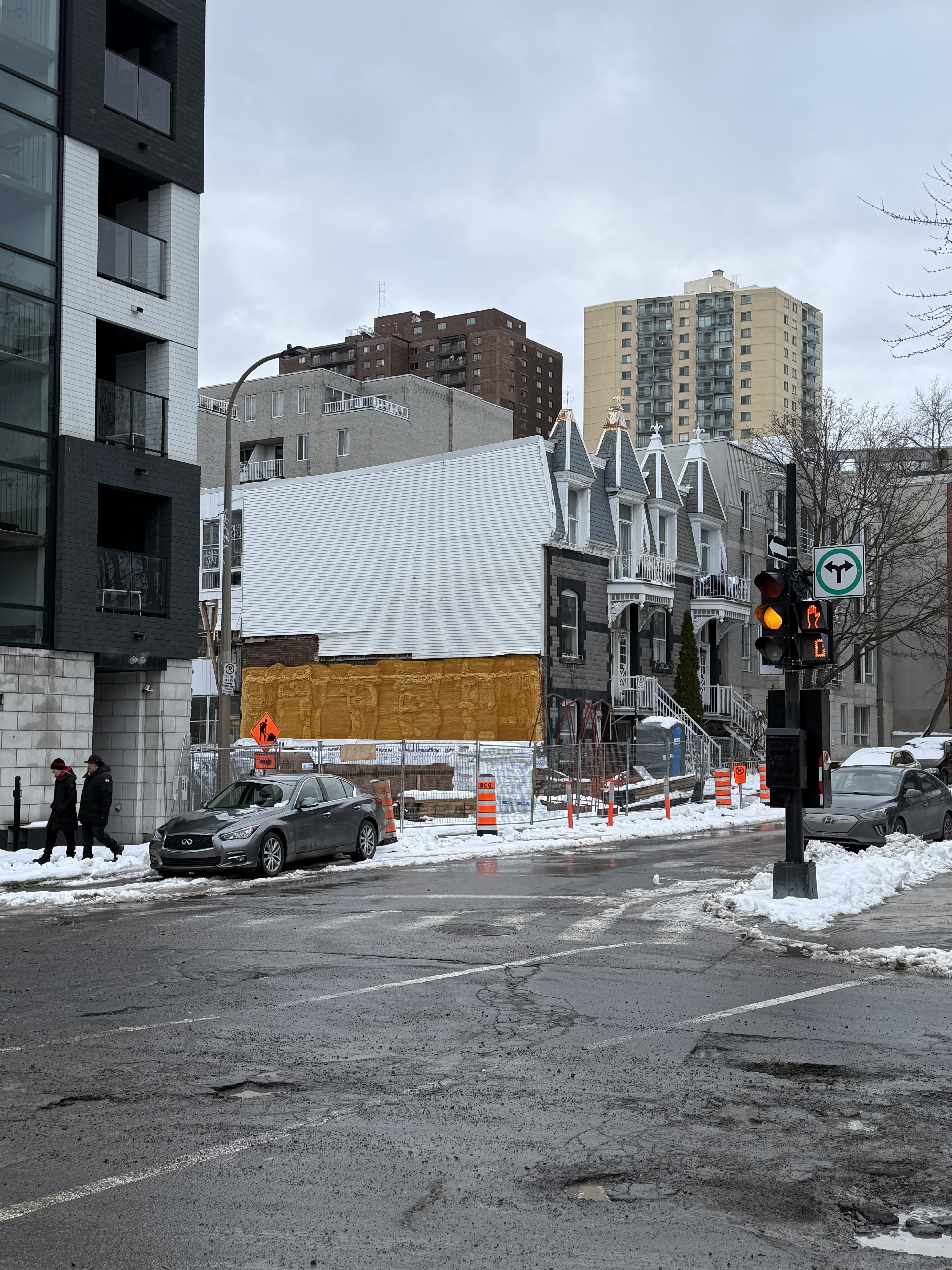 Je ne sais pas si ça contribue à la confusion, mais l’édifice à gauche dans le rendu ne fait pas parti du projet, c’est un hôtel qui est déjà construit et fait définitivement 4 étages! Le projet ici a son “4ième étage” uniquement en retrait.