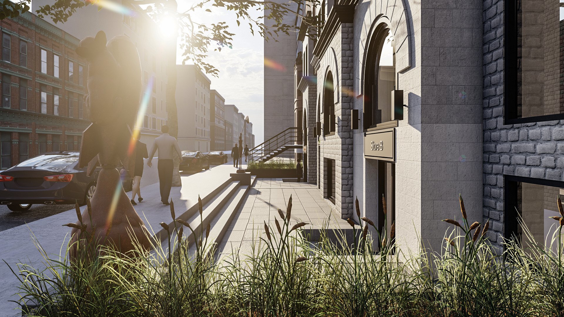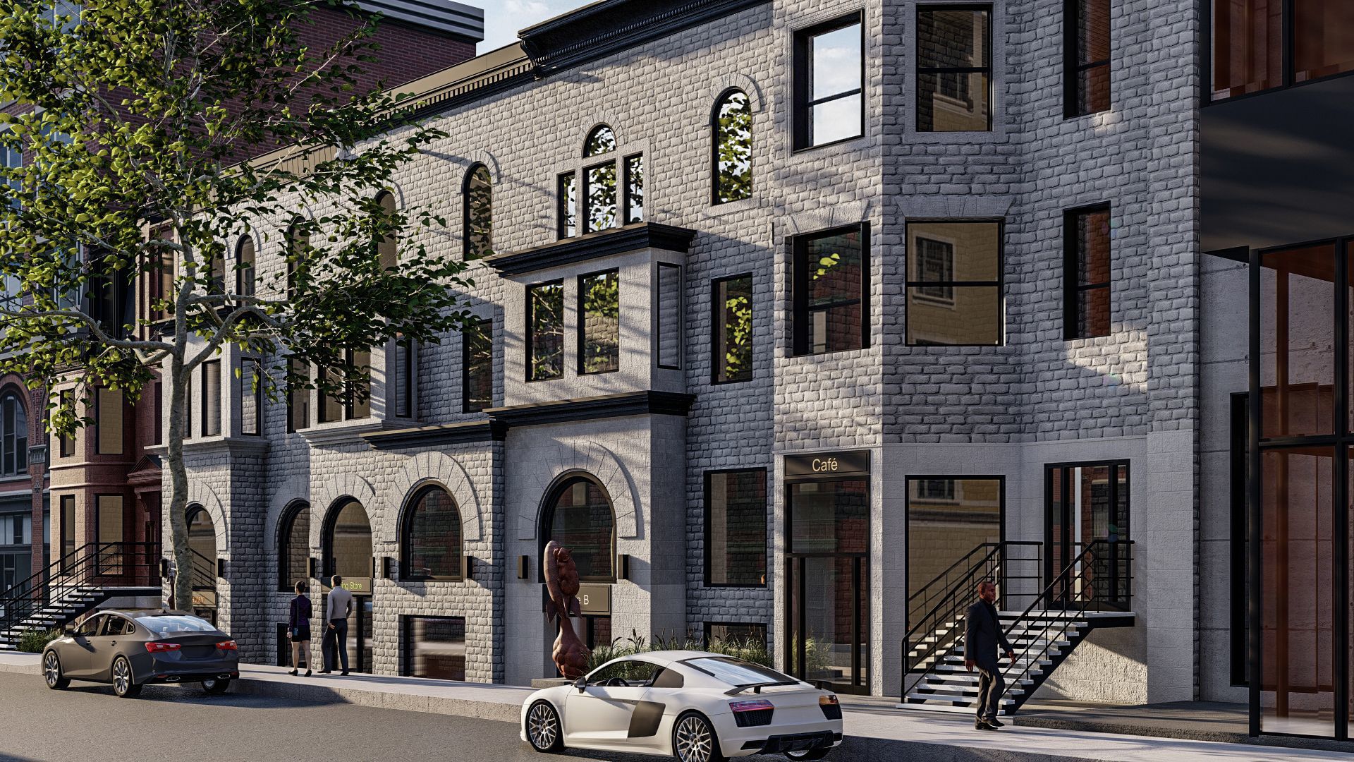 Rénovation et conversion en d’un immeuble commercial afin d’aménager 35 logements aux 2e et 3e étages.