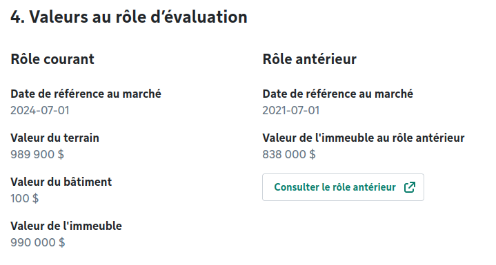 Je l’ai regarder et le valorization c’est seulement $990k, hausse de seulement $150k des ~2021.