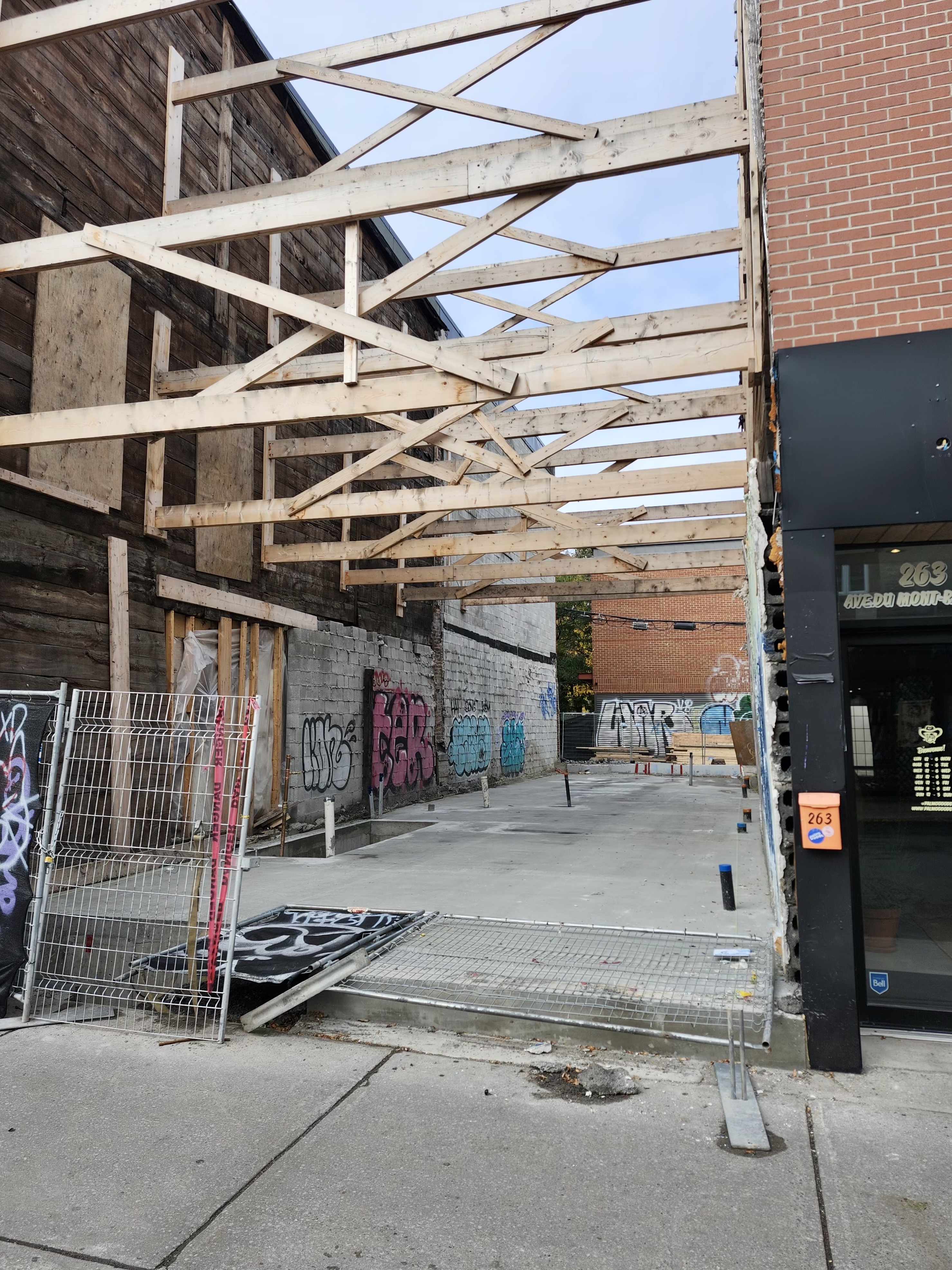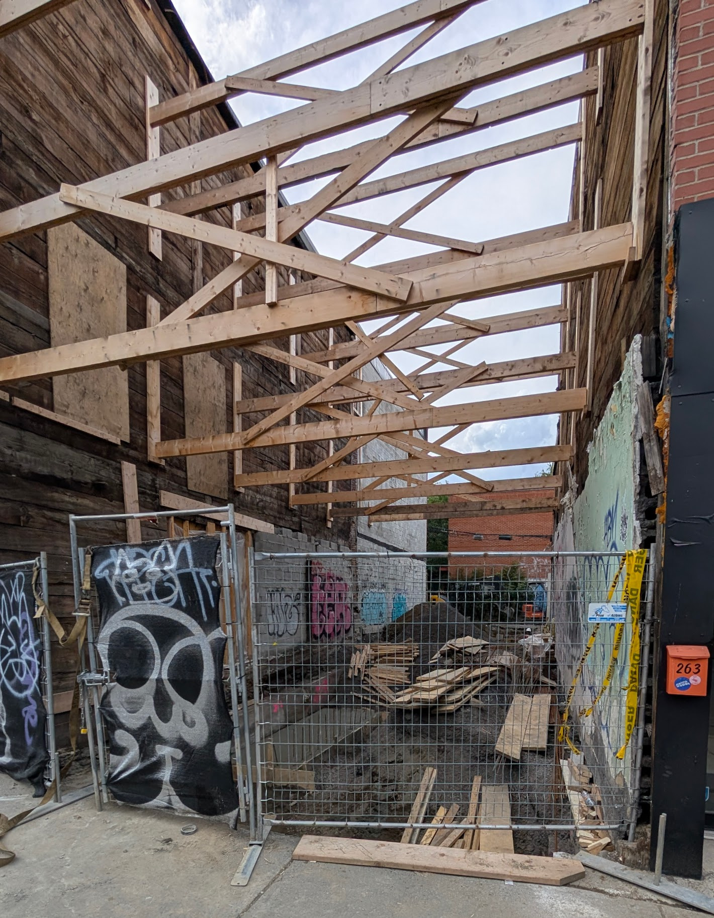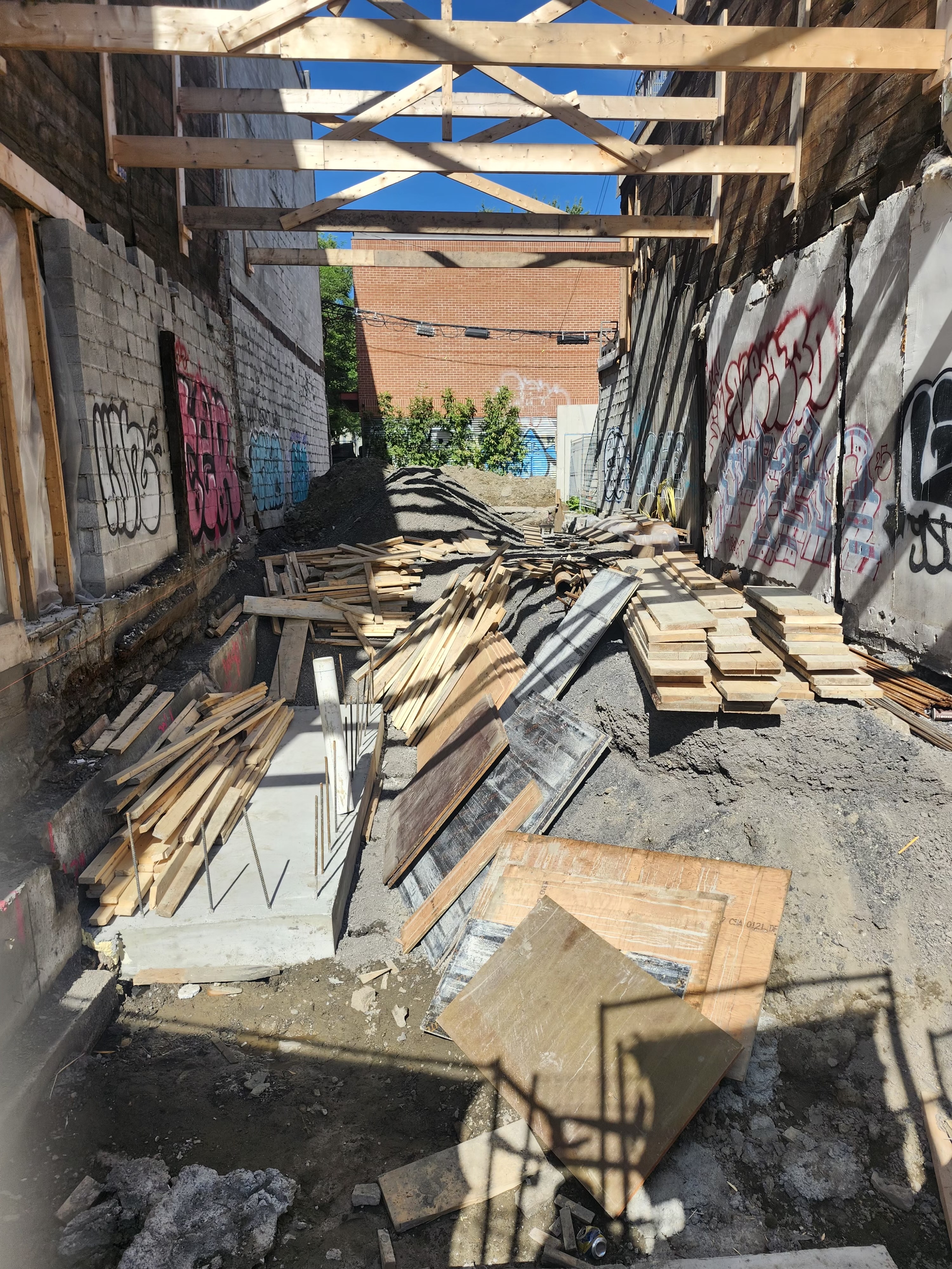 La petite fondation semble rendue au niveau de la rue, il y avait des travailleurs sur place ce matin.
