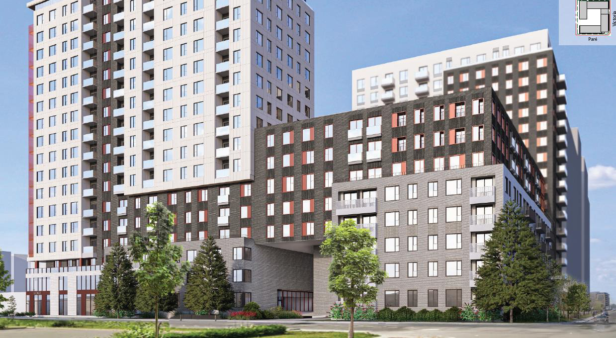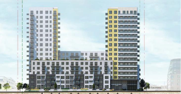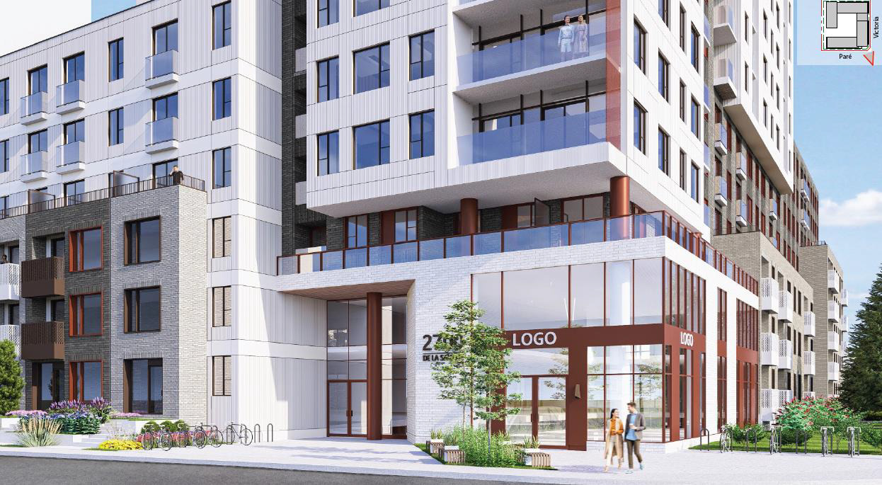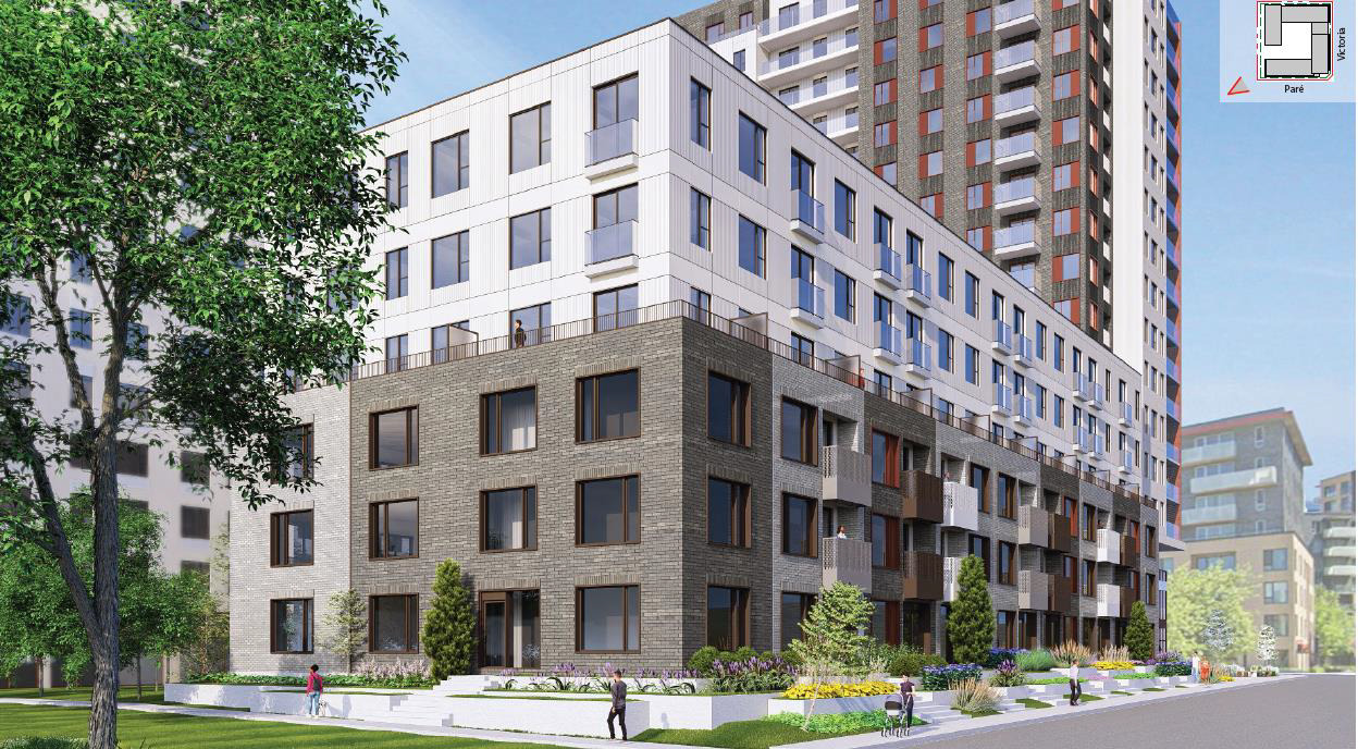 Le projet consiste à construire un bâtiment résidentiel d’une hauteur variant entre 6 et 17 étages, destiné à accueillir environ 565 logements dont une partie dédiée à du logement social ou abordable et à une superficie commerciale ou communautaire d’environ 150 m2.