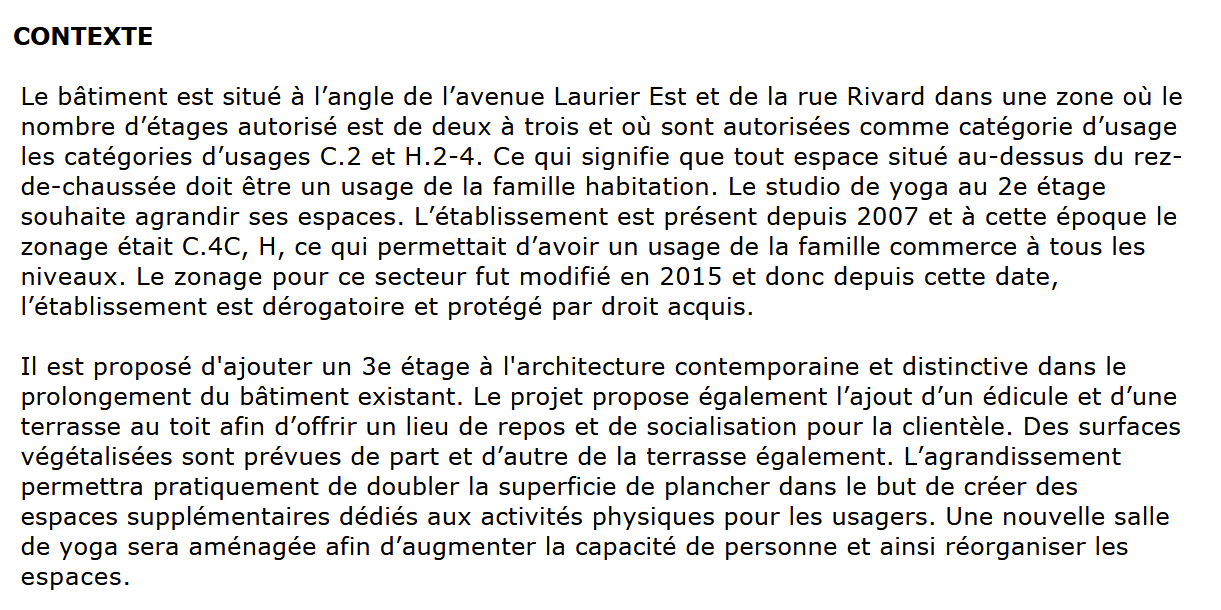 Adoption du second projet de résolution, en vertu du Règlement sur les projets particuliers de construction, de modification ou d’occupation d’un immeuble (2003-08), afin d’autoriser le prolongement de l’usage « école d’enseignement spécialisé » au 3e étage projeté ainsi qu’au toit pour l’immeuble situé au 435 avenue Laurier Est, et ce, en dérogeant aux articles 43, 156 et 183 du Règlement d’urbanisme de l’arrondissement du Plateau-Mont-Royal (01-277)