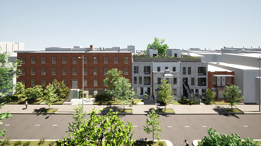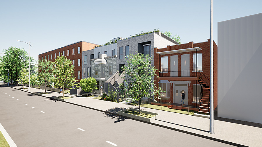 Un terrain à vendre juste en face du parc Laurier. C’est quand même un gros lot à développer. Le projet préliminaire montré dans la vente est intéressant, mais n’a pas été proposé à l’arrondissement. Le lot peut devenir plusieurs choses, donc je n’ai pas fait un projet spécifique pour, mais c’est un terrain à surveiller. Il y a quand même peu de grandes insertions à développer dans la trame urbaine du Plateau.