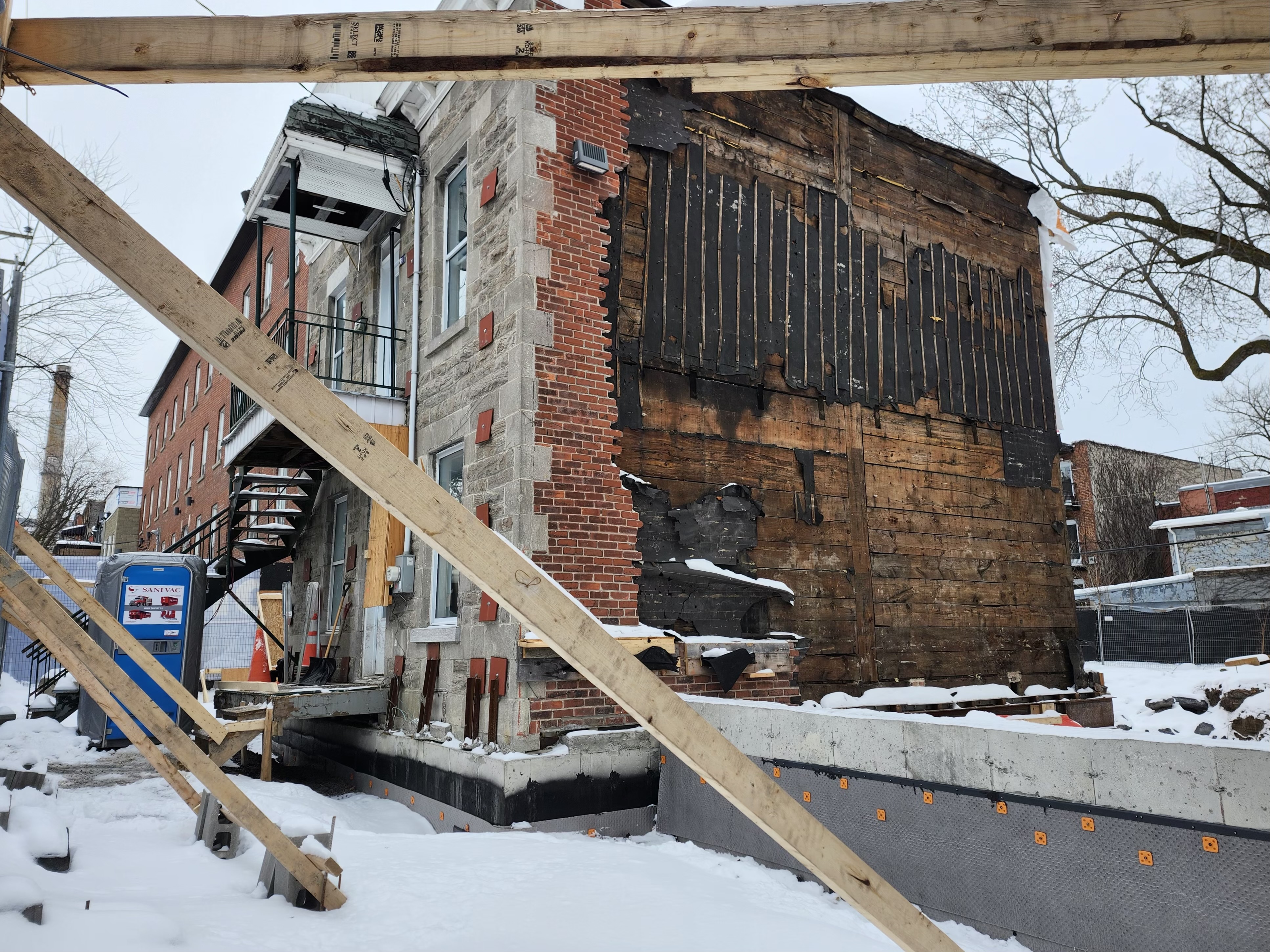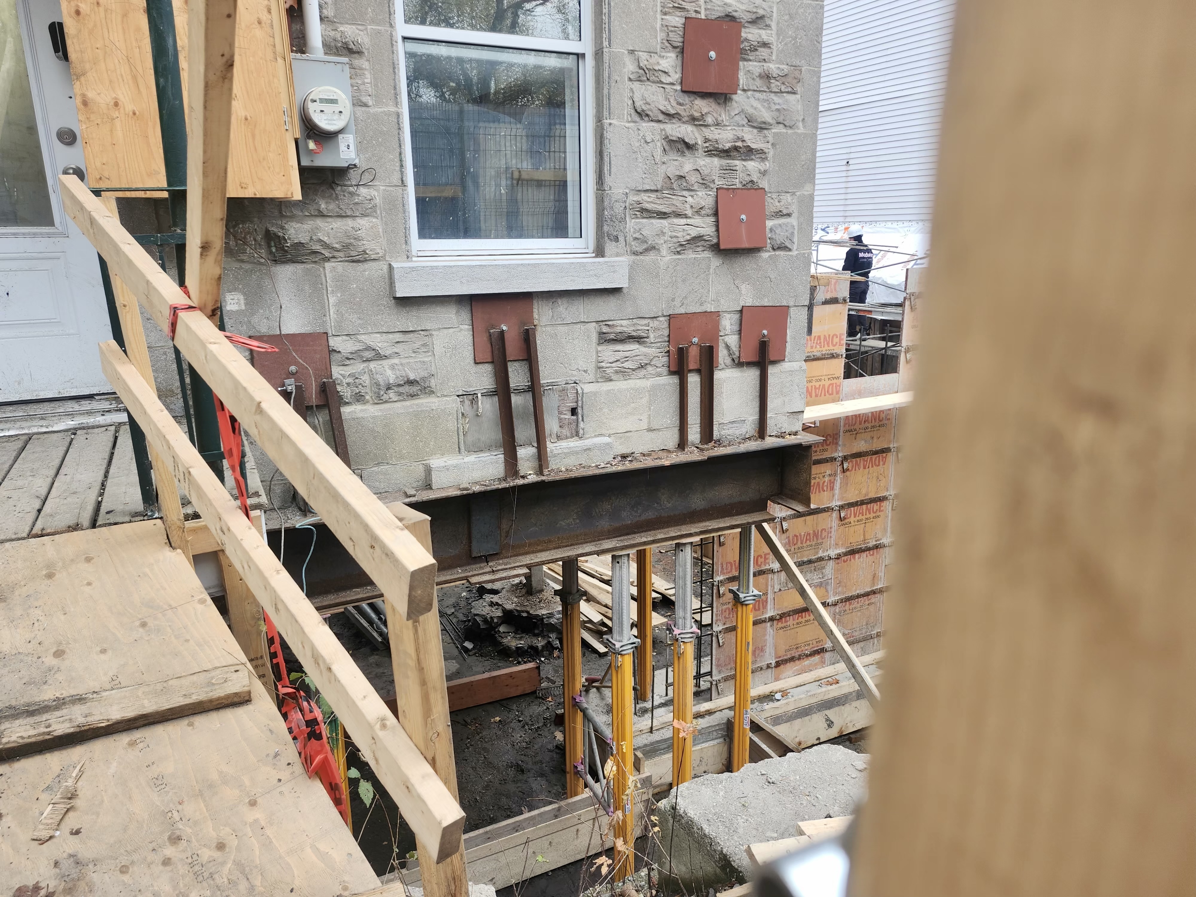 Difficile à prendre en photo, on peut voir maintenant du béton coulé tout autour de la construction existante.