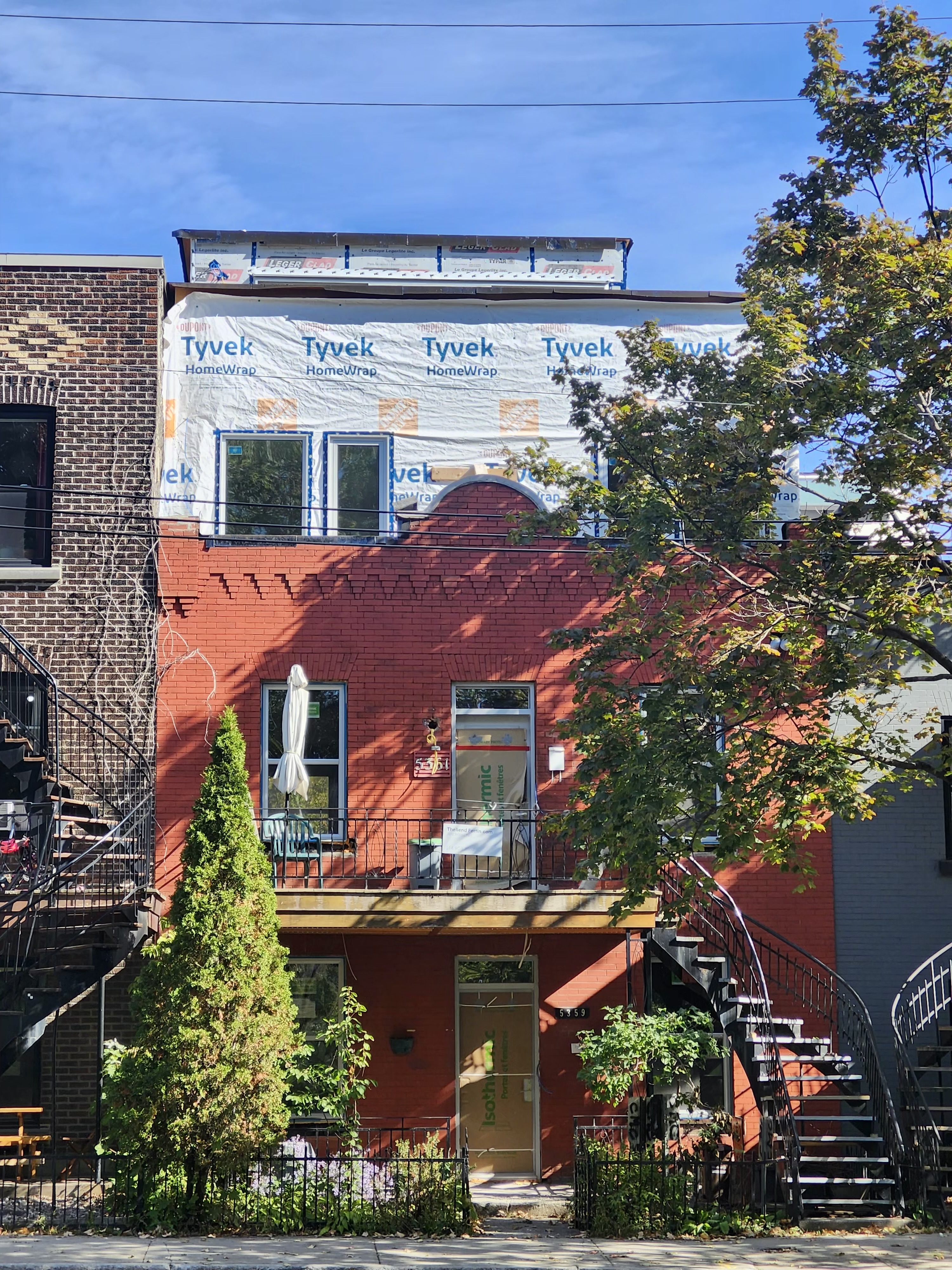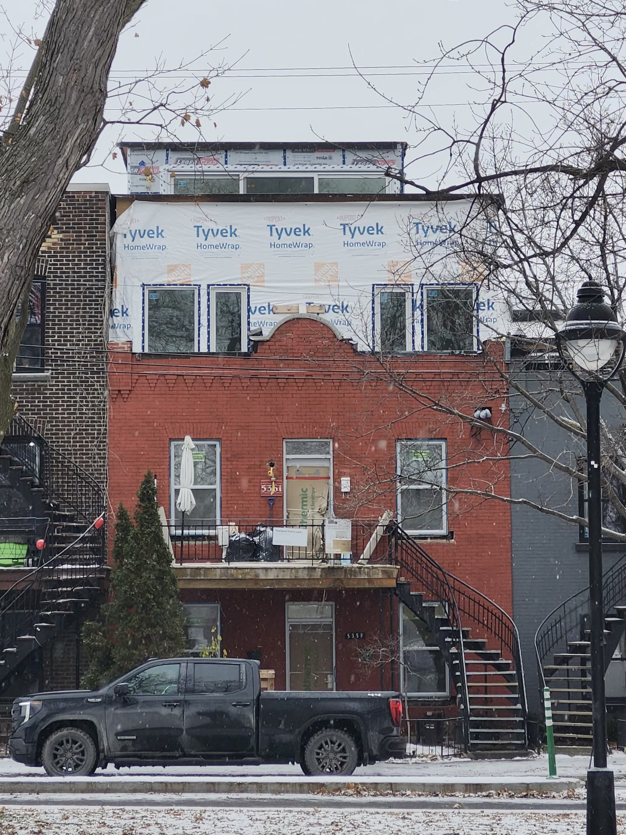 Je ne mets pas tous les petits projets d’agrandissement de plex que je vois passer dans les permis. Je n’ai pas le temps et ça rajouterait des dizaines de projets à suivre… Mais celui-ci est dans mon itinéraire pour certaines marches, alors je vais pouvoir le suivre et c’est bien d’avoir des exemples de cette densification douce (du moins en termes de superficie, dans ce cas).