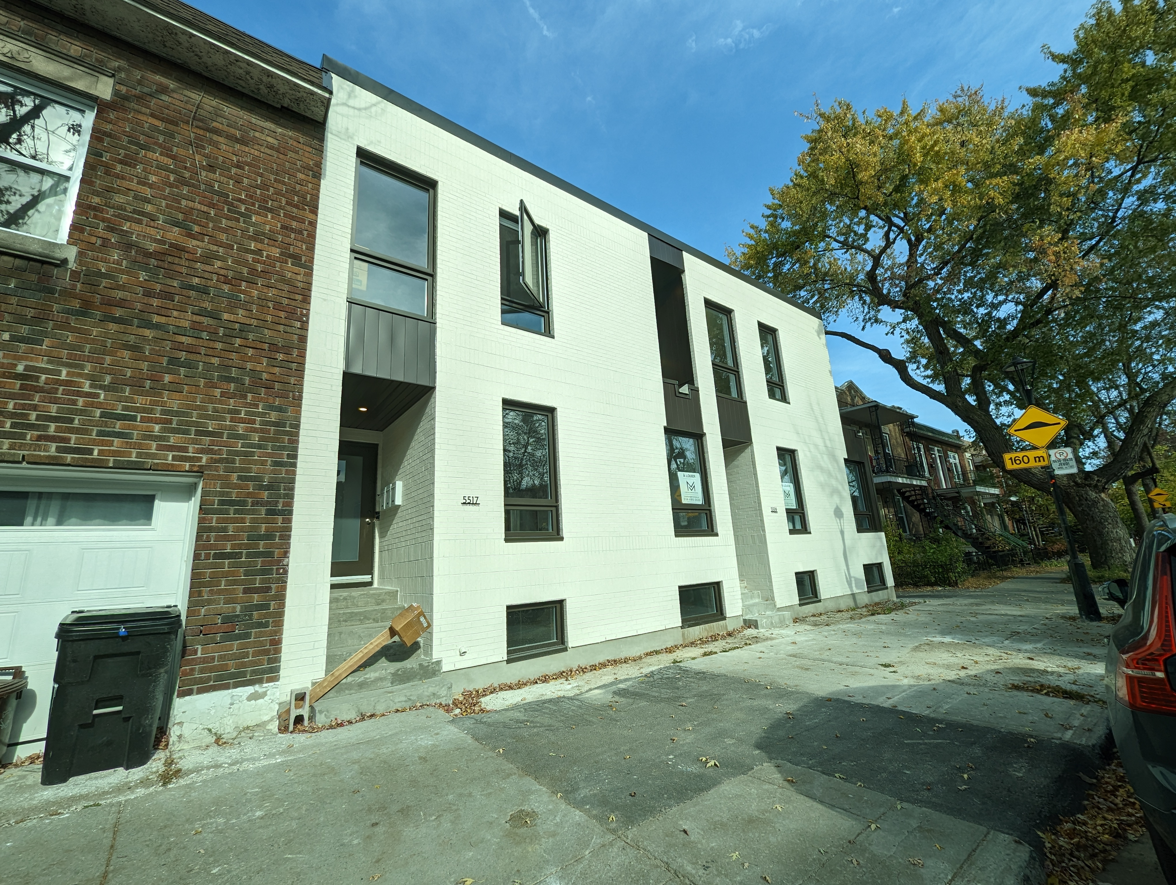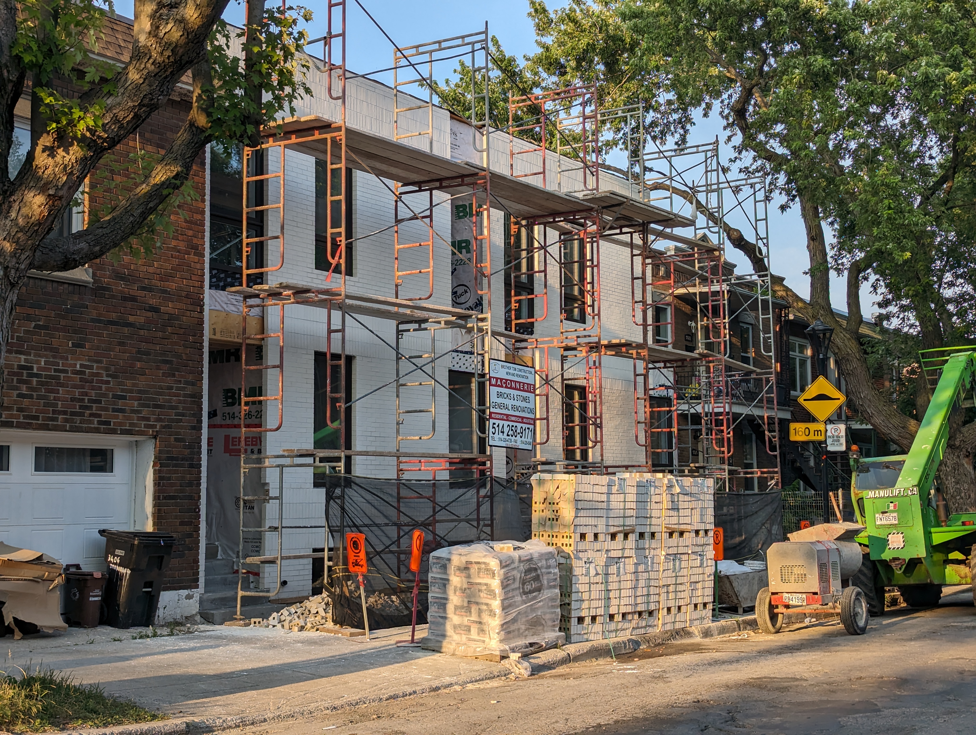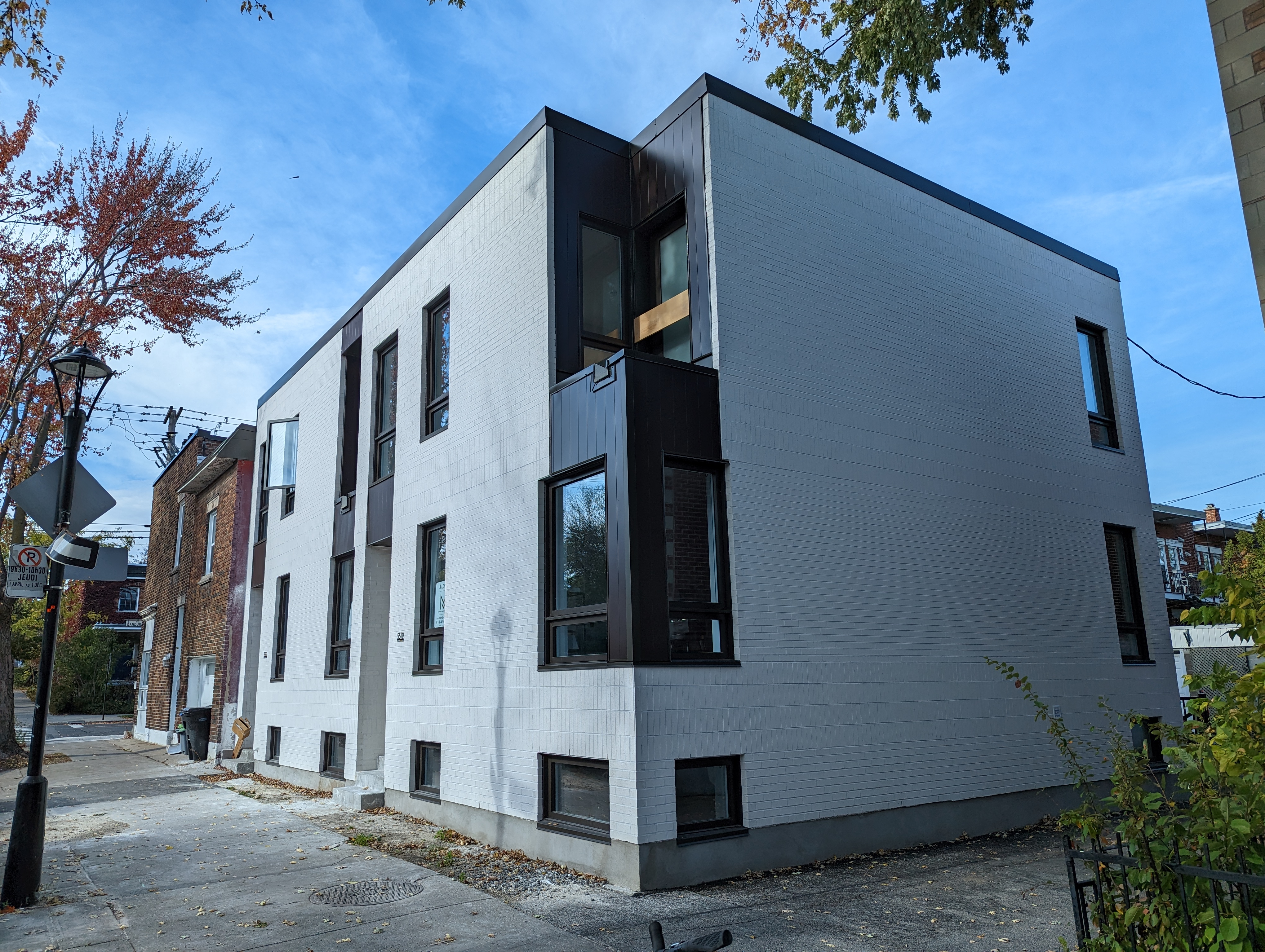 99% complété. Il ne reste que la sonnette et la balustrade. Le bâtiment est occupé (mais quelques unités sont toujours disponibles).