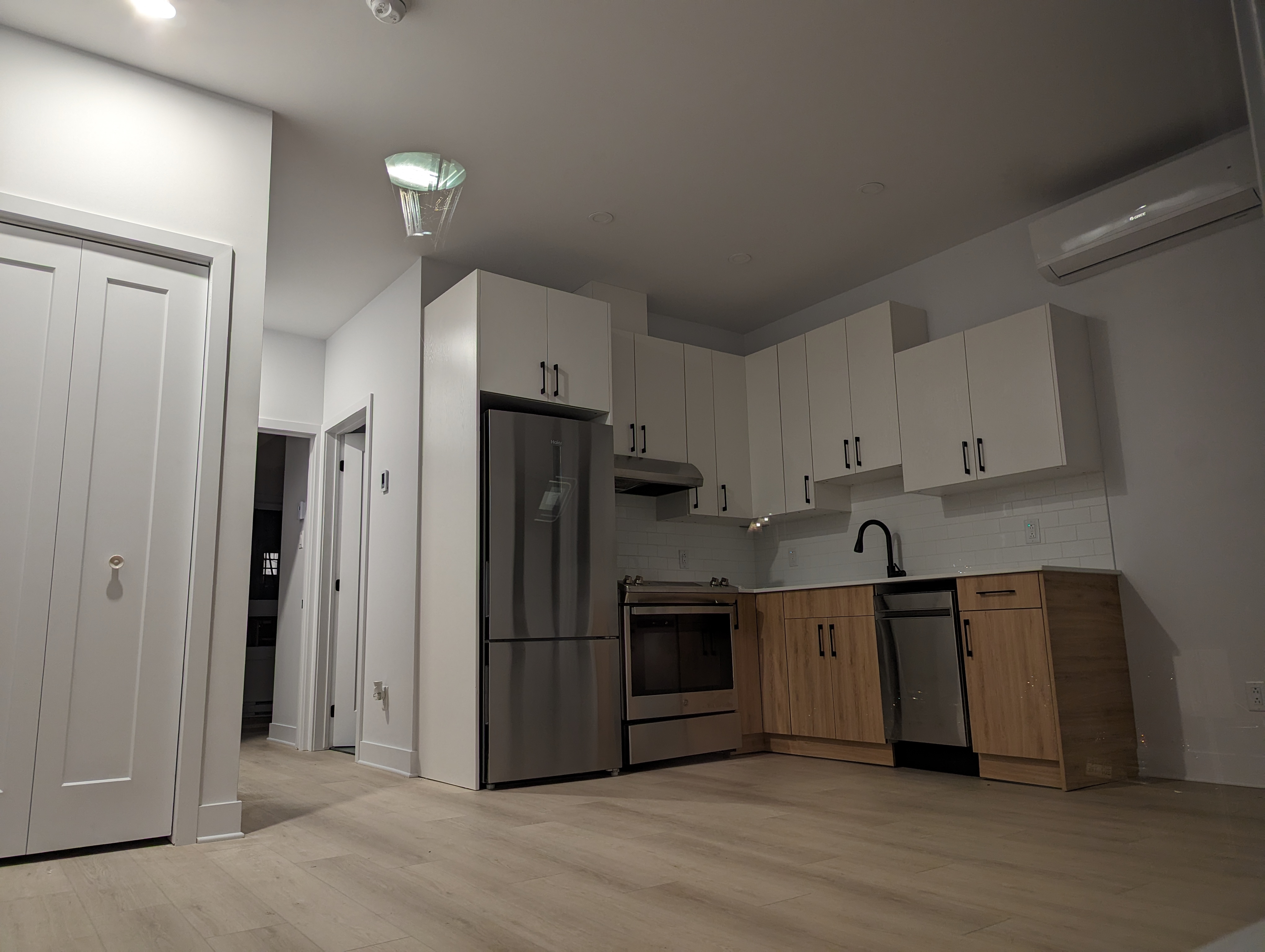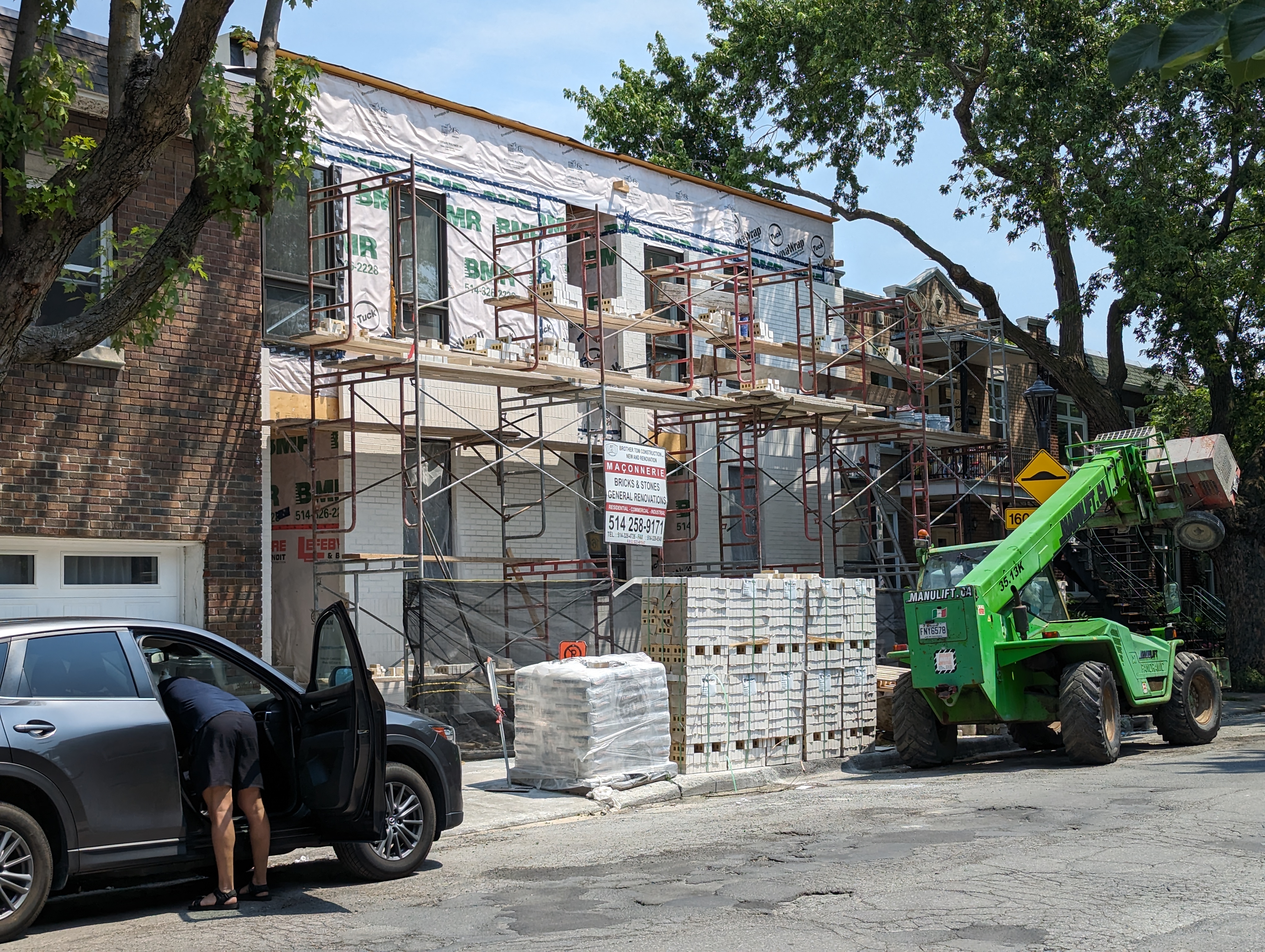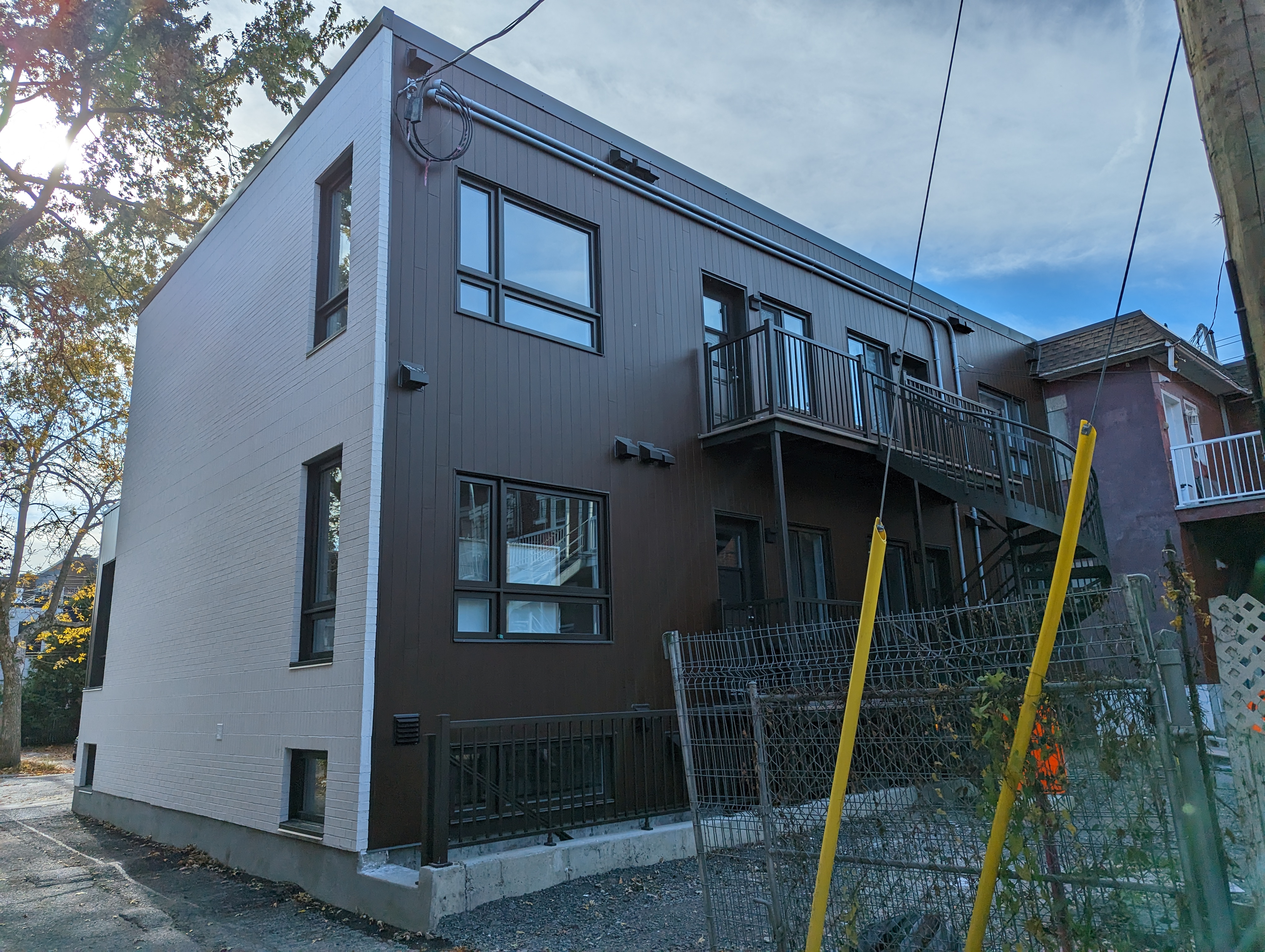 99% complété. Il ne reste que la sonnette et la balustrade. Le bâtiment est occupé (mais quelques unités sont toujours disponibles).