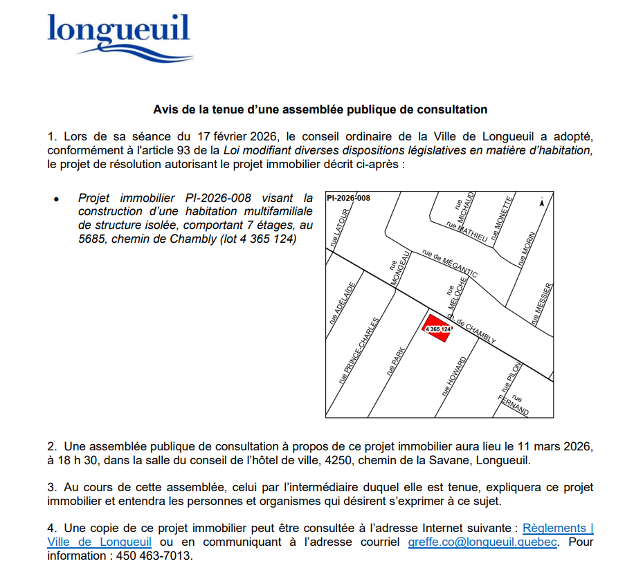 La Ville souhaite accélérer sa réalisation, en cohérence avec sa stratégie d’habitation, en s’appuyant sur les dispositions législatives permettant d’autoriser, jusqu’en février 2027, des projets résidentiels dérogeant à la réglementation.