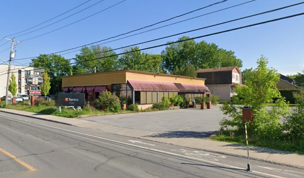 Quarante-neuf logements remplaceront bientôt ce restaurant vacant au 5685, chemin de Chambly, à l’intersection de la rue Park, dans l’arrondissement de Saint-Hubert. (Photo : GoogleMaps)