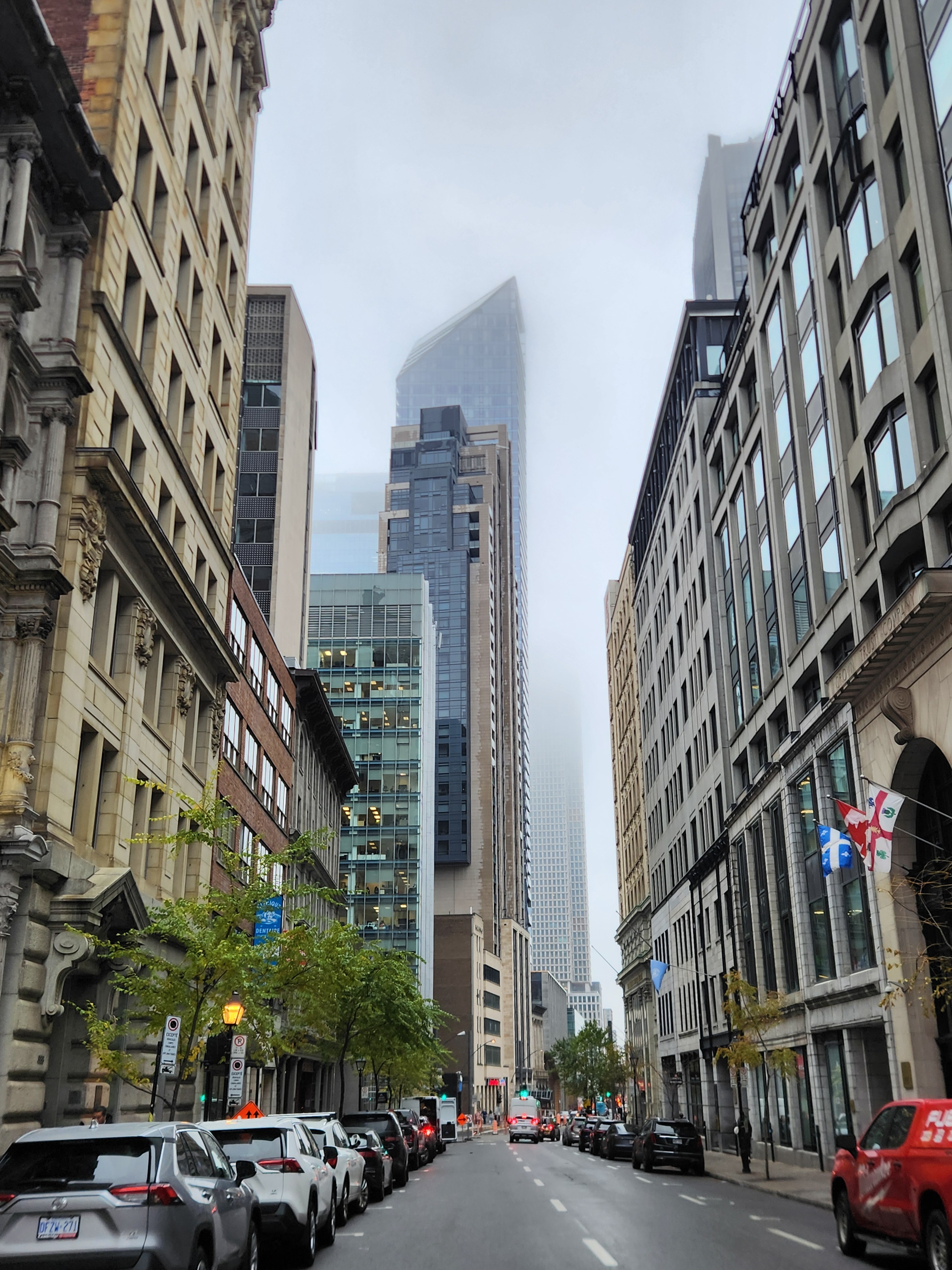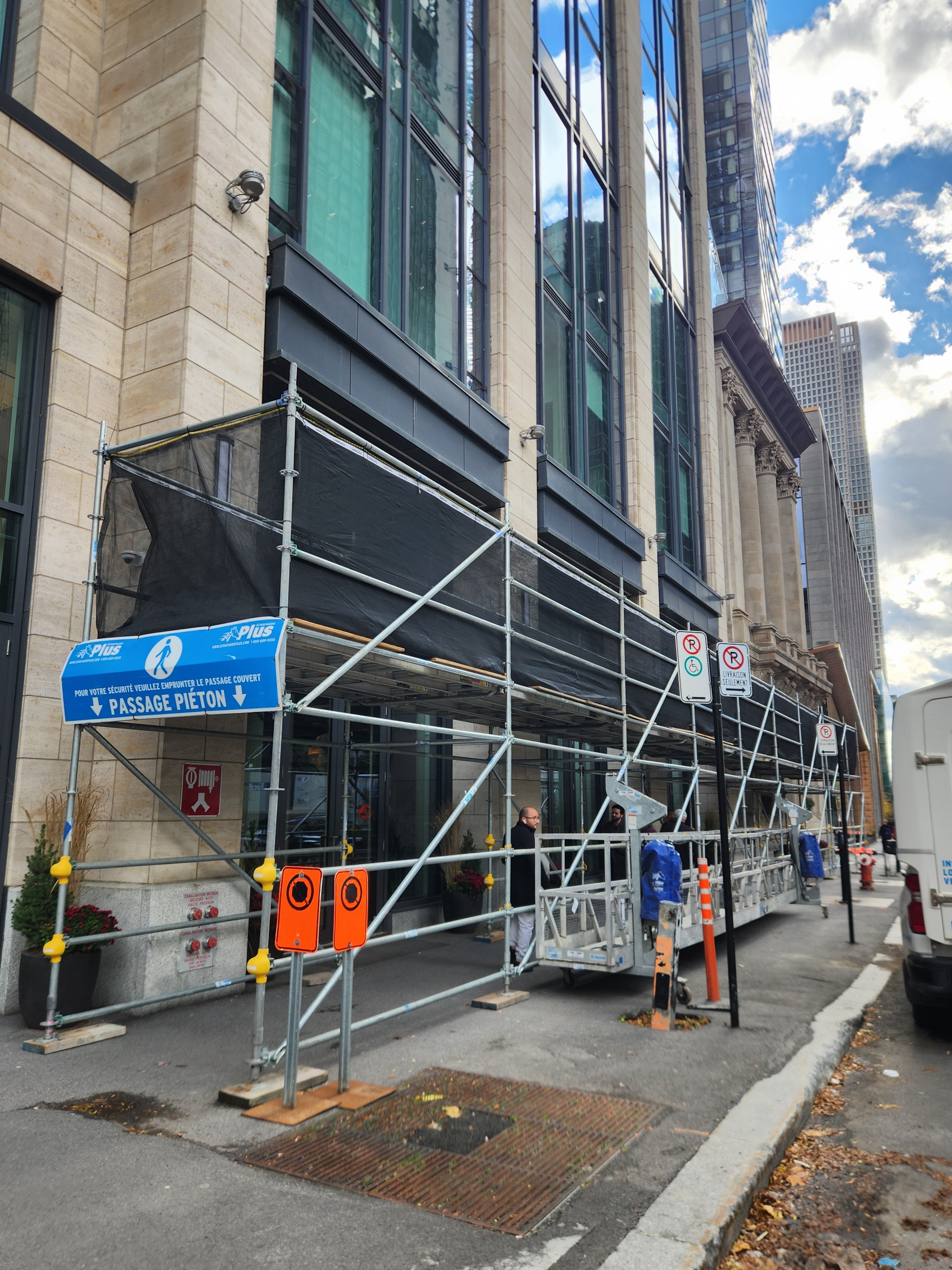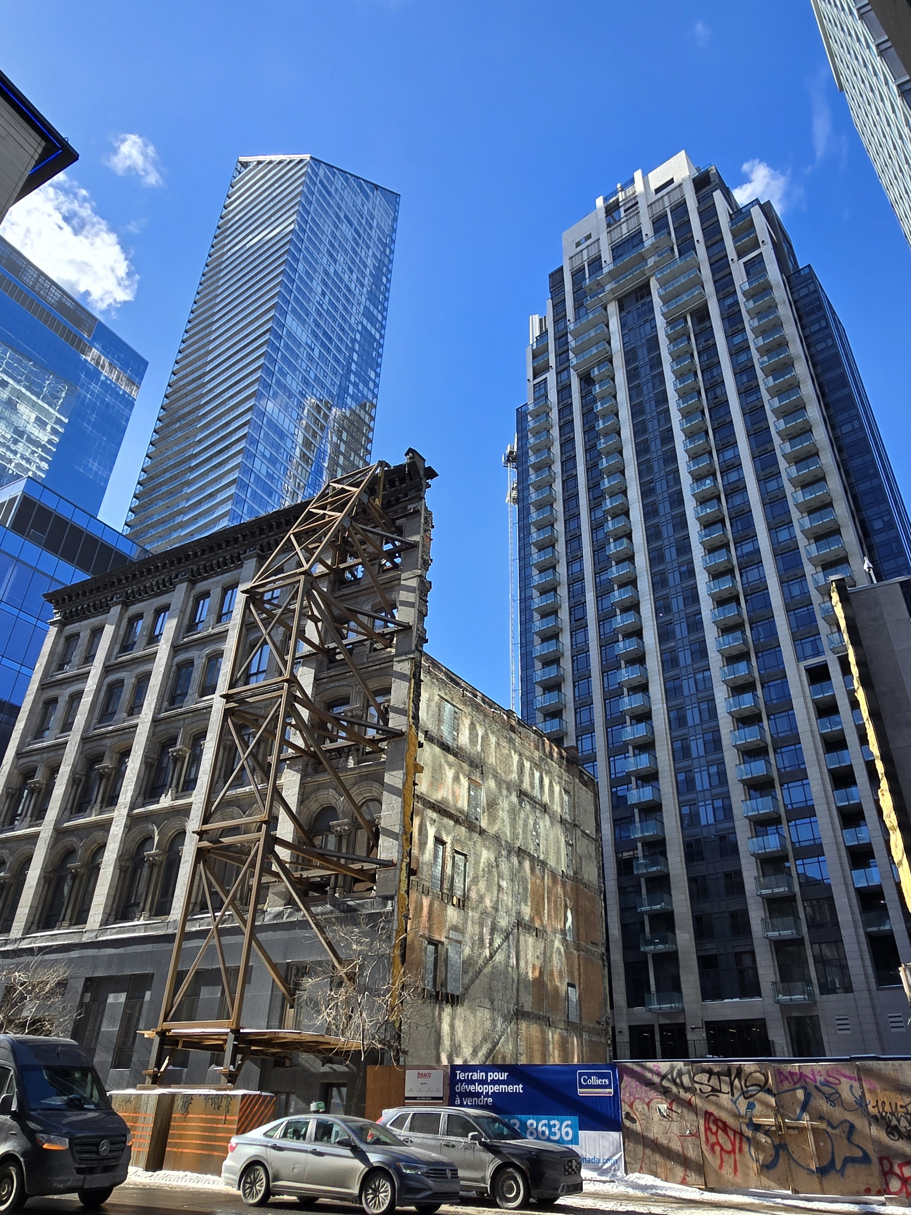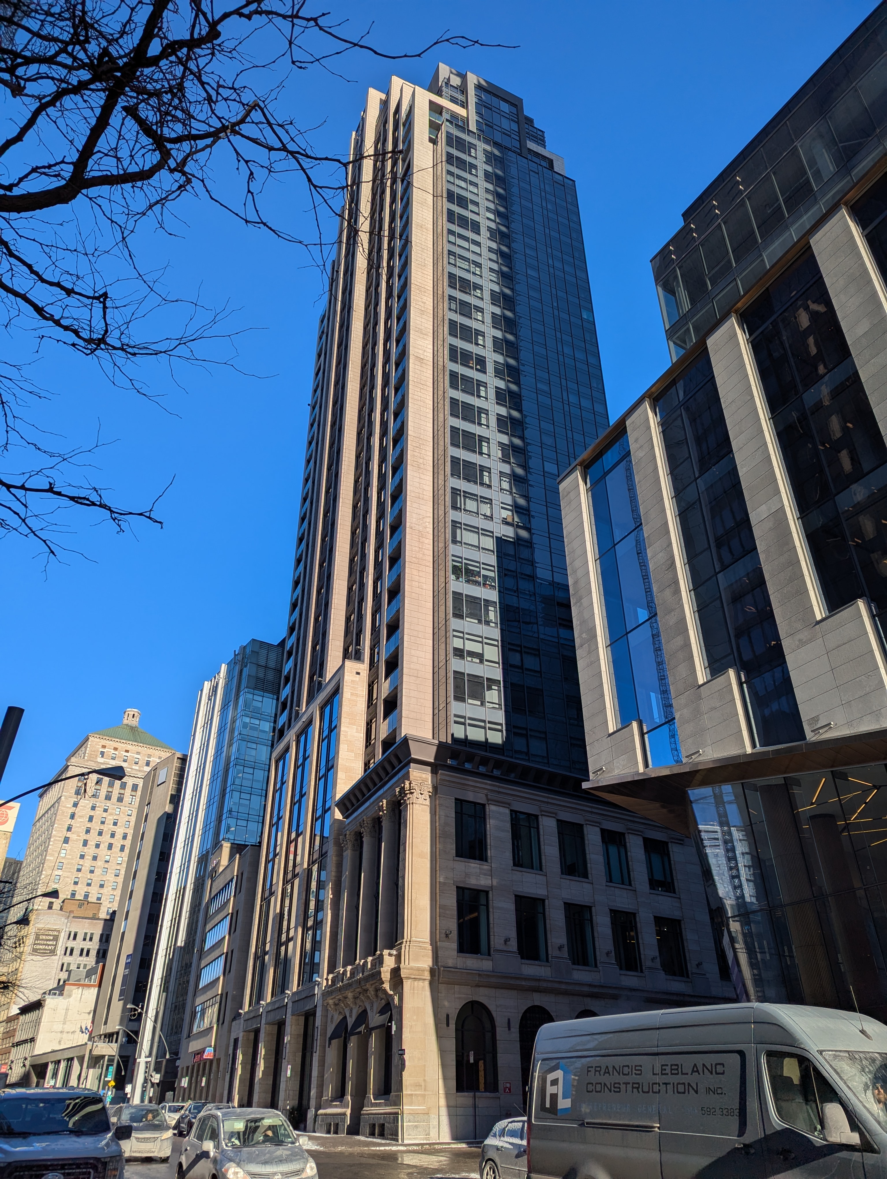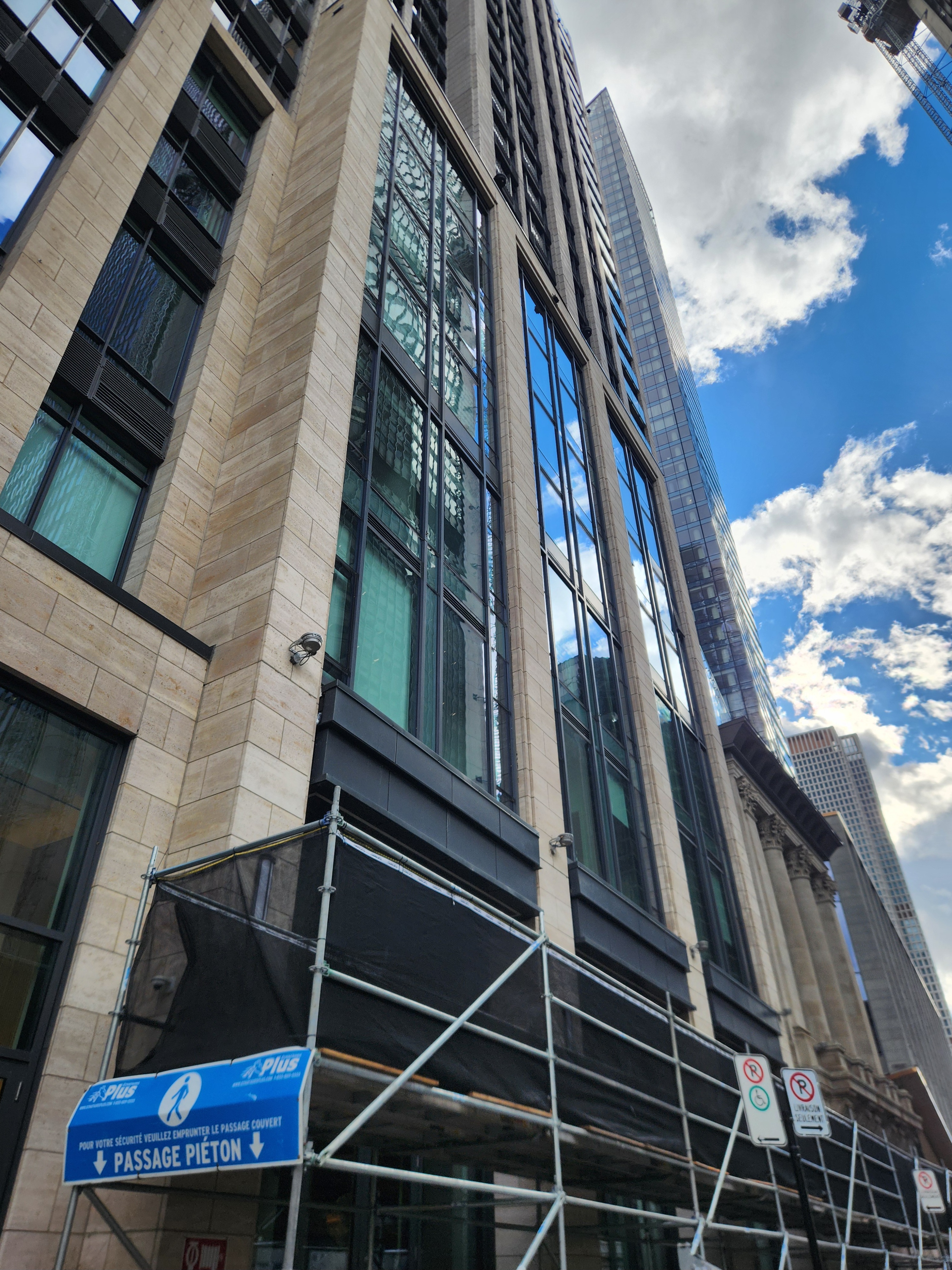 Il se fond tellement bien avec la Tour de la Bourse que je croyais qu’il y avait des travaux dessus!