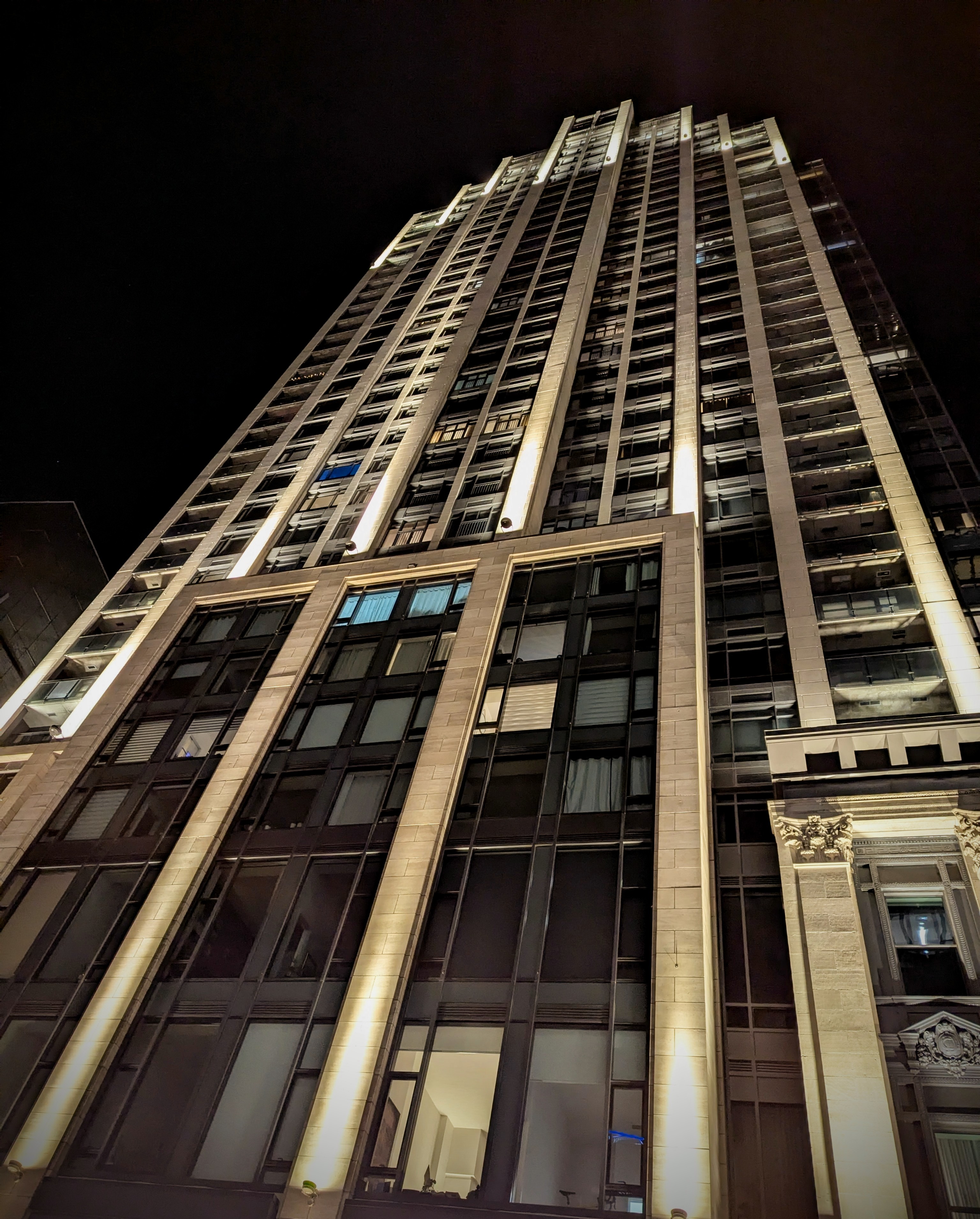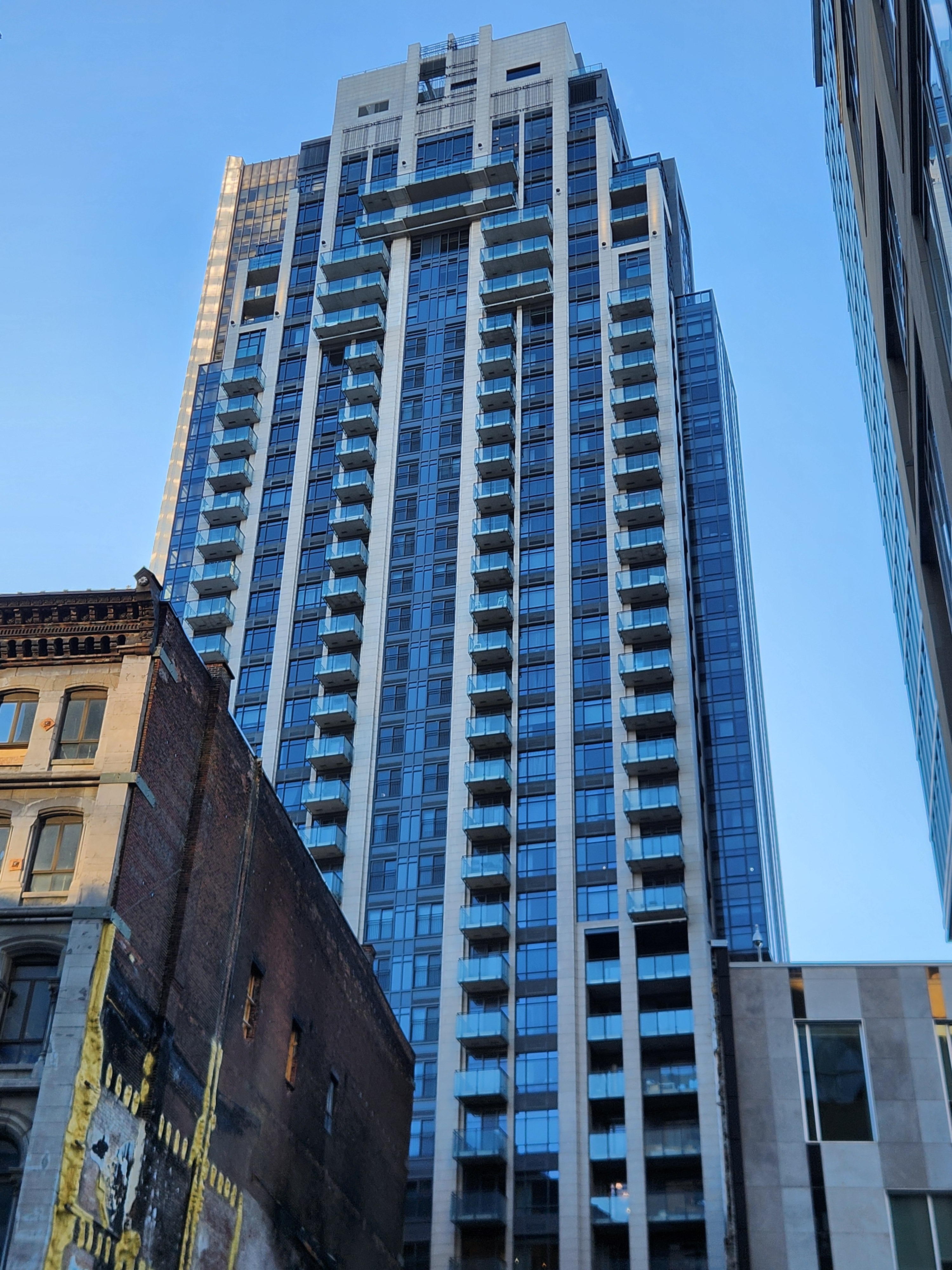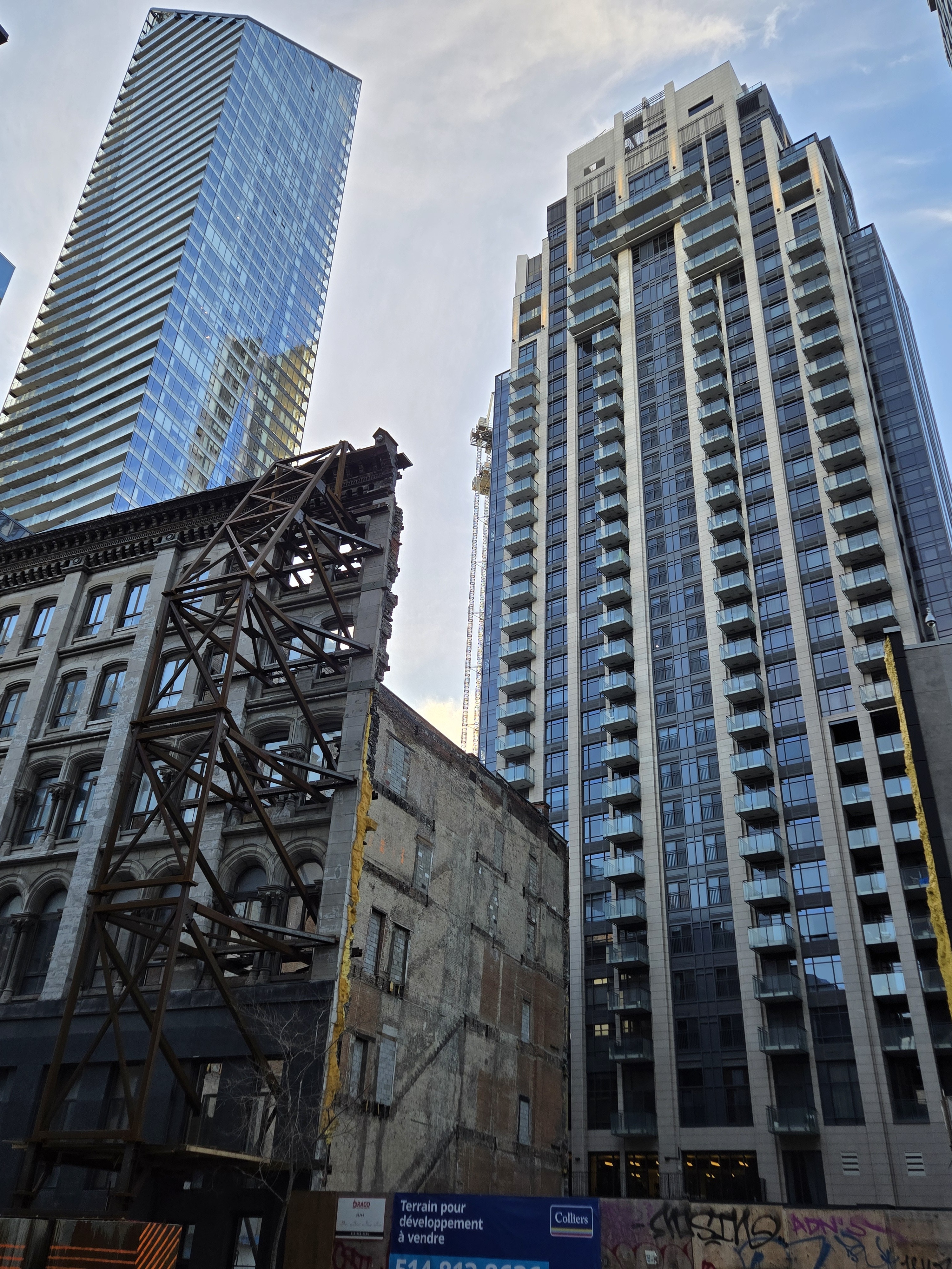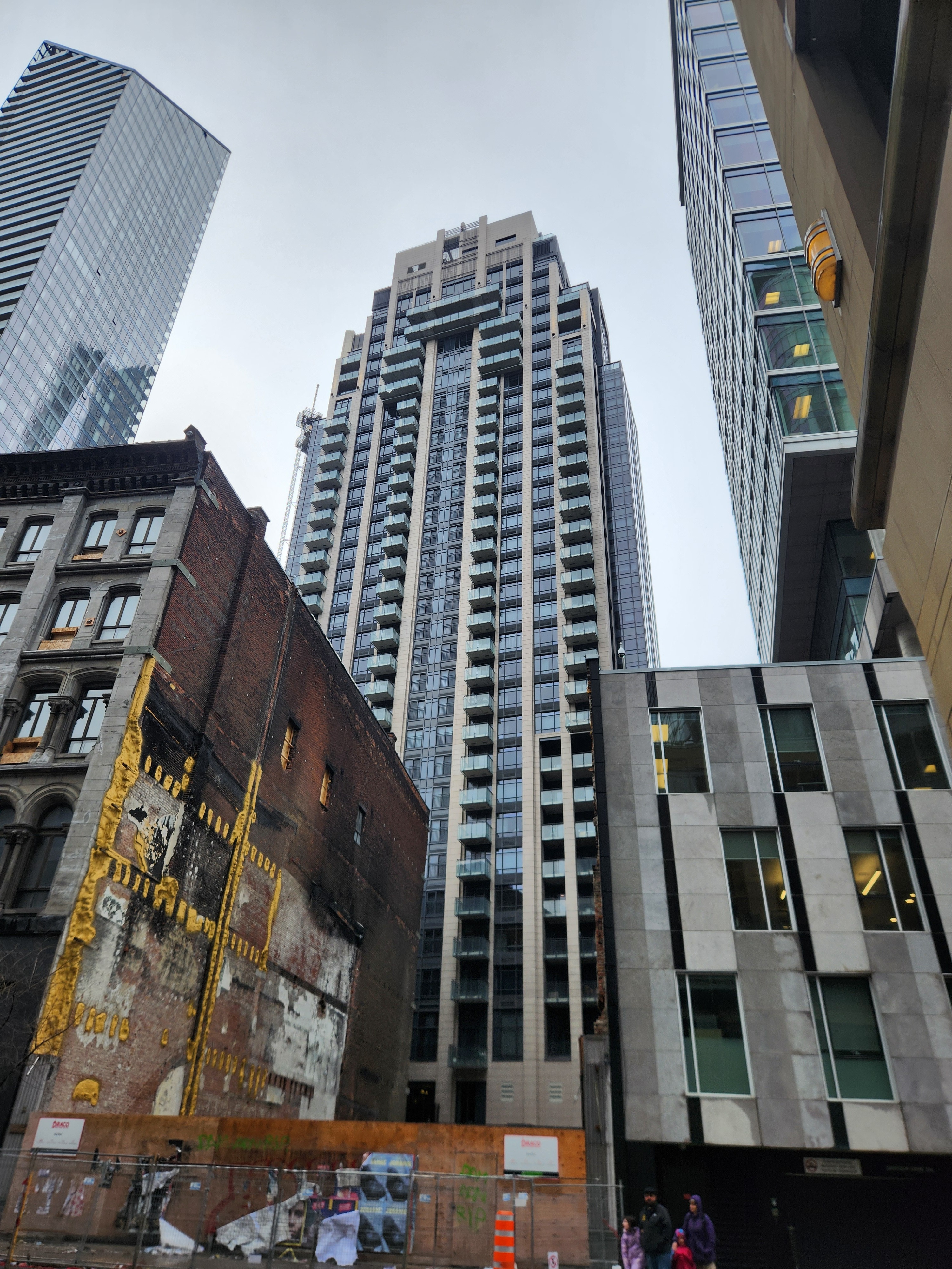 Il se fond tellement bien avec la Tour de la Bourse que je croyais qu’il y avait des travaux dessus!