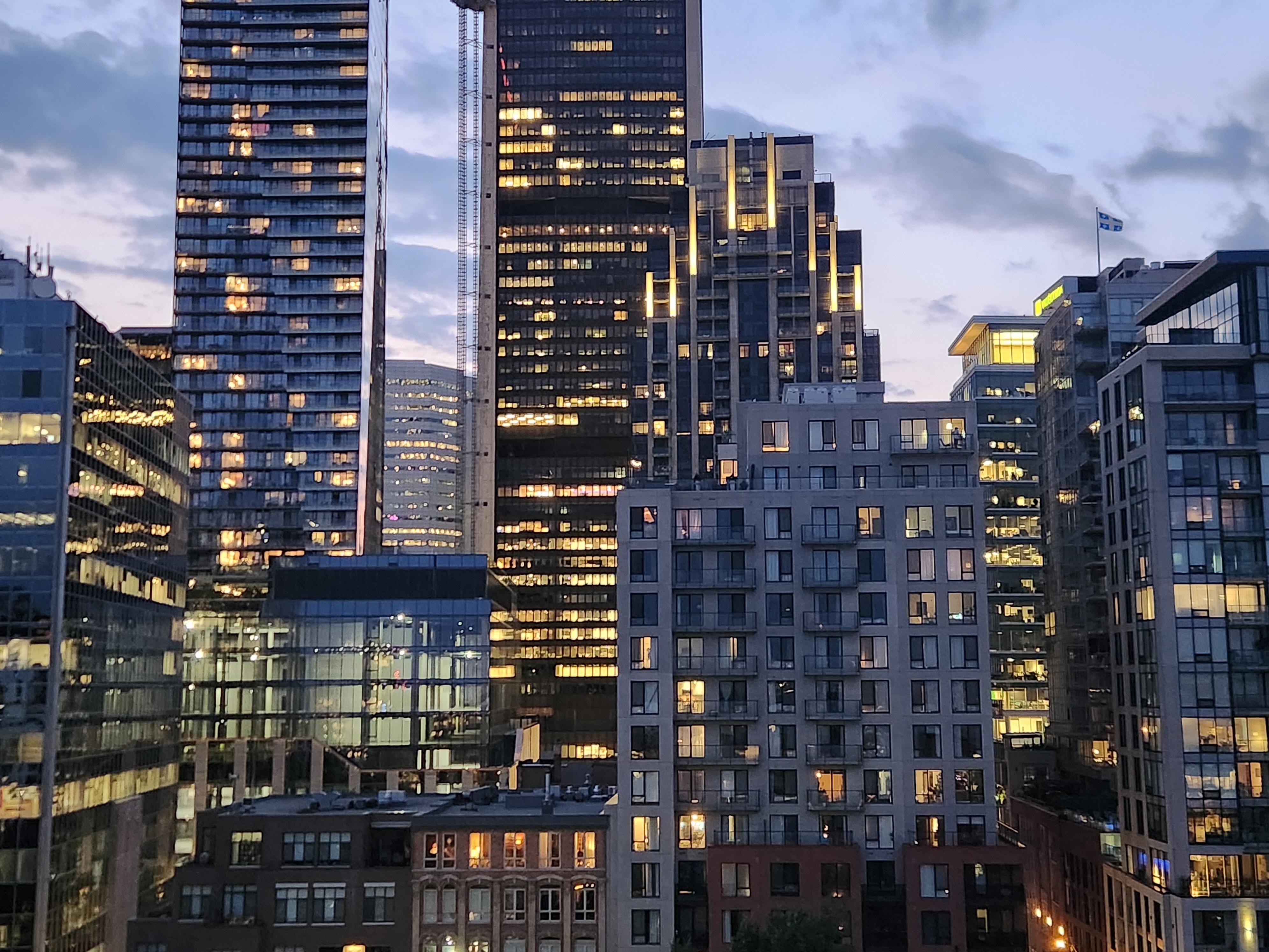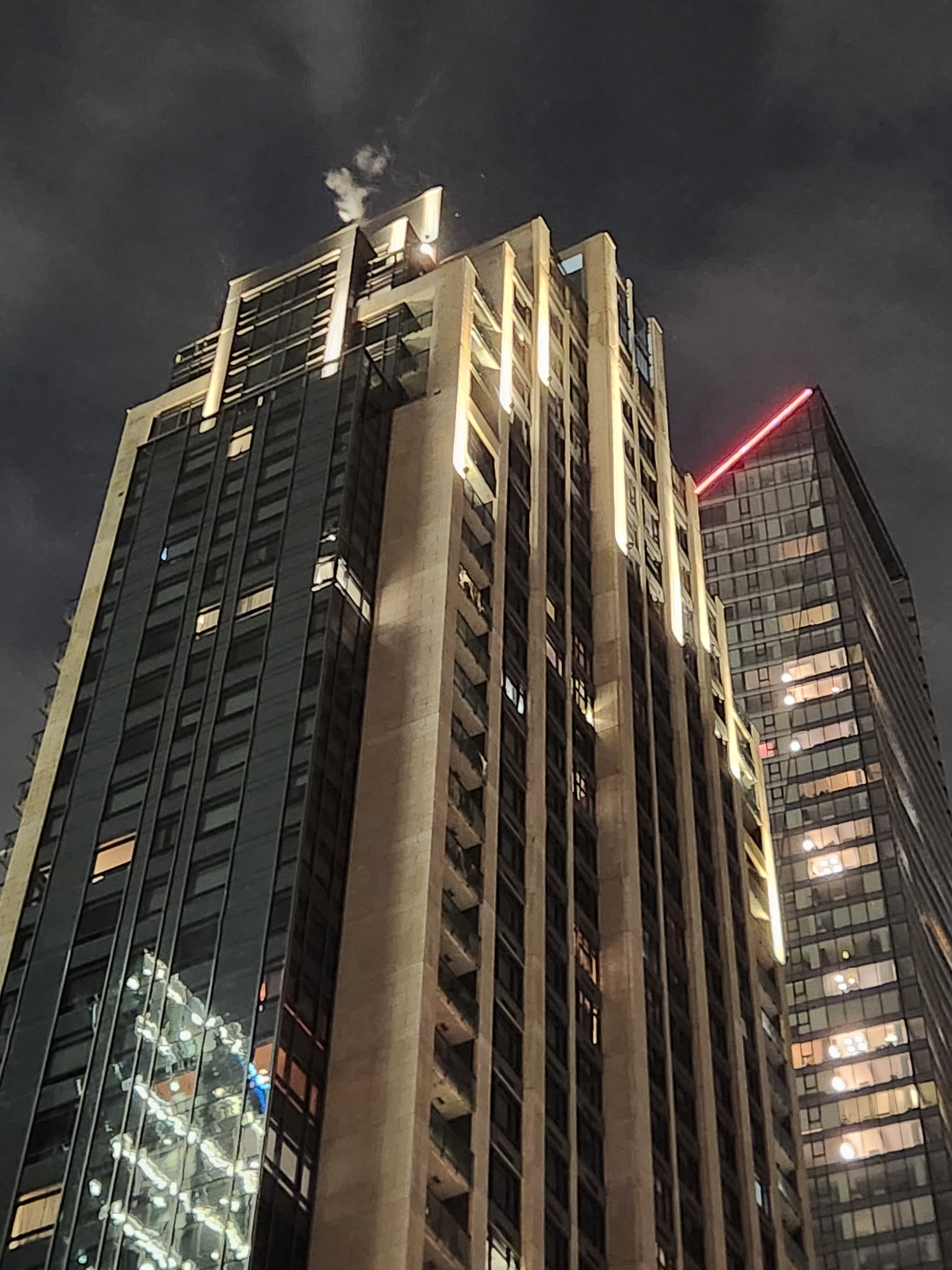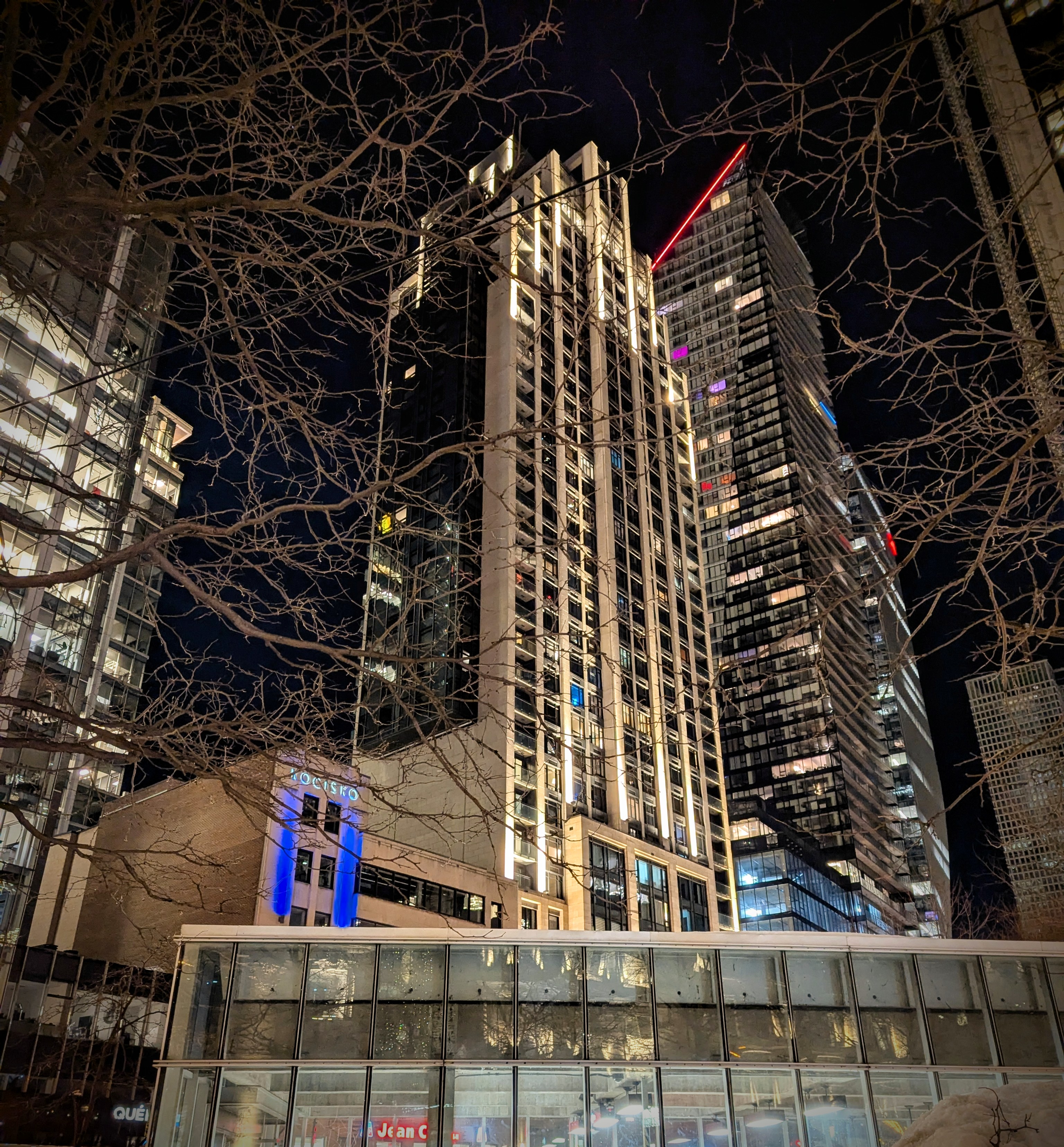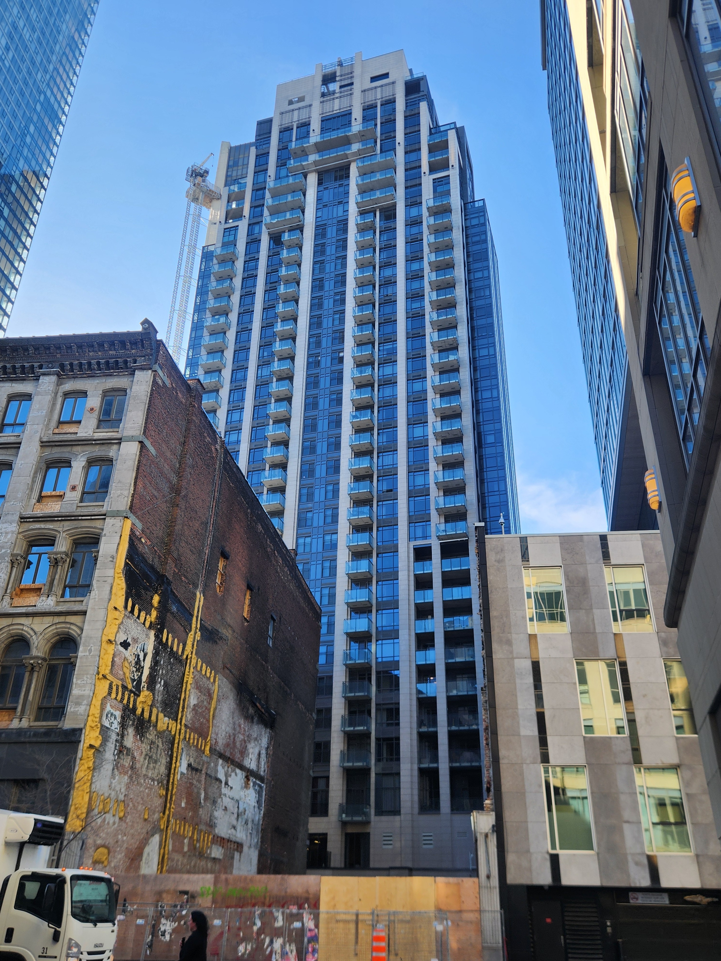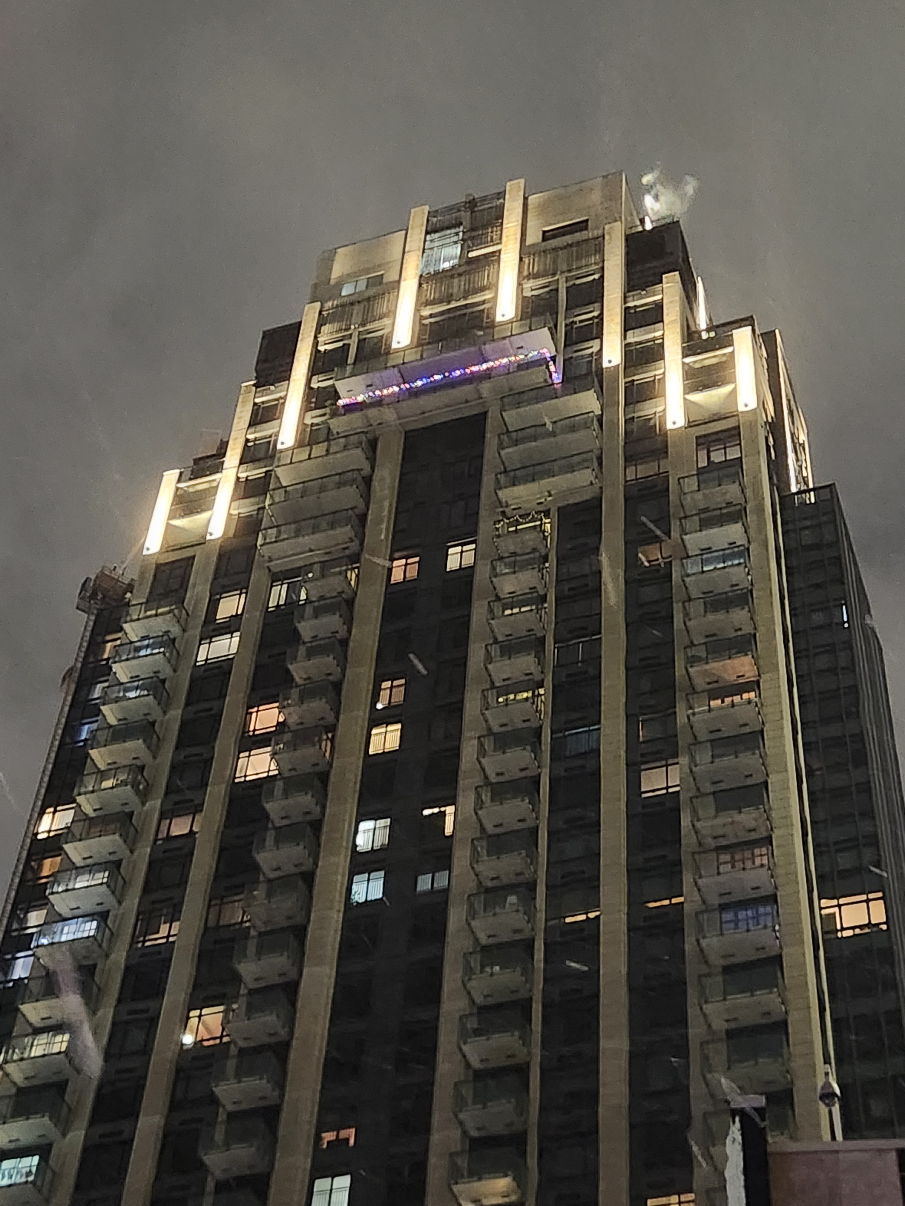 Il se fond tellement bien avec la Tour de la Bourse que je croyais qu’il y avait des travaux dessus!