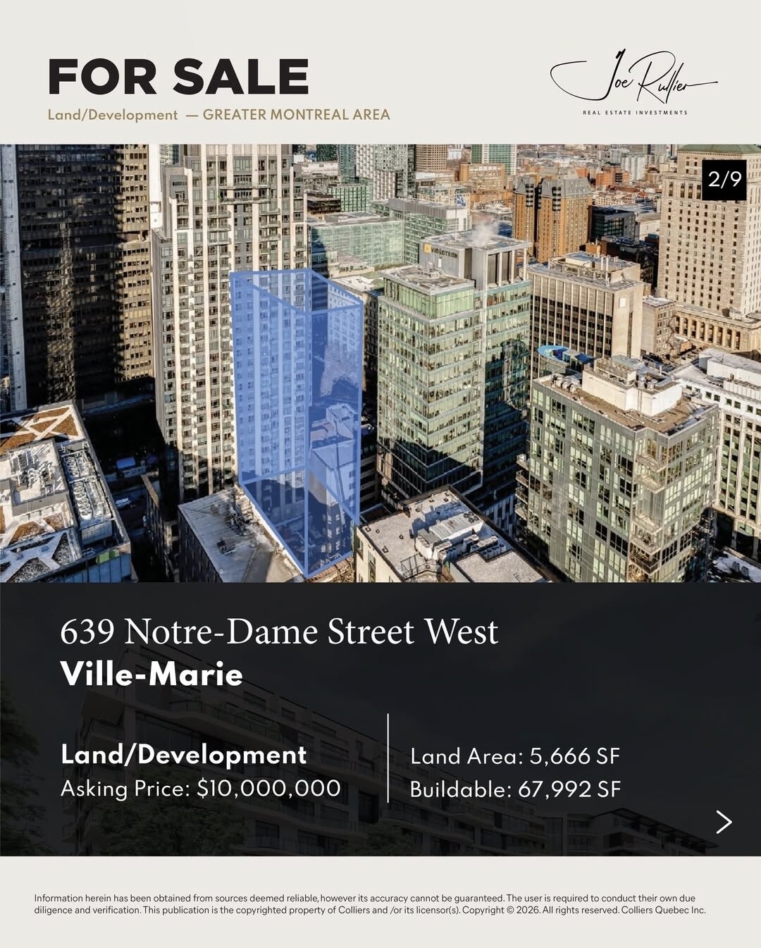639, rue Notre-Dame Ouest représente une occasion exceptionnelle de développement au centre-ville de Montréal.