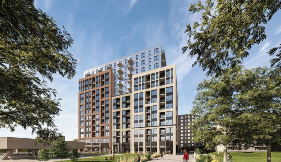 Projet mixte comptant 479 logements (dont 195 logements hors marché) prévu en remplacement de deux immeuble commerciaux adjacent à la station de métro Langelier et construits en 1963 et 1967.