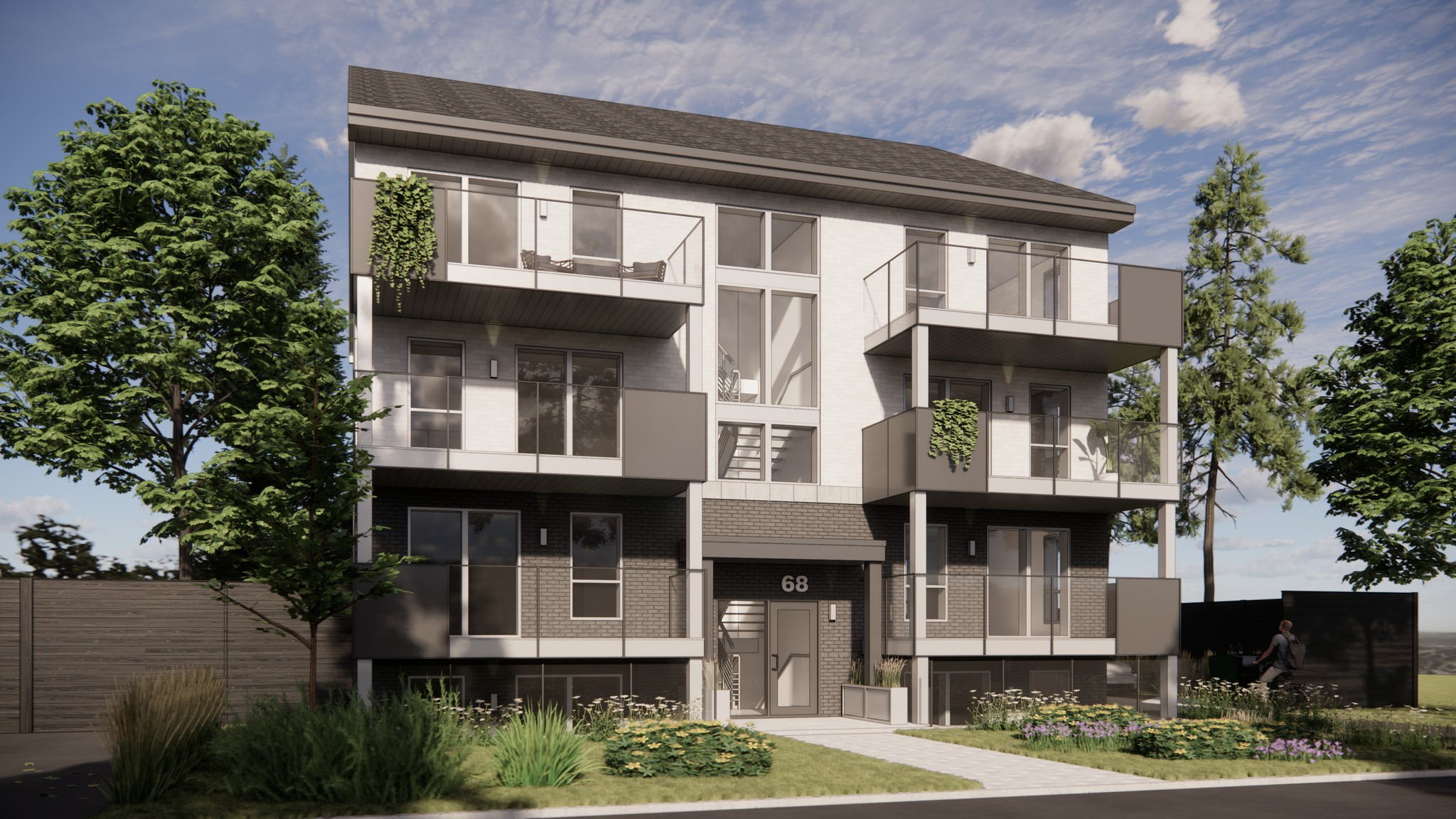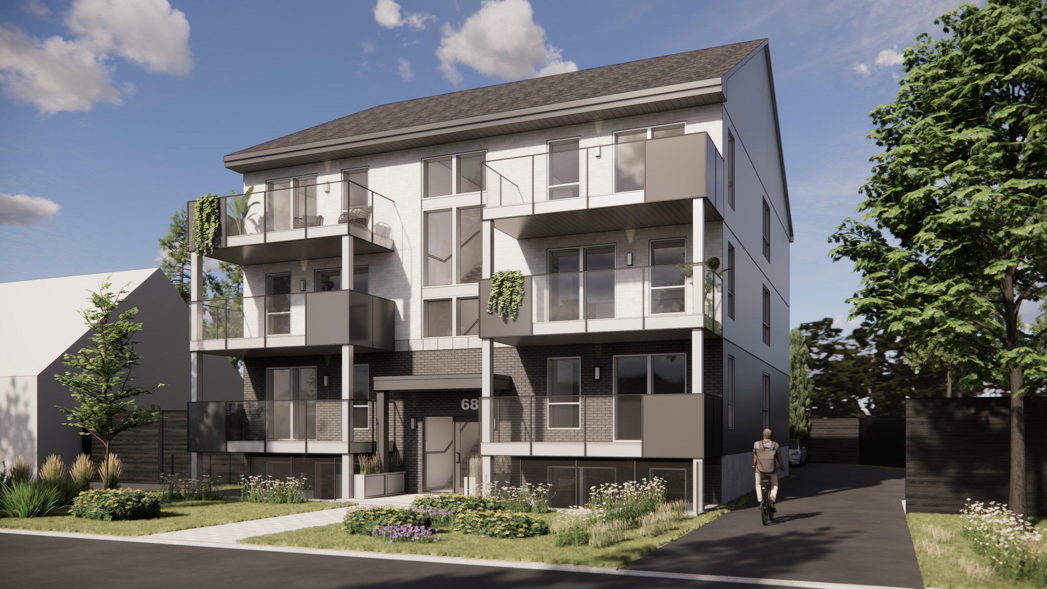 Projet de 8 logements situé près de la station Grand-Moulin du REM et réalisé en remplacement d’une maison unifamiliale.