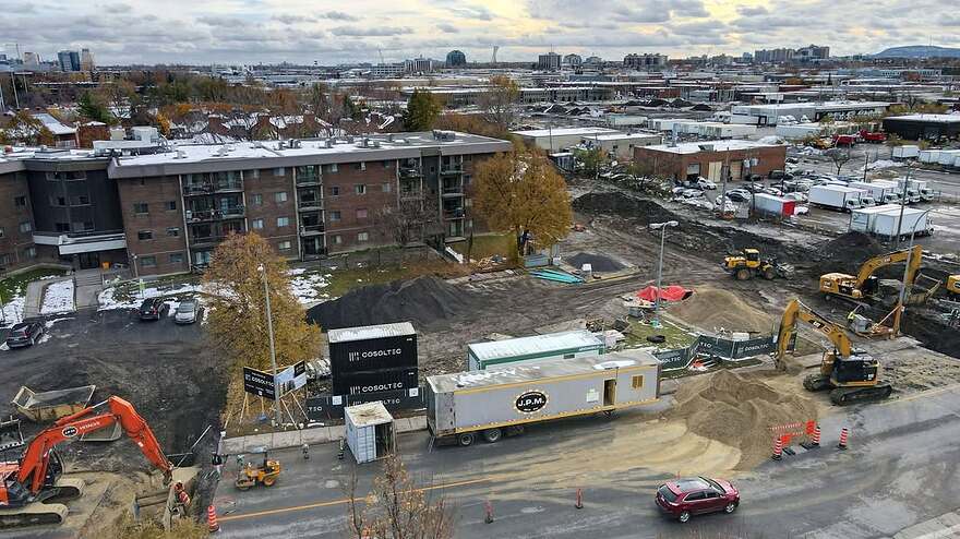 PIIA : Construire un nouveau bâtiment résidentiel isolé de 4 étages avec un étage terrasse et un sous-sol, comprenant 99 logements et 59 cases de stationnement. Le nouveau bâtiment sera relié au bâtiment existant sur le terrain voisin (7050, rue Bombardier) par le sous-sol, conformément aux plans approuvés.
