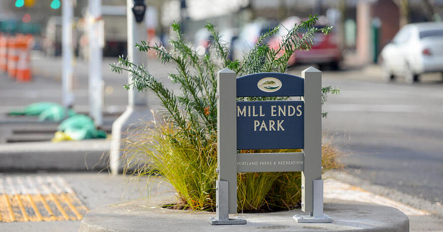Mill Ends Park is a tiny urban park, consisting of one tree, located in the median strip of SW Naito Parkway in downtown Portland, Oregon. The park is a small circle 2 feet across, with a total area of 452 square inches (0.00007205784 acres). It is the smallest park in the world, according to the Guinness Book of Records, which first granted it this recognition in 1971.