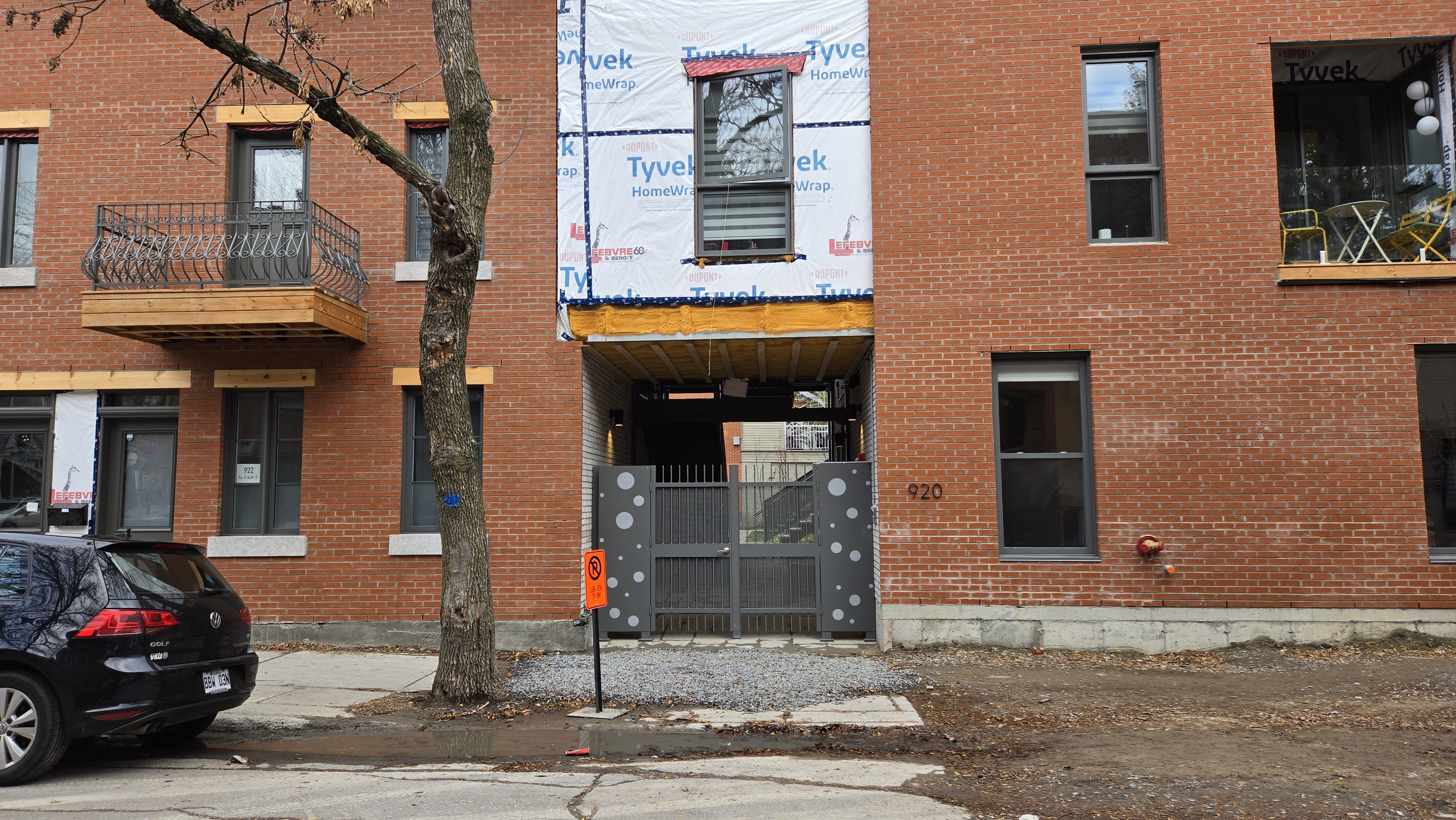 Il n’y a pas encore les colonnes sous le balcon, mais ils les ajouteront peut-être plus tard.