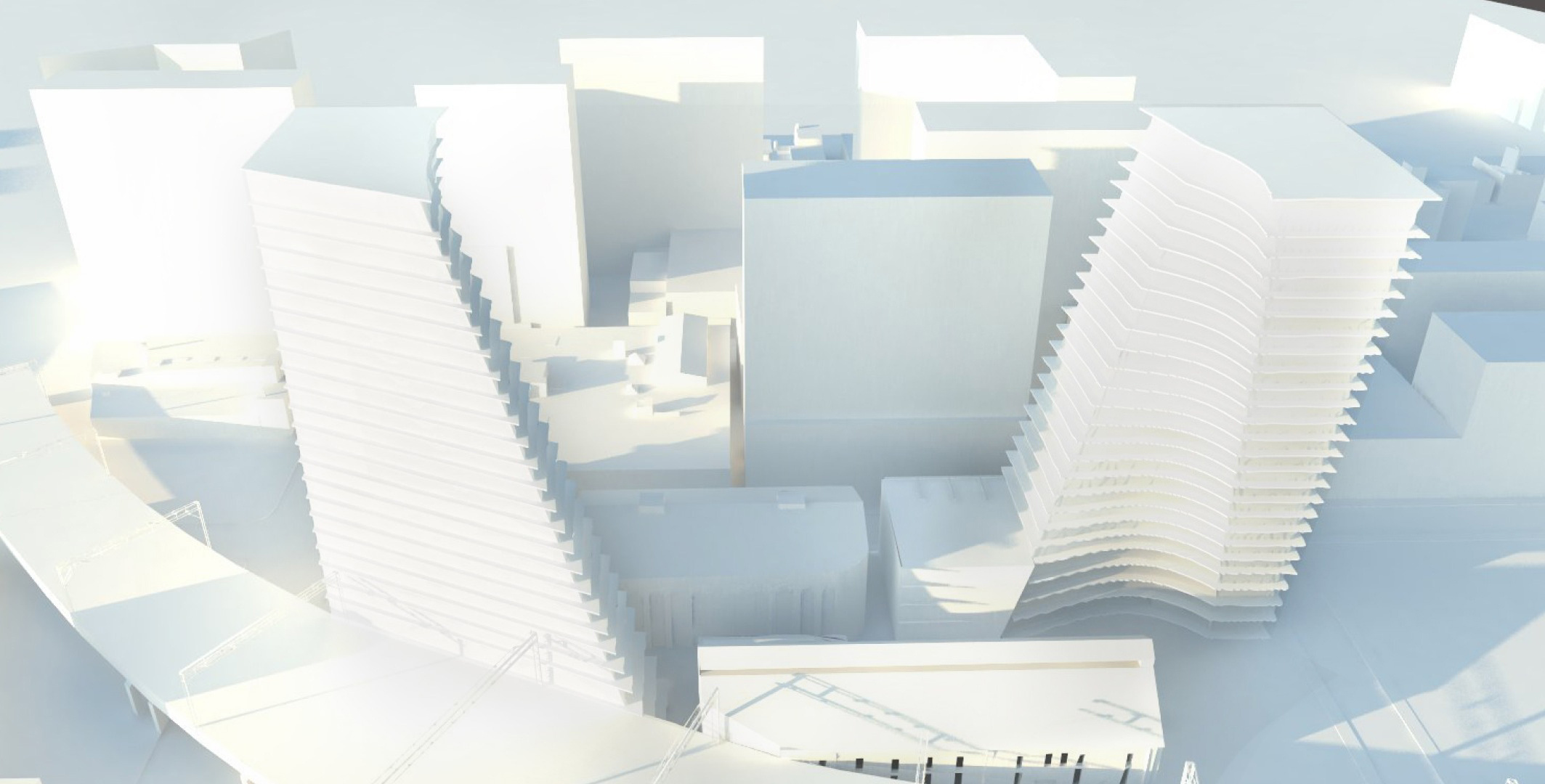 Je ne crois pas que quiconque lèverait le nez sur la volumétrie proposée pour ce projet. Mais suite à avoir vécu nombre de déceptions après avoir vu des évocations audacieuses pour des projets annulés ou qui nous auront donné de bons vieux parallélépipèdes (allô, Gt, Haleco et tant d’autres!), de plus en plus souvent avec la banale fenestration “pseudo-randomisée à-la-Devimco” par rapport à l’axe horizontal, je ne retiendrai pas mon souffle avant le dévoilement du concept qui servira à la prévente…