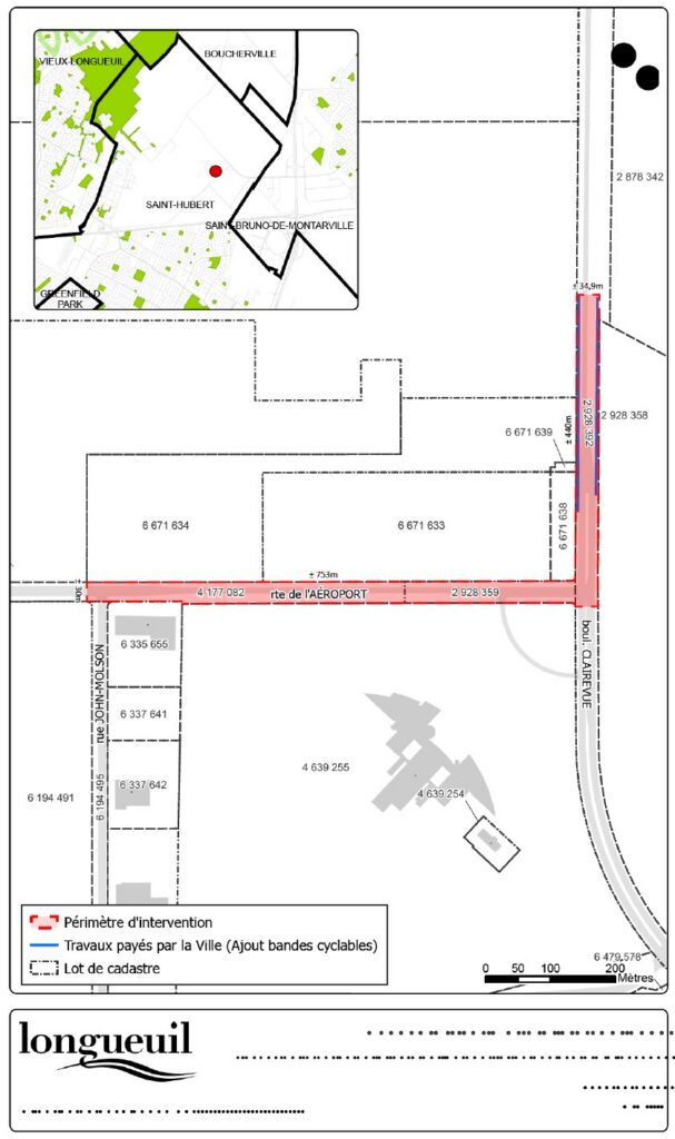 Zone d’intervention des travaux. (Photo : Sommaire décisionnel de la Ville de Longueuil du 17 mars 2026)