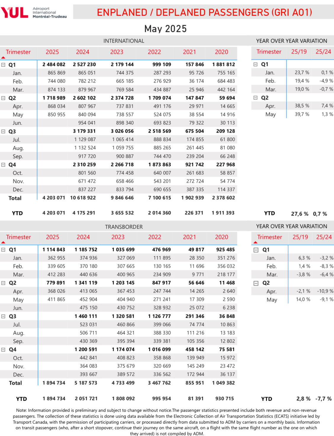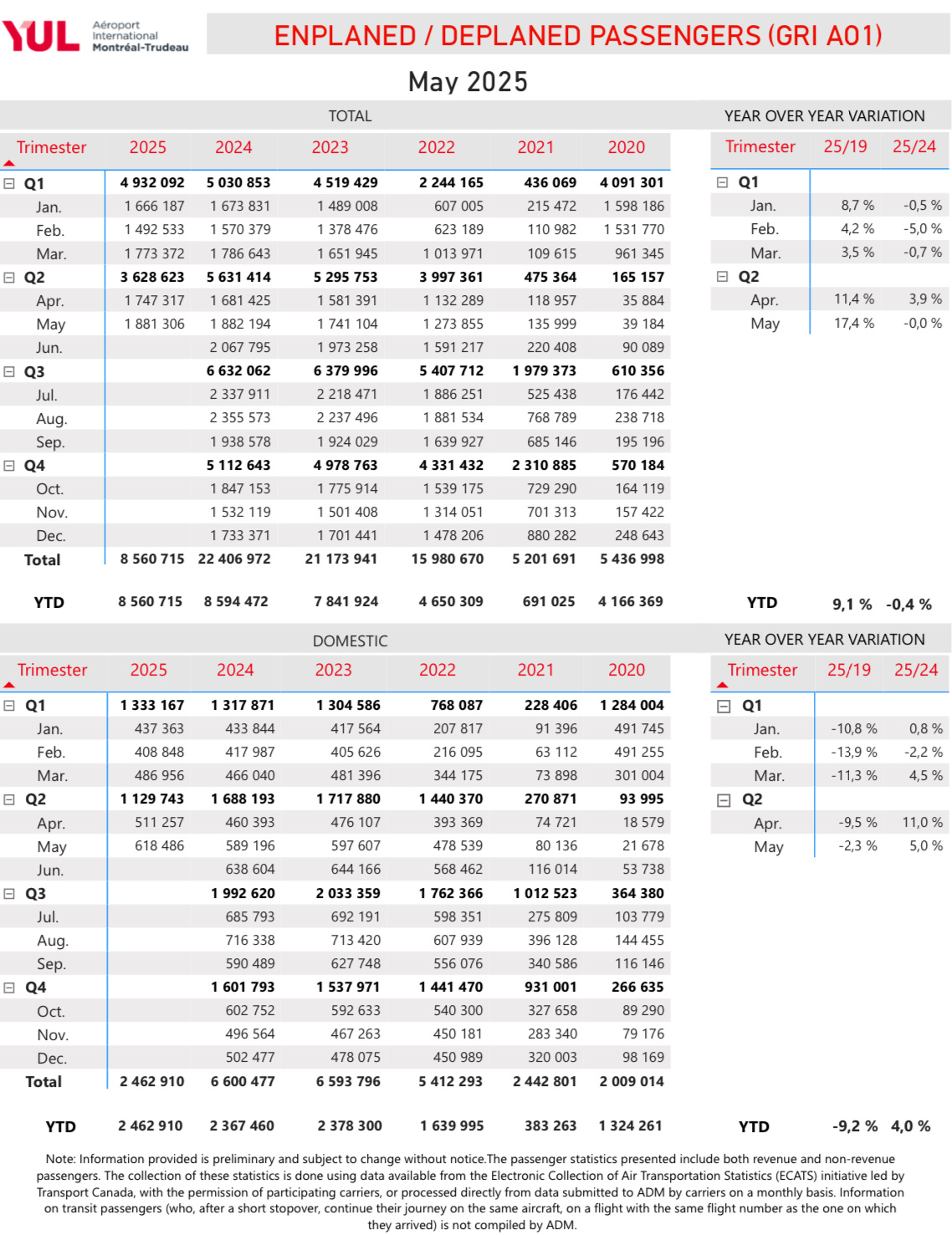Don’t forget also that there is a general decrease in travel to and from the US by most countries (including americans). This could also explain a less hot international passenger number, because there are less US->International connections at YUL.