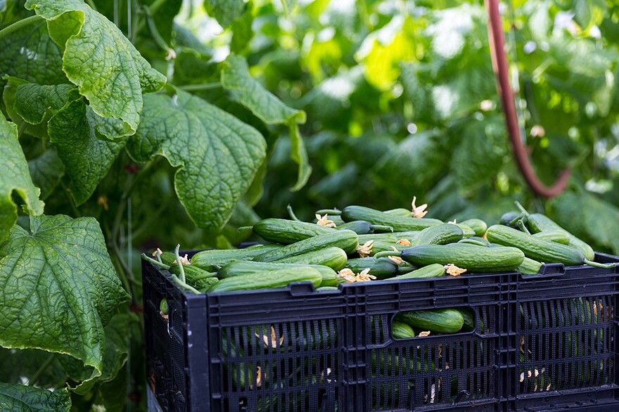 L’entreprise utilise un système de culture hydroponique à partir d’un substrat de fibres de noix de coco, en boucle fermée (tous les nutriments sont dissous dans l’eau). L’eau de pluie et de fonte est récupérée et recirculée dans le système, ce qui évite le ruissellement et la pollution agricole.