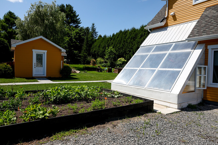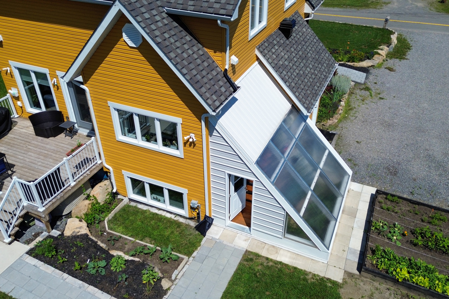 Le fait d’accoler la serre à la maison a aussi plusieurs avantages pour la régulation de la température. Dans une serre détachée, le mur nord est sujet à de grandes pertes énergétiques, explique Samuel Leclerc. Une serre annexée permet de protéger la façade nord et de récupérer les pertes en chaleur de la résidence.