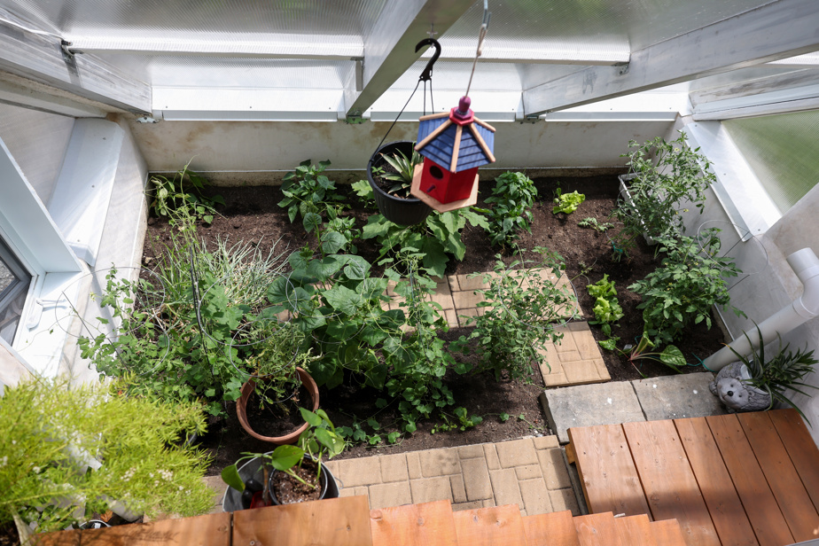 Dans un petit solarium lumineux, le sol est recouvert de terre. Laitue, fines herbes et échalotes y sont plantées, des aliments qui ne font plus partie de son panier d’épicerie depuis longtemps.