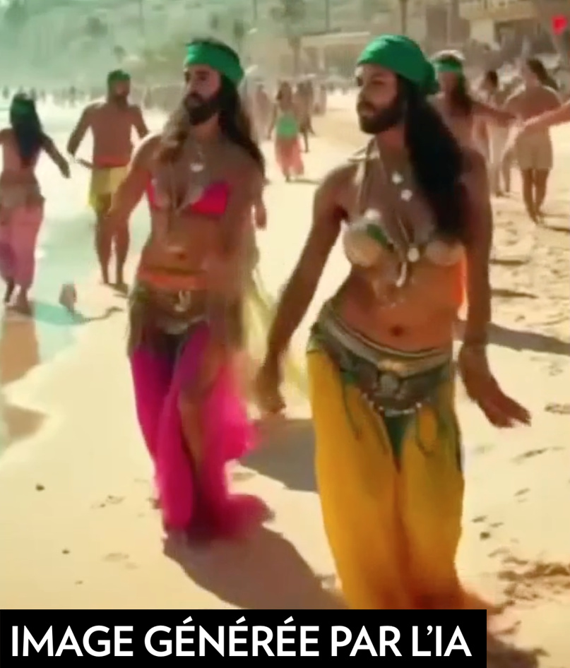 Dans la vidéo, une image générée par l’IA montre des combattants du Hamas faisant la danse du ventre.