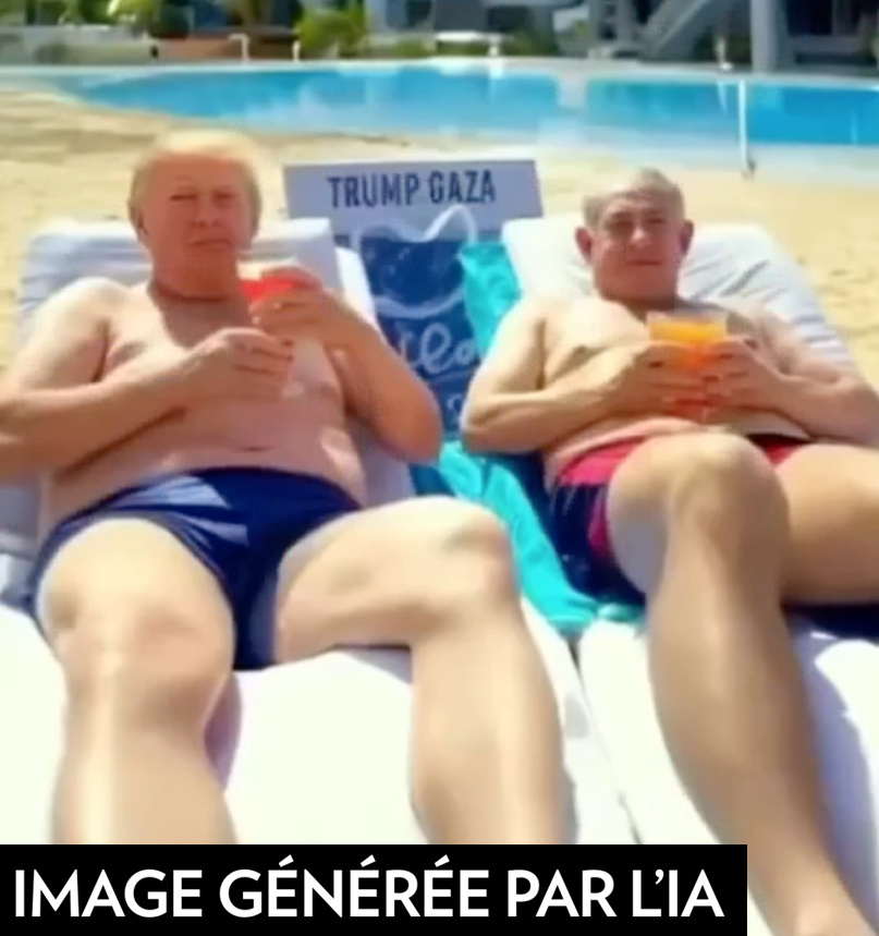 Donald Trump et Benyamin Nétanyahou sont présentés sur des chaises longues dans la vidéo générée par l’IA.