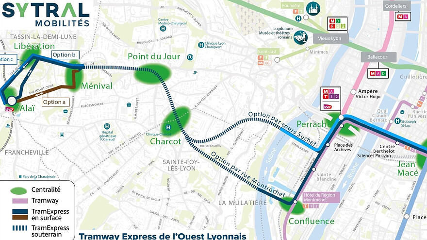 Pour ce qui est du déficit criant de transport à l’Ouest (Lyon est la ville la plus congestionnée de France malgré 4 lignes de métro et plein de tram parce que tout ça est au centre-est majoritairement) il y a différentes propositions durant la campagne électorale mais tout le monde s’entend sur la nécessité d’un tramway. Le projet TEOL est celui du maire sortant mais la population voulait plutôt un métro sous-terrain.