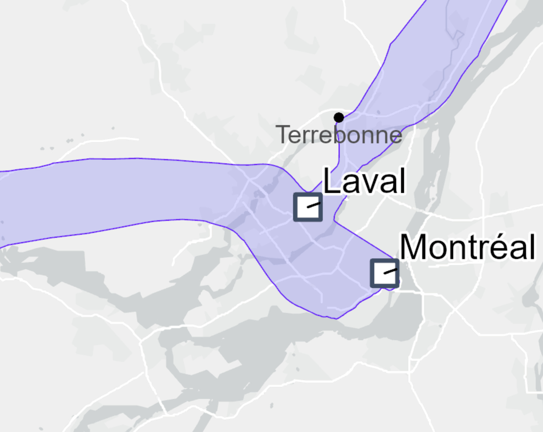 À proximité de Laval, le corridor approche des secteurs résidentiels où l’espace est restreint. Un pont ferroviaire sera nécessaire pour franchir la rivière des Mille-Îles. L’entrée par l’est privilégie les infrastructures linéaires existantes, mais la localisation de la gare reste à définir, en misant sur des solutions innovantes pour optimiser la connectivité aux transports existants.
