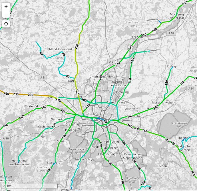 La plupart des ligne TGV en Allemagne partage souvent la même infrastructure ou surtout l’emprise avec les services locaux que dans un rayon de 10 à 15 km du centre.