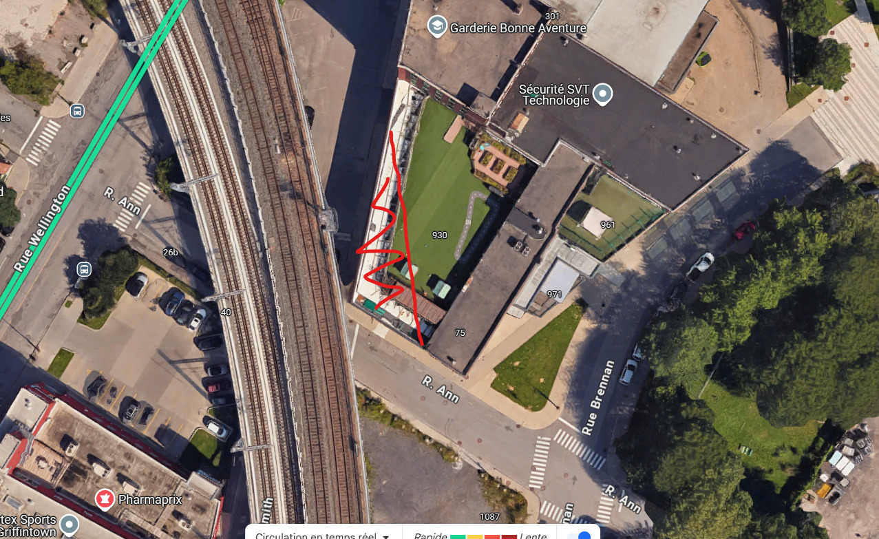 Je ne te parle pas de démolir ECCU, si tu vois sur Google Maps on peut voir qu’il y a assez de place pour une autre voie sur la bande de terre verte, ce qui amènerait le total à quatre vu qu’on est déjà à trois. En effet, rendu à ce point, on ne serait pas obligé de faire au standard tgv 320 km/h, alors l’espace nécessaire est moins grand. La démolition partielle auquelle je fais référence est le bâtiment juste avant au 930 Wellington qui devra être effectivement démoli en partie pour faire de la place à deux voies.