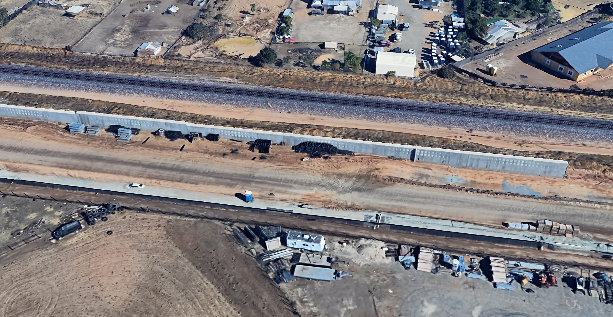 Le problème qu’on risque d’avoir avec cette emprise, ce sont les régulations Nord-Américaines. Je te présente le mur anti-intrusion du HSR de Californie.