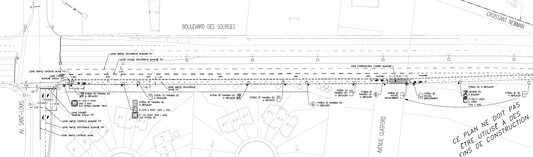 - Lundi 12 mai : entrave partielle sur le boulevard des Sources, au niveau de la voie de virage à gauche vers l’avenue Belmont (direction est). Les automobilistes pourront toutefois continuer à effectuer leur virage à gauche.