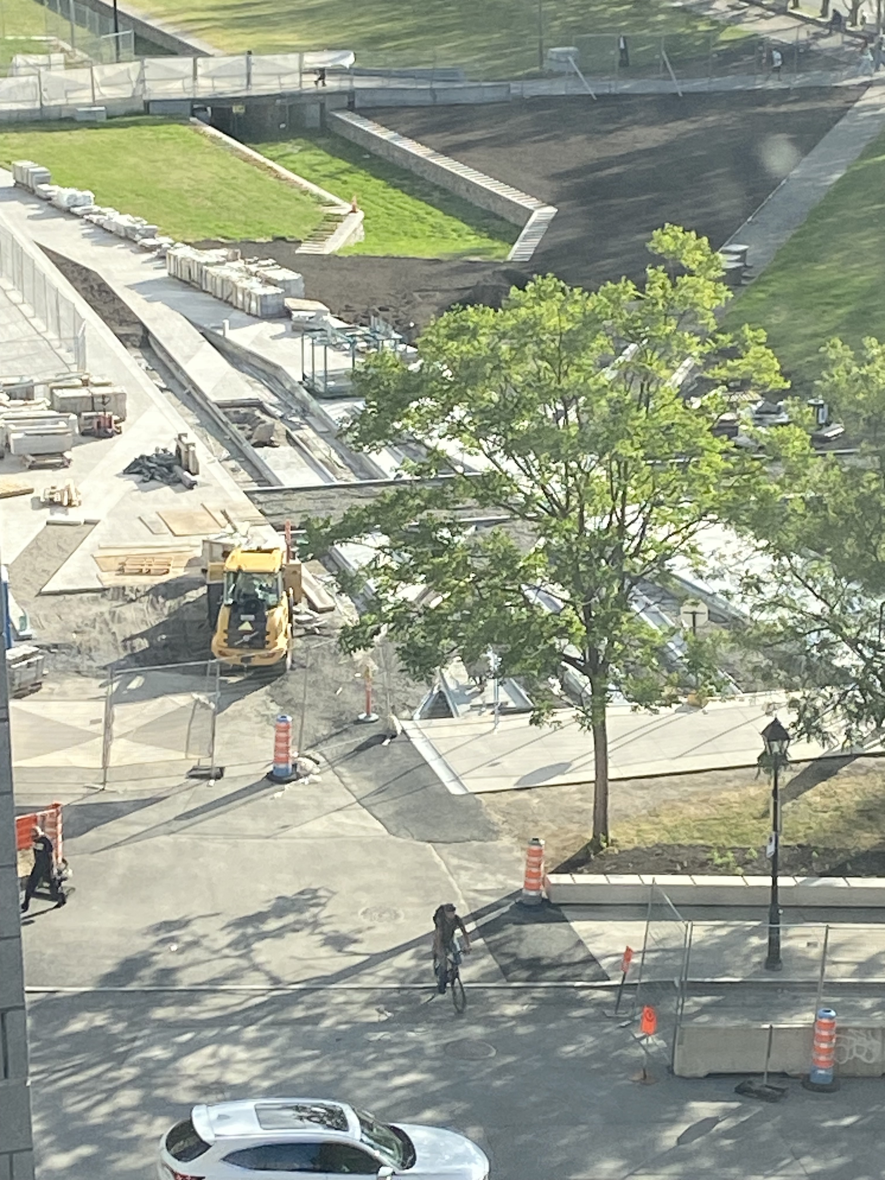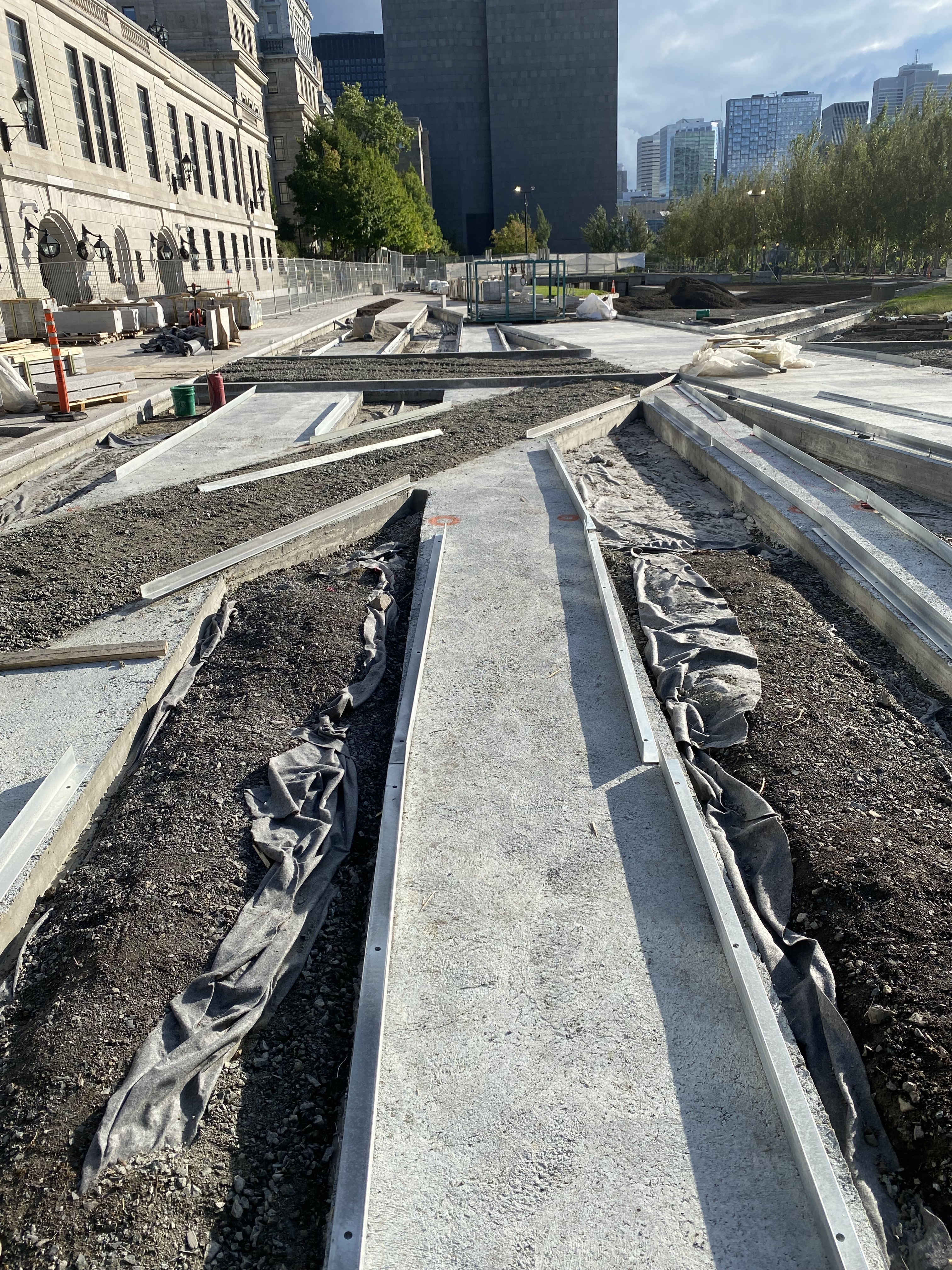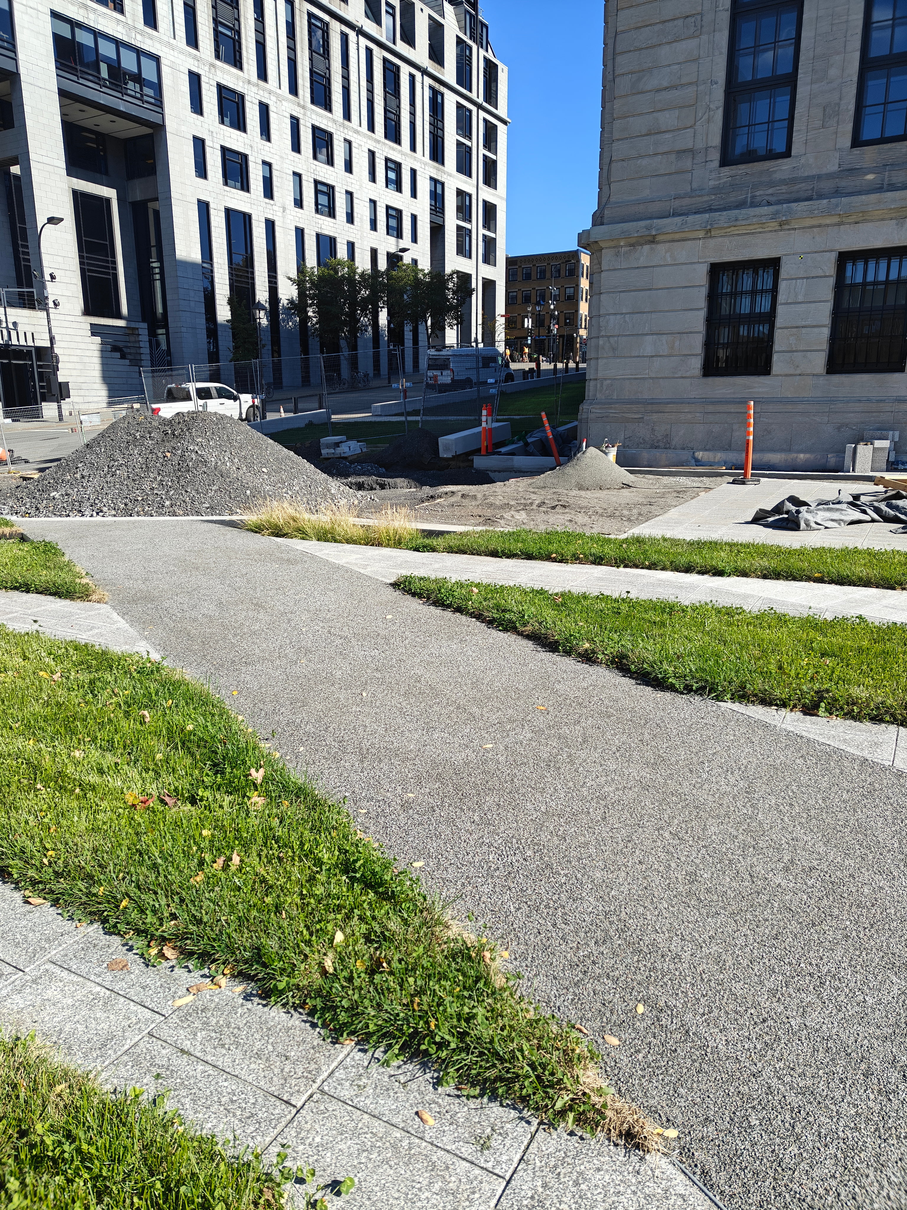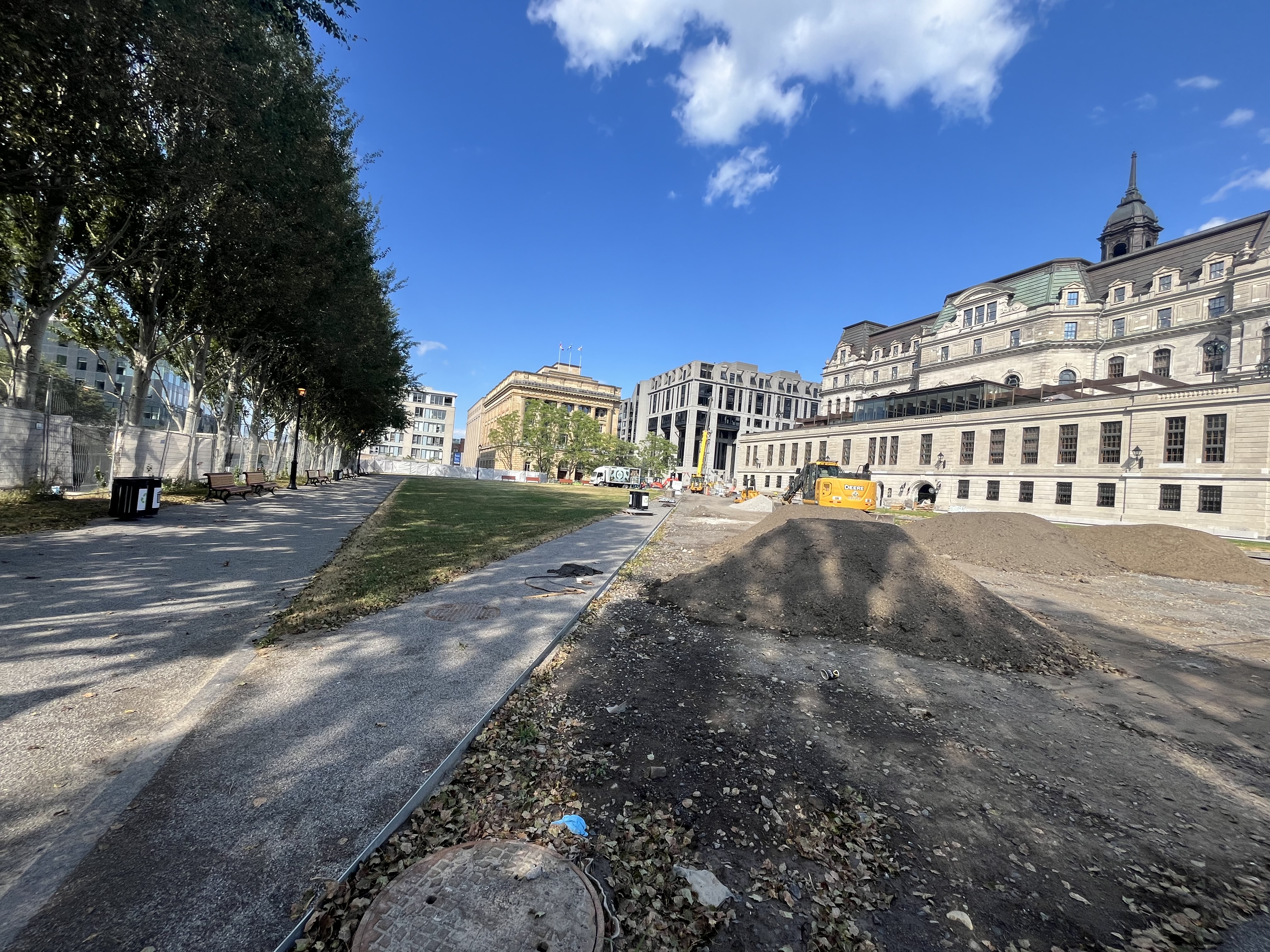 Merci pour ces précisions. Ce sont de grands travaux de surface dans un site à caractère patrimonial et archéologique. Donc des contraintes inhabituelles qui demandent une attention particulière. L’ensemble relié à la Place des Montréalaises sera tout simplement magnifique, pas seulement pour la beauté des aménagements paysagers. Mais aussi pour les nombreuses perspectives sur la ville qui offrent des coups d’oeil uniques sur le centre-ville, la montagne mais aussi vers la cité administrative.