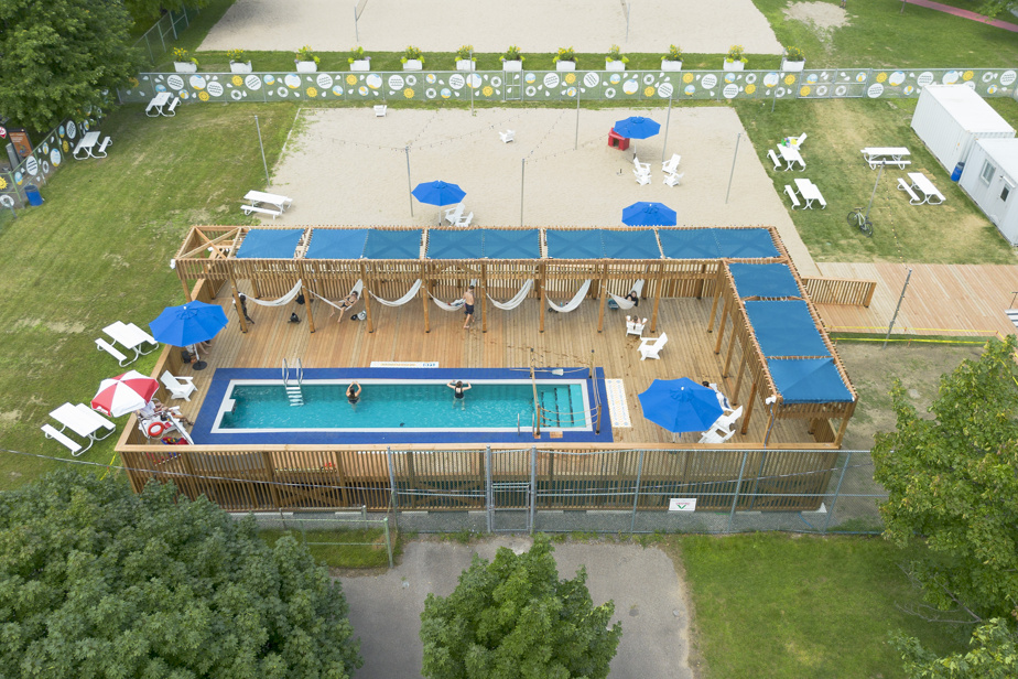 Installée depuis le début du mois de juillet au milieu du parc Jos-Montferrand, dans le Centre-Sud, la Piscinette est accessible gratuitement tous les jours de la semaine, de midi à 19 h. Derrière l’installation de bois qui entoure la piscine d’eau salée, un grand espace couvert de sable et ponctué de parasols s’offre aux usagers qui veulent étirer leur visite.