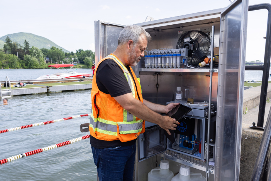 Dany Dolan, directeur des travaux publics de la Ville de Belœil, vérifie la qualité de l’eau analysée par la machine ColiMinder.