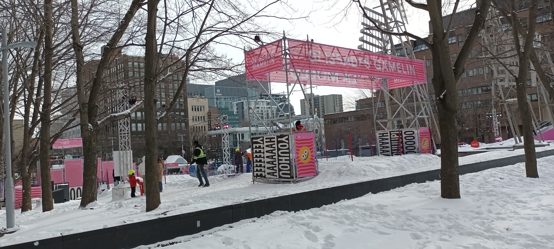 Il était 18:00 lors de mon passage. Pour être honnête, c’est plus les Glissades Gamelin qui m’inquiètent puisque c’est toujours vide lorsque je passe à côté. (J’ai souvenir des foules aux spectacles l’an passé.)