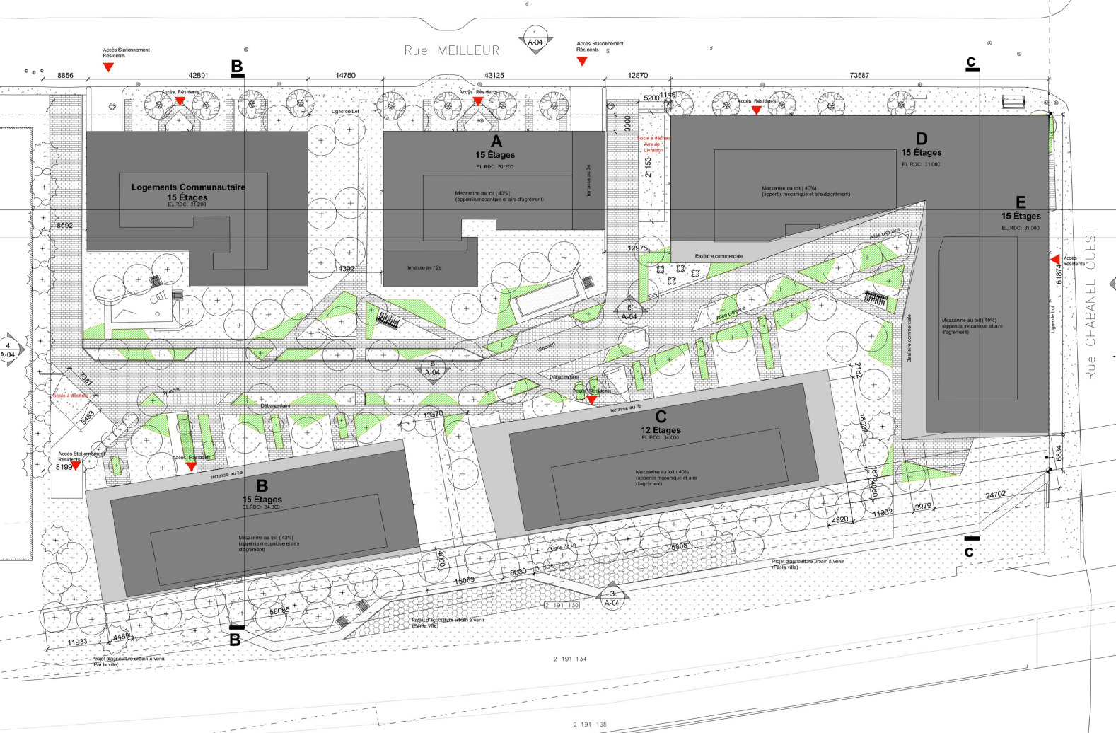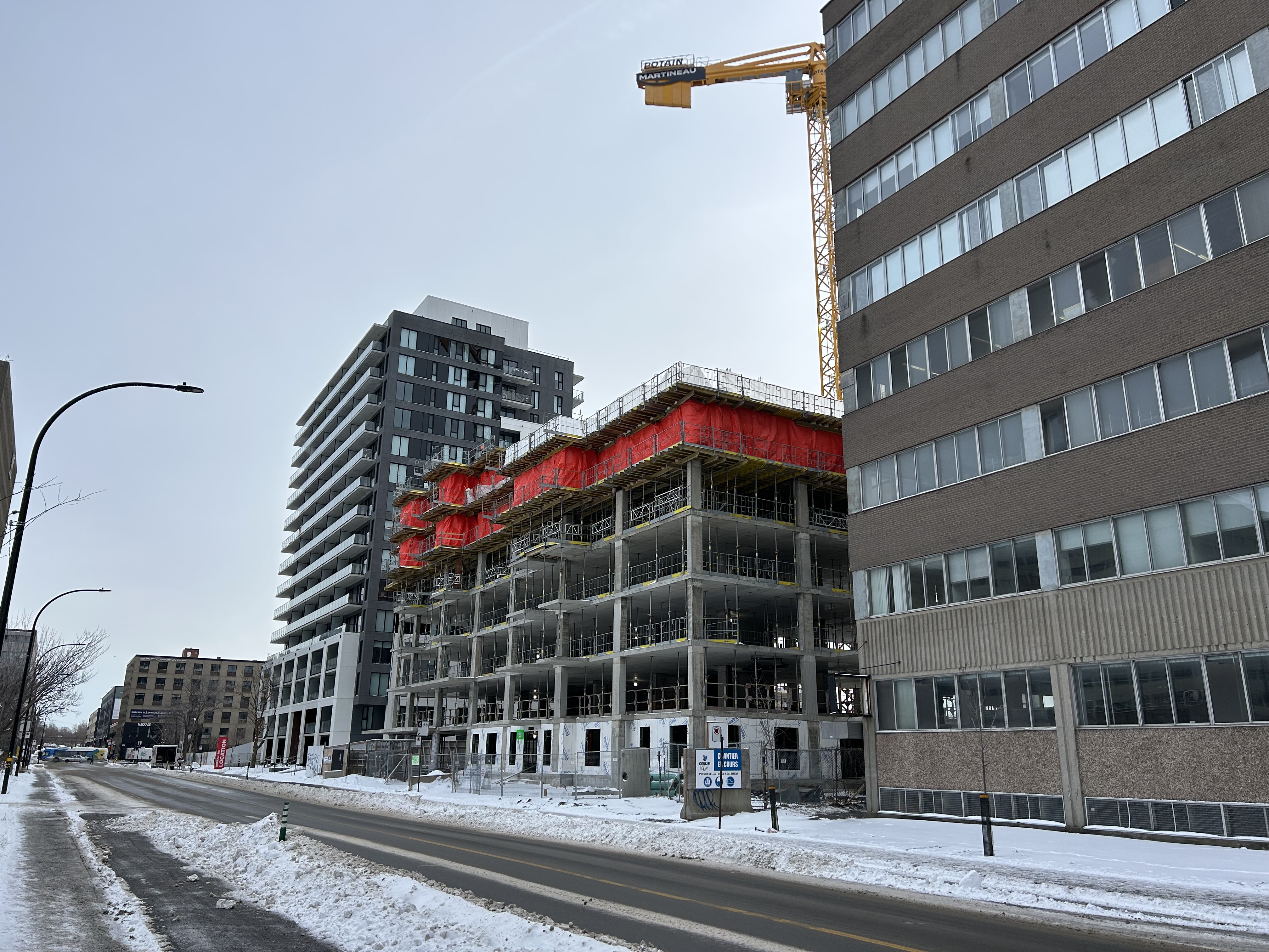 Agrandir le bâtiment de la phase A pour construire un bâtiment isolé de 15 étages + 2 niveaux de SS, 235 logements, phase B du projet Anima.